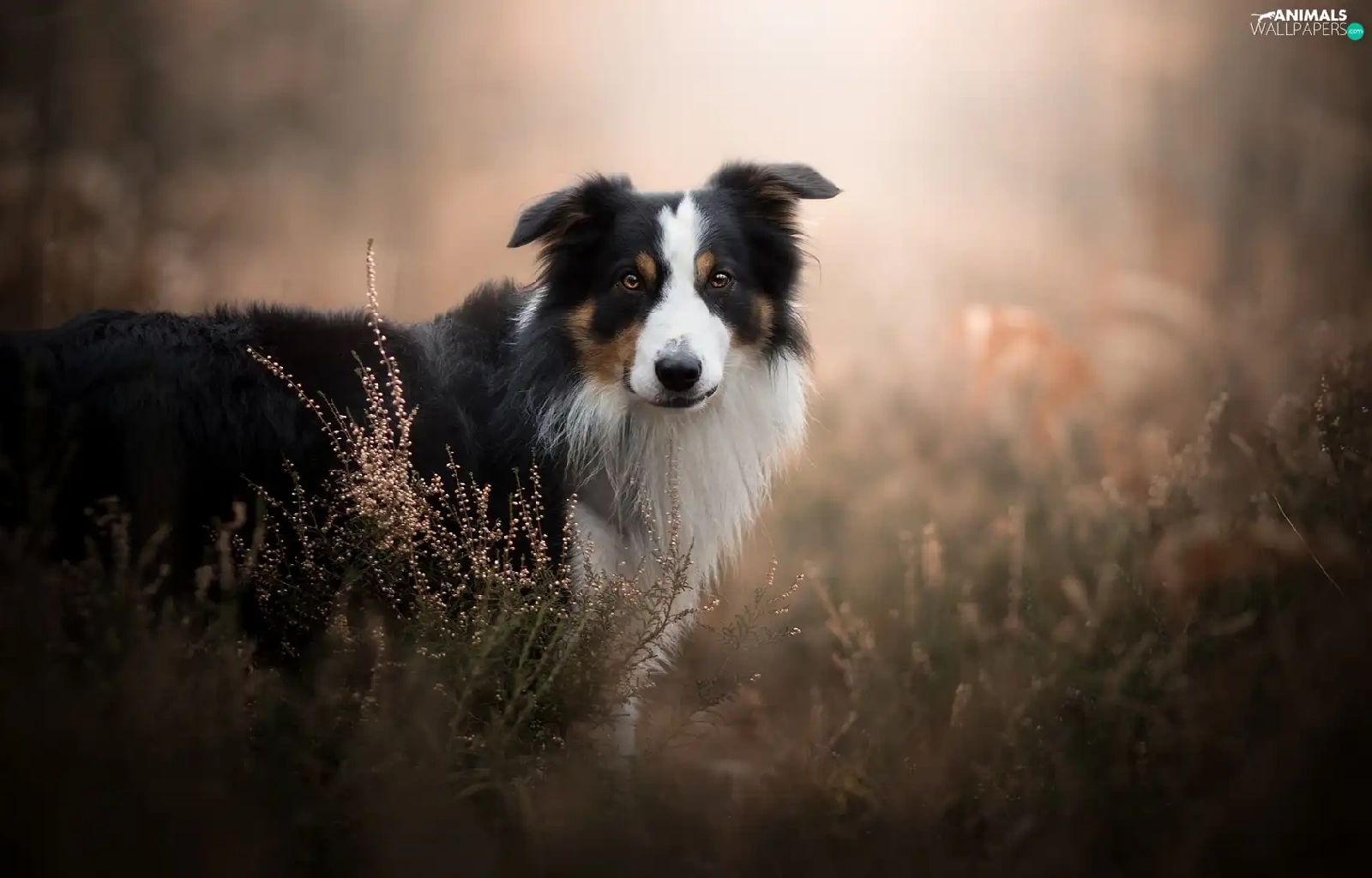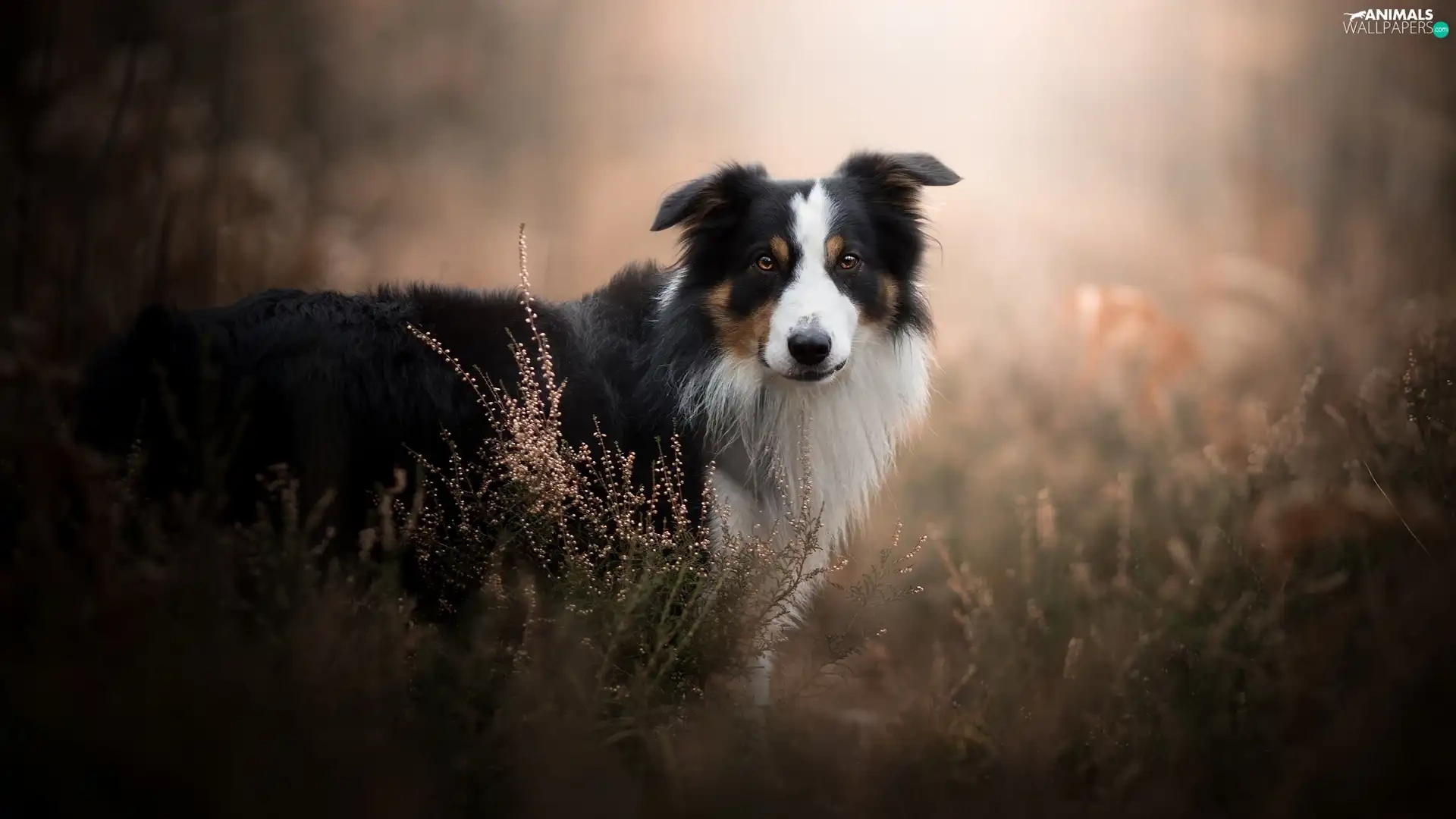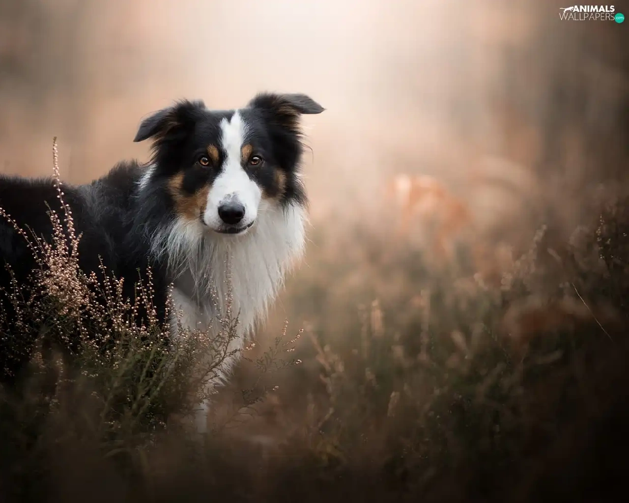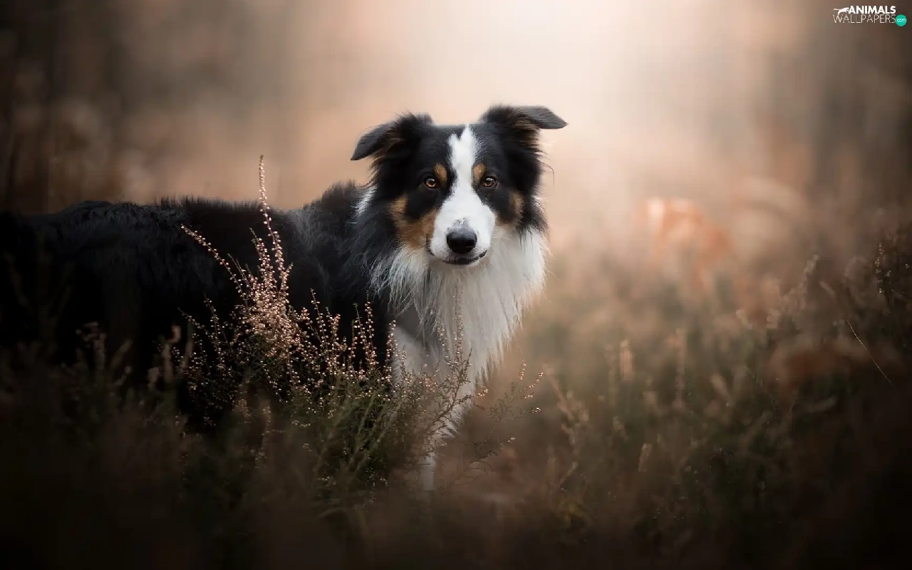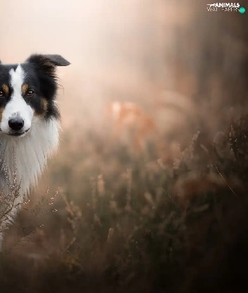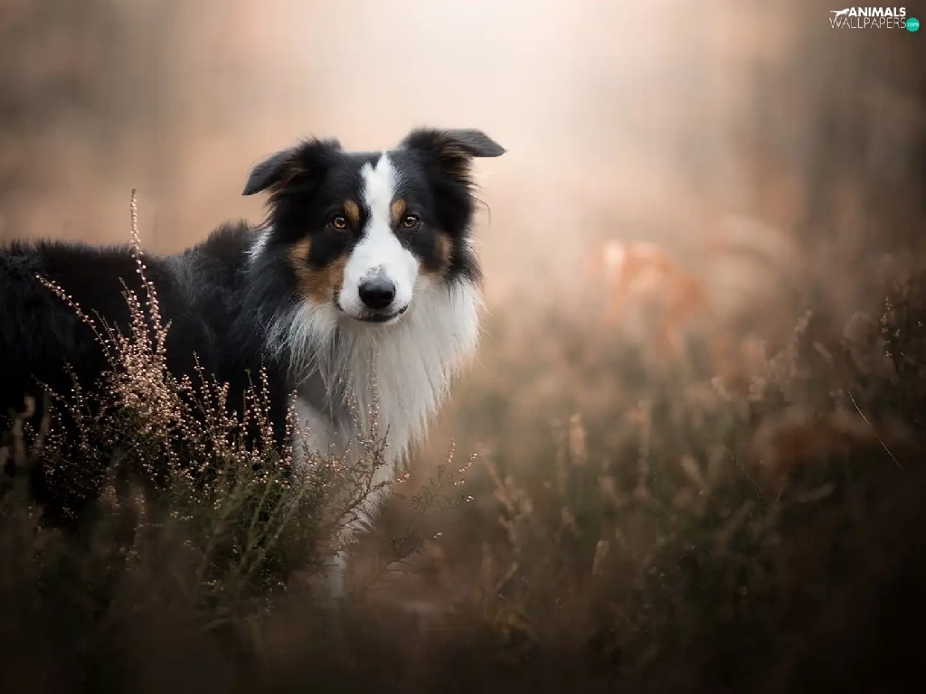 fuzzy, background, Border Collie, heathers, dog