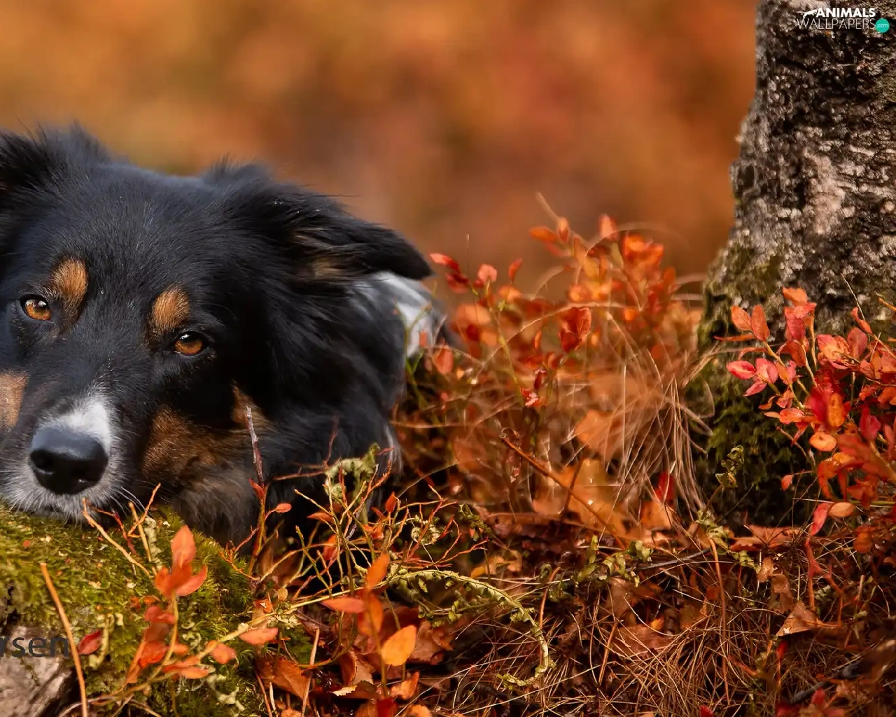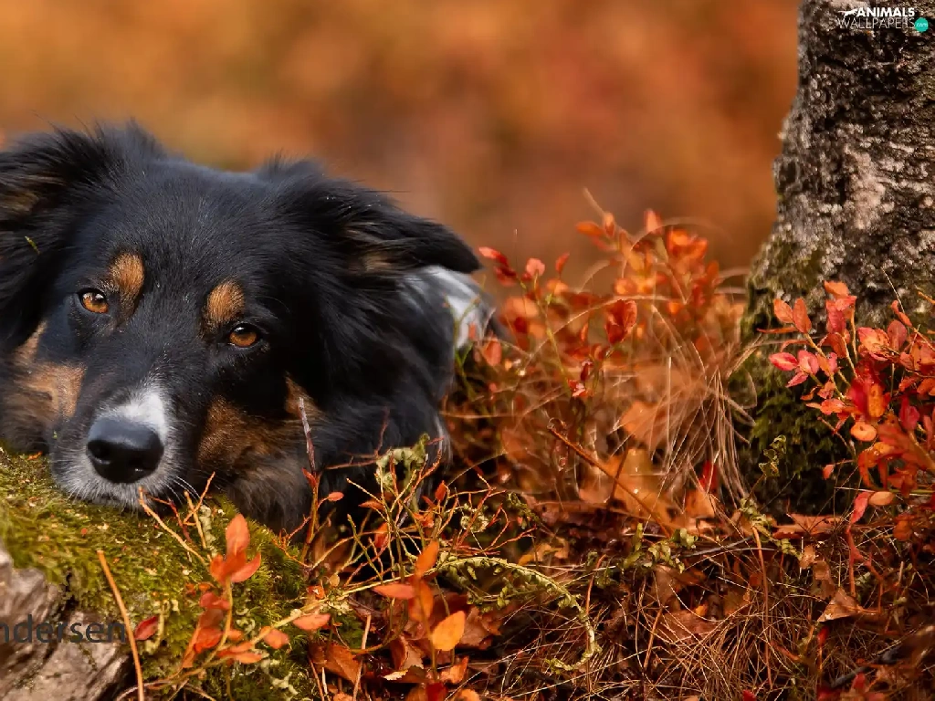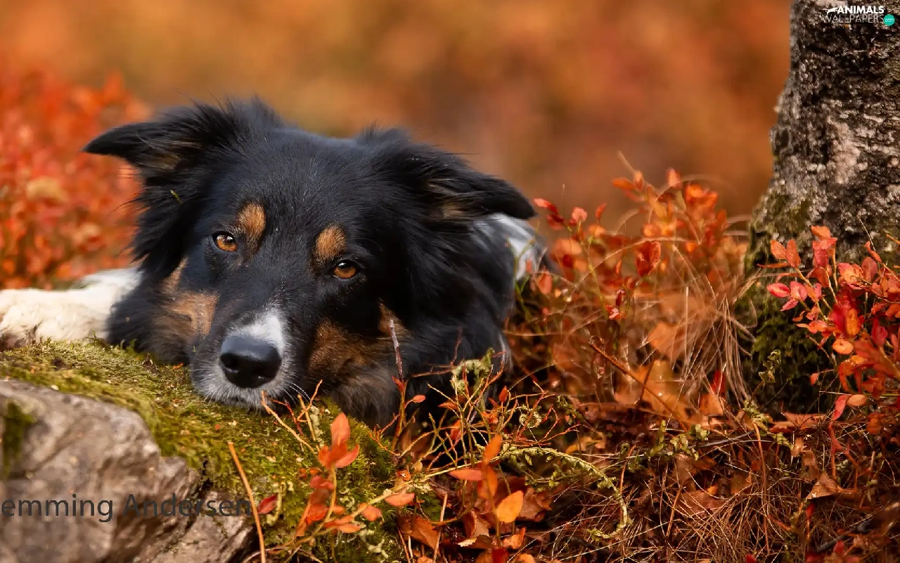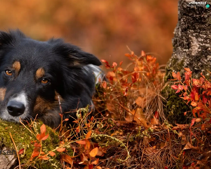 Stone, Plants, Border Collie, muzzle, dog