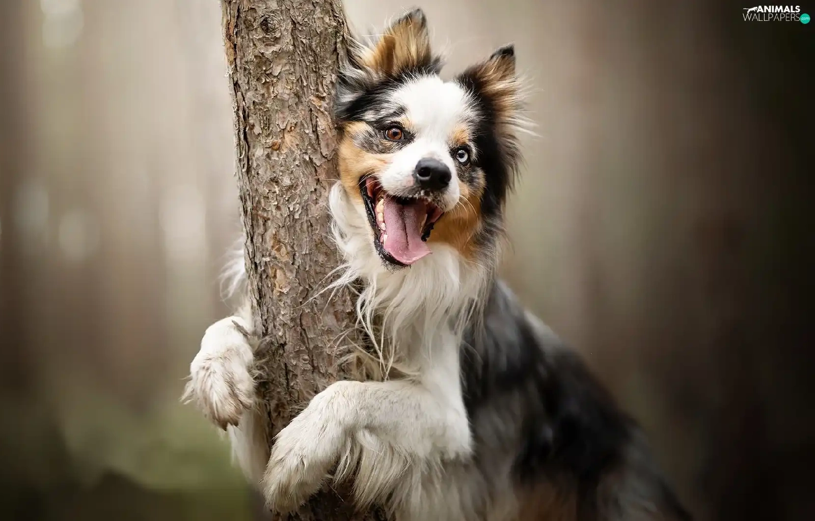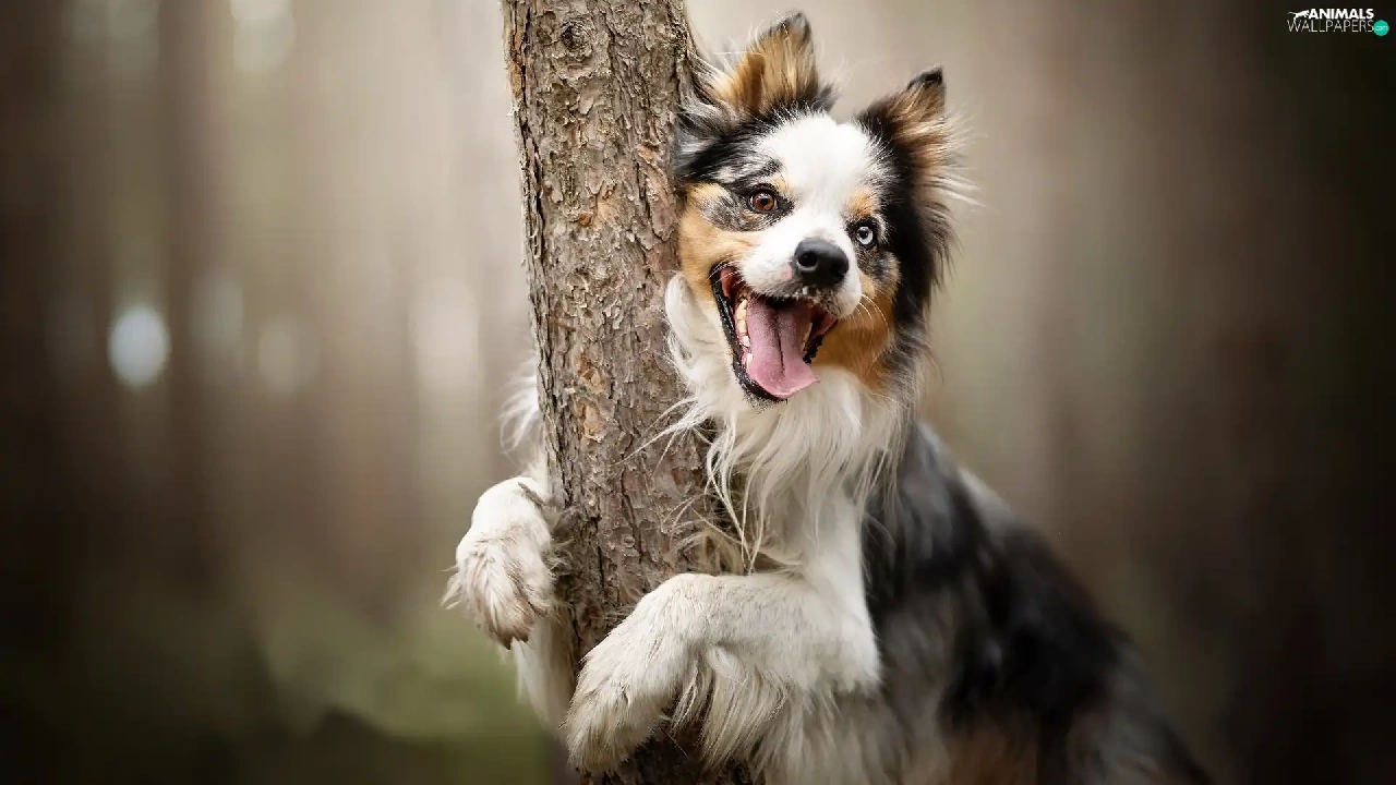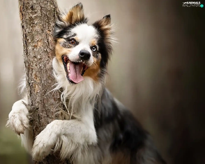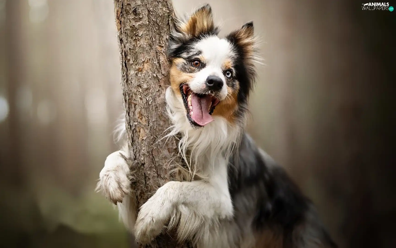 tongue, trees, Border Collie, muzzle, dog