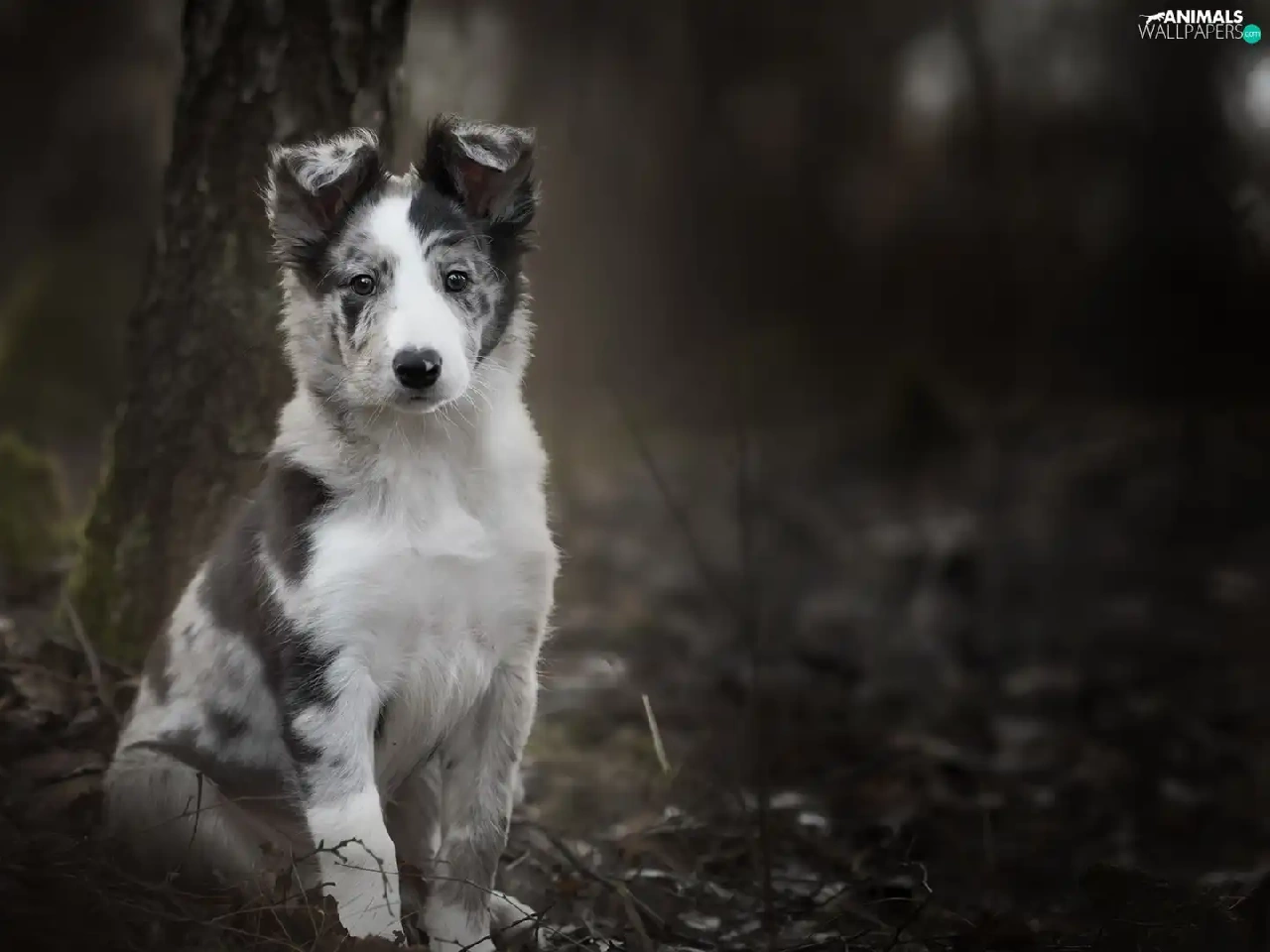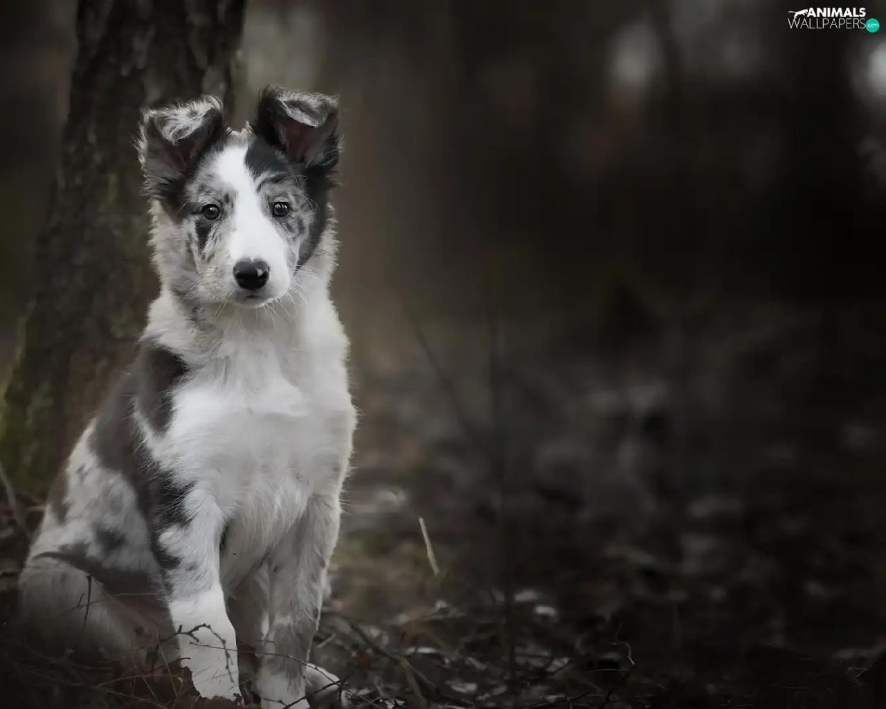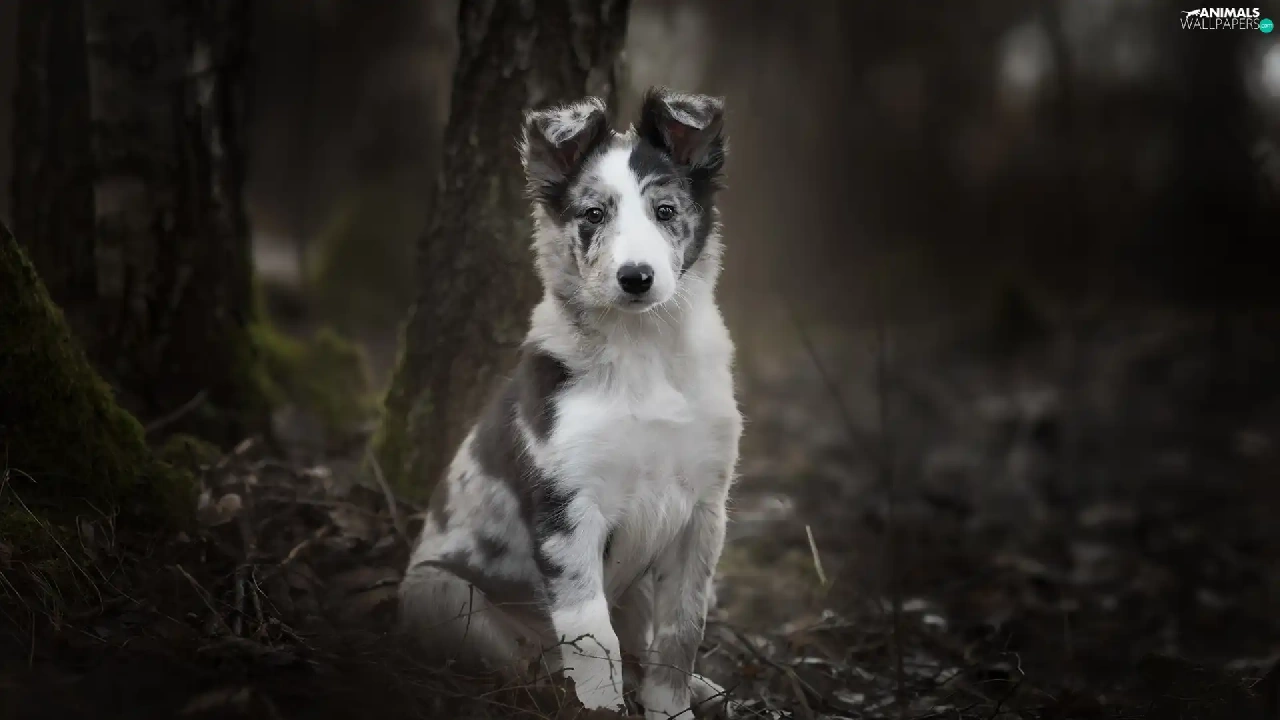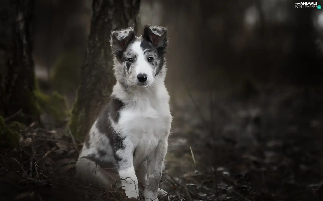 trees, viewes, Border Collie, Puppy, dog