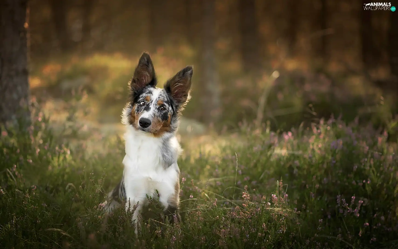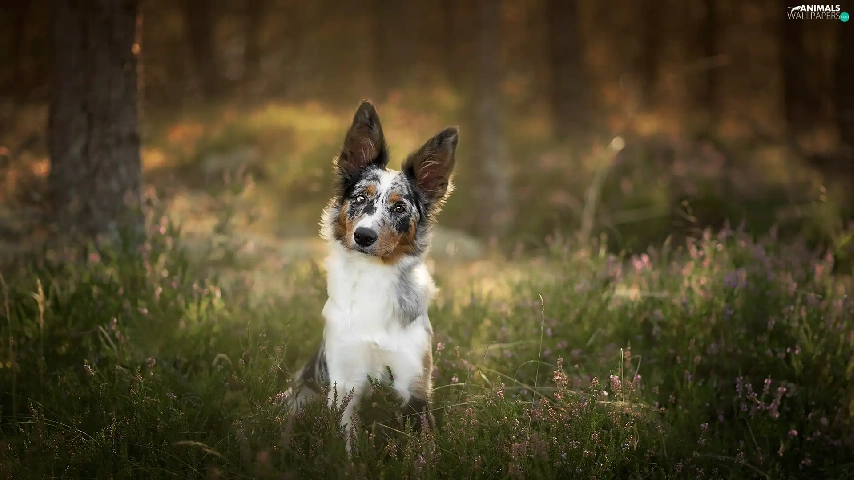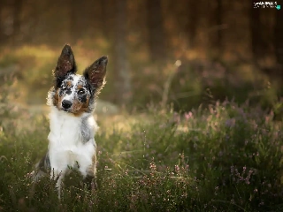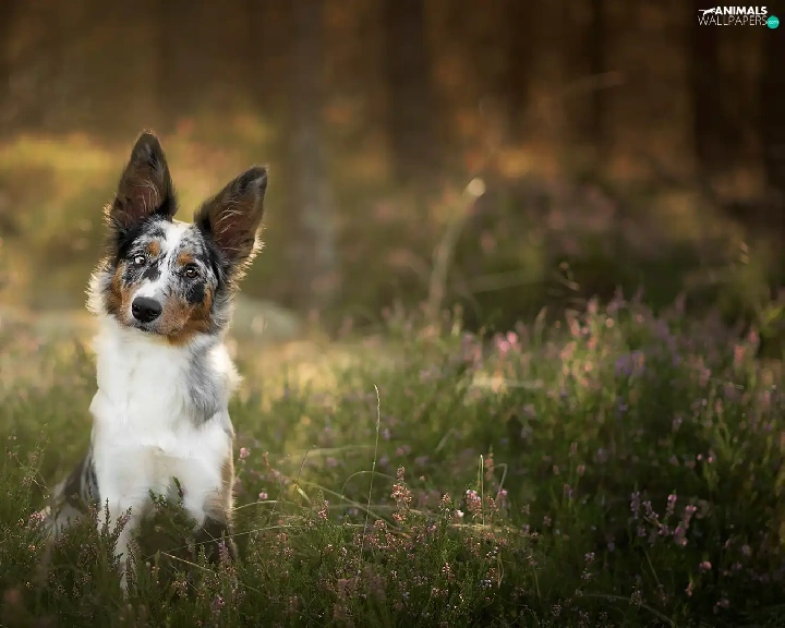 viewes, heather, Border Collie, trees, dog