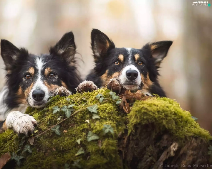 Border Collie, Dogs, Two cars
