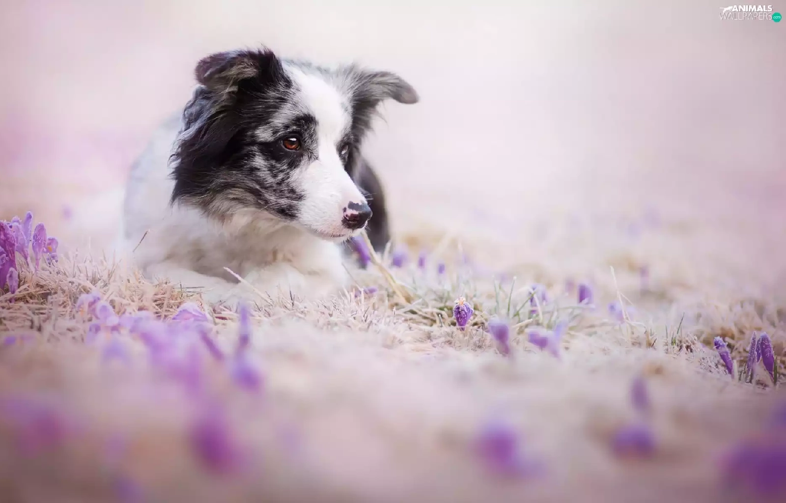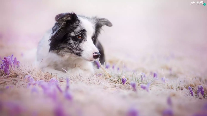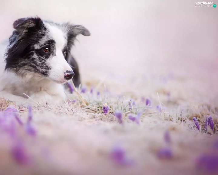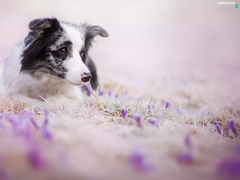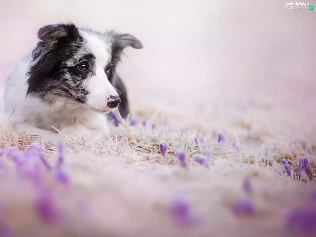 Flowers, dog, Border Collie