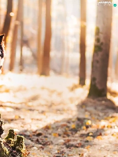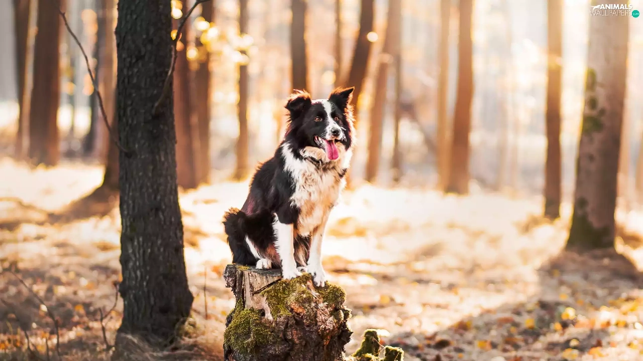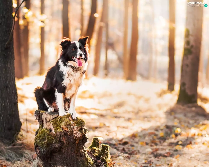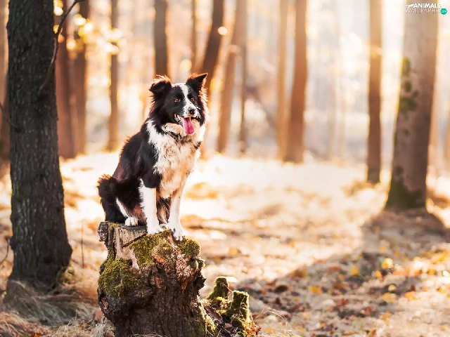 forest, trunk, Border Collie