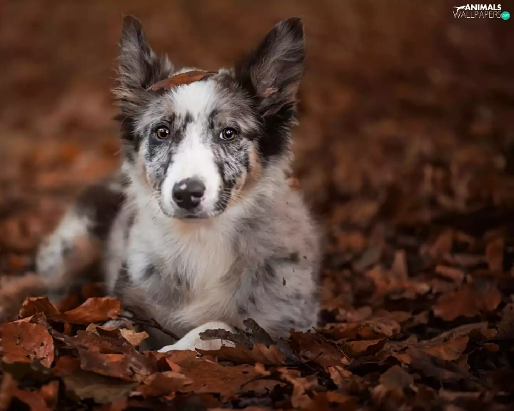 Leaf, lying, Border Collie