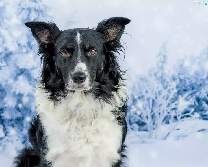 Border Collie, viewes, winter, trees
