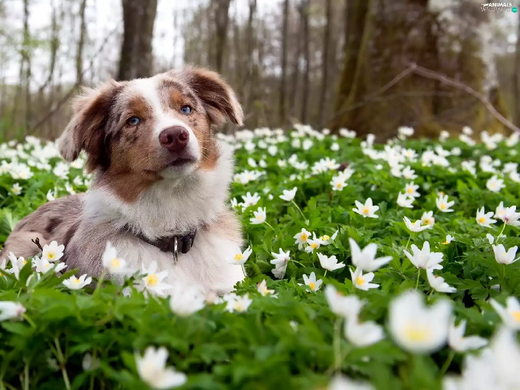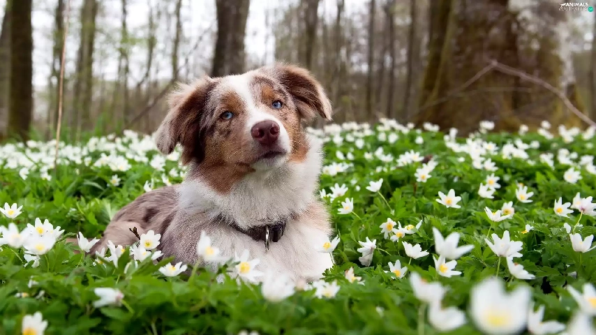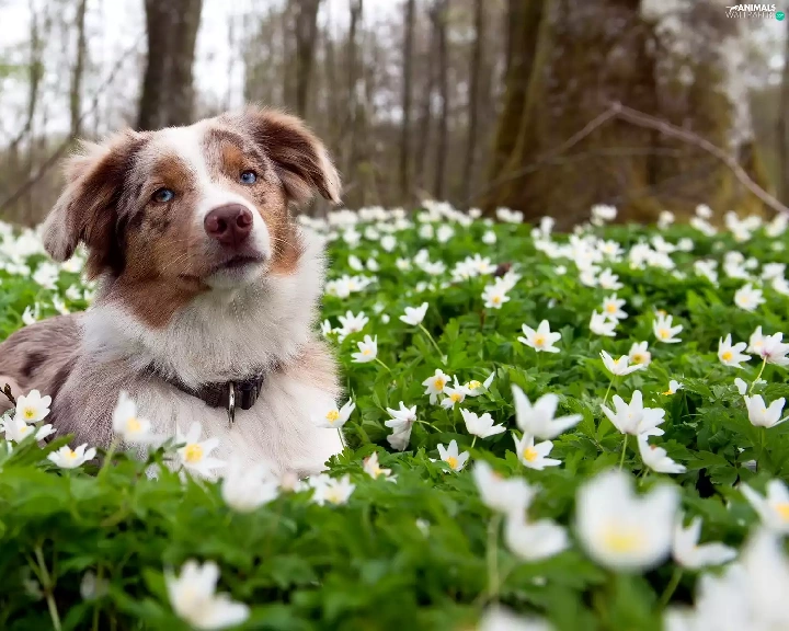 Border Collie, White, Flowers, Meadow