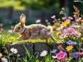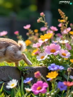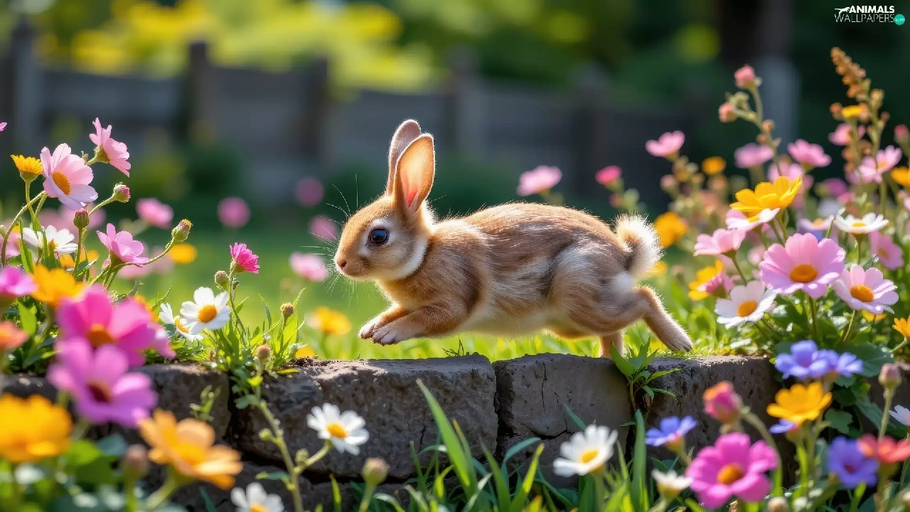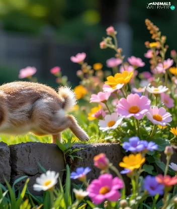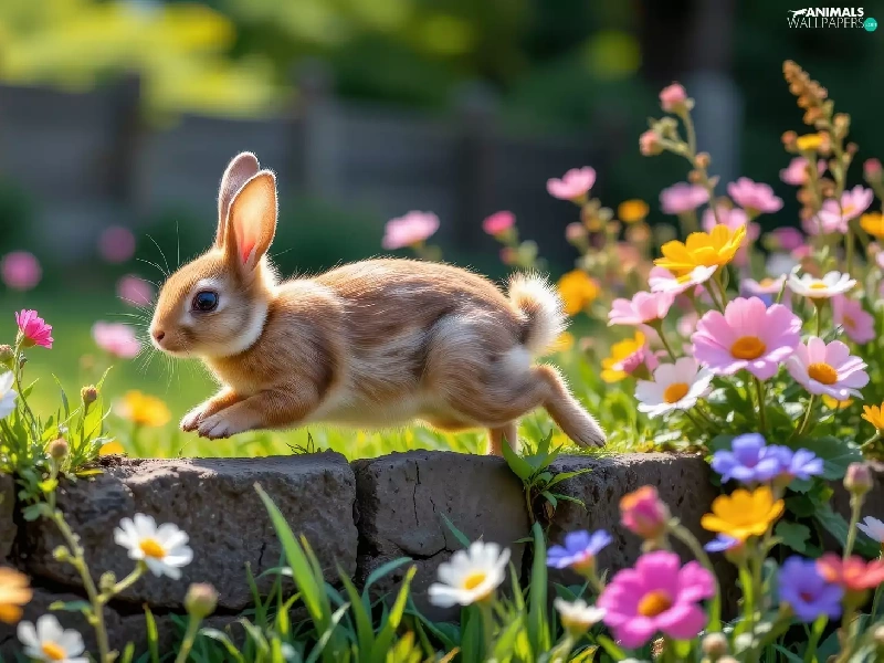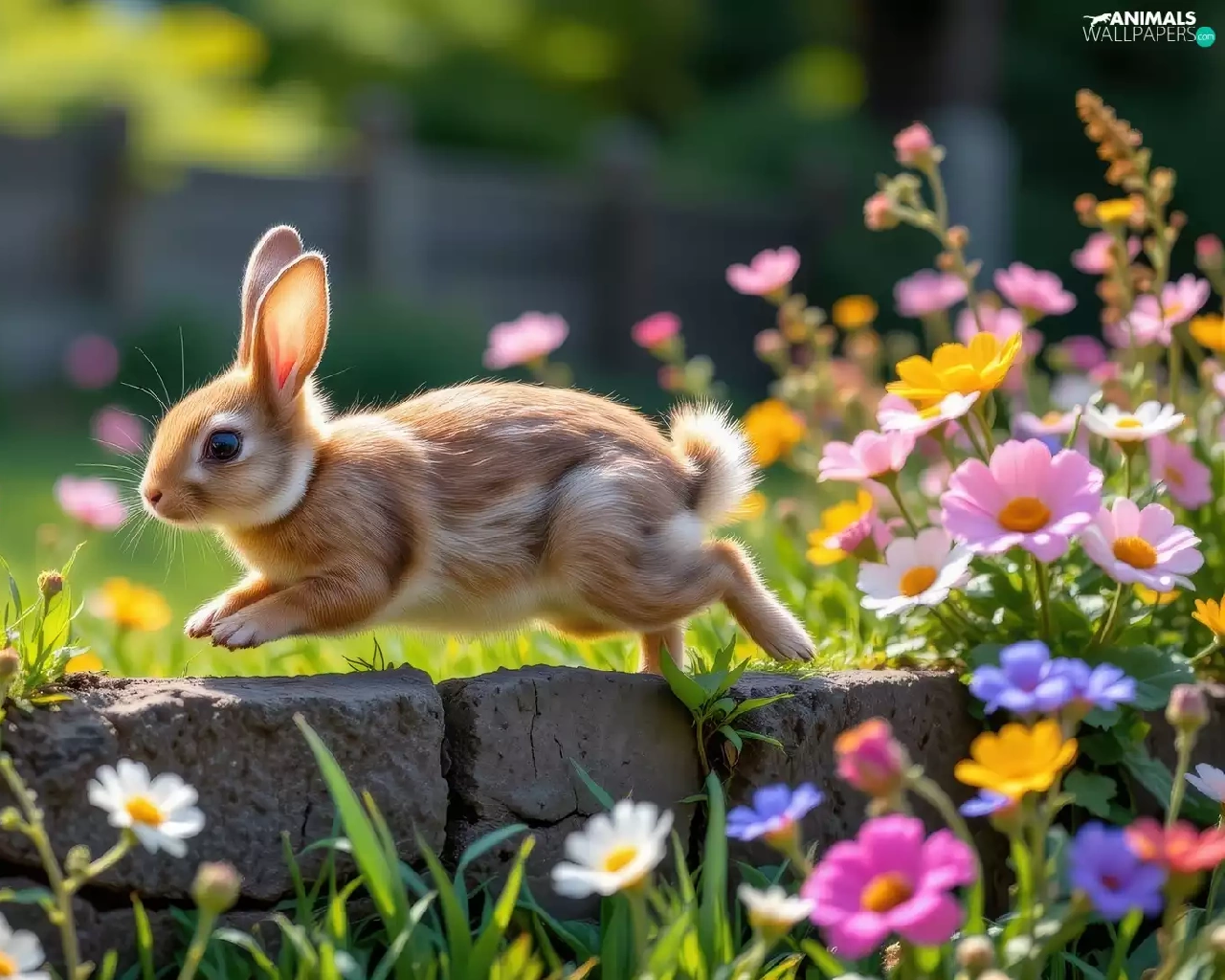 Rabbit, Flowers, ledge, color