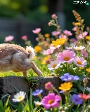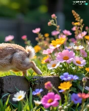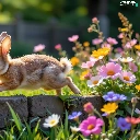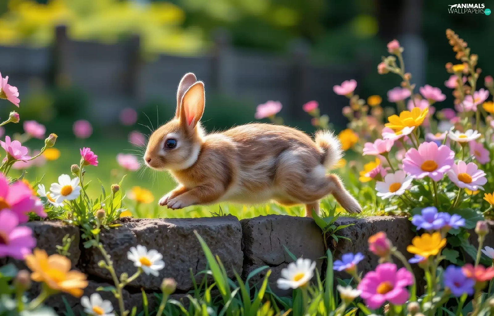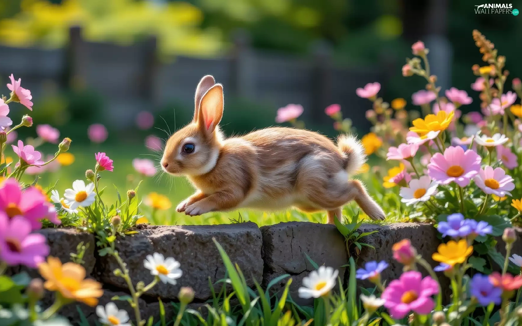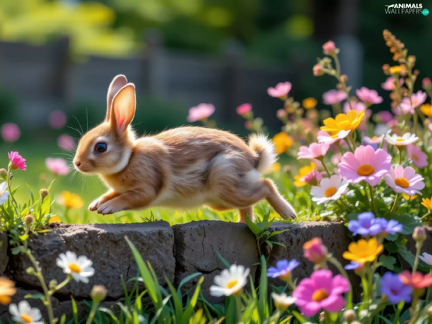 Rabbit, Flowers, ledge, color