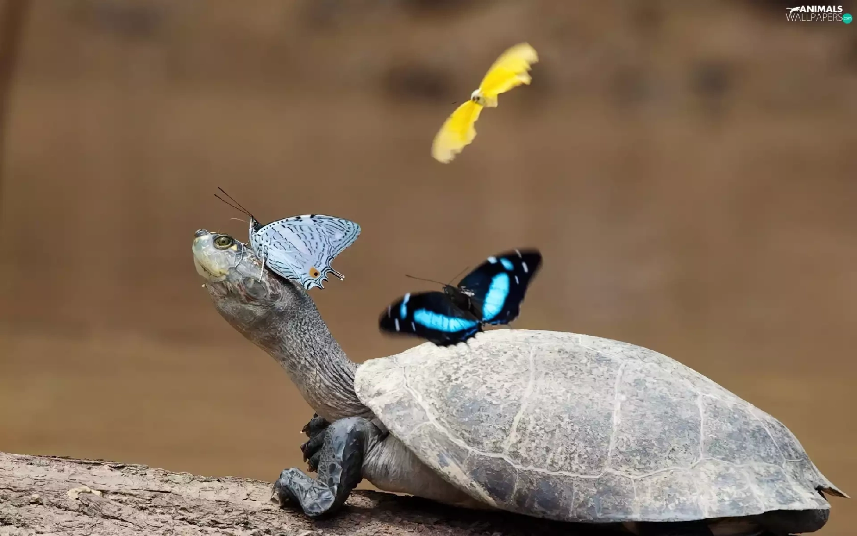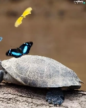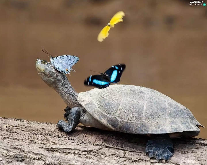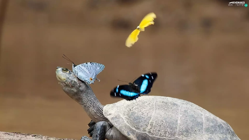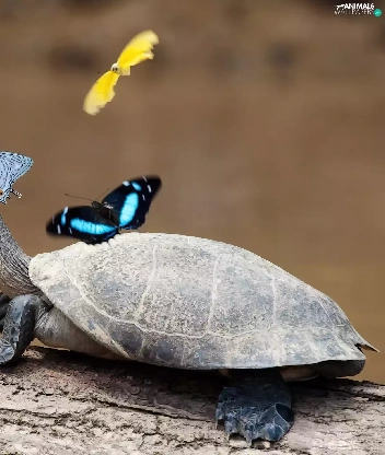 turtle, butterflies, crust, color