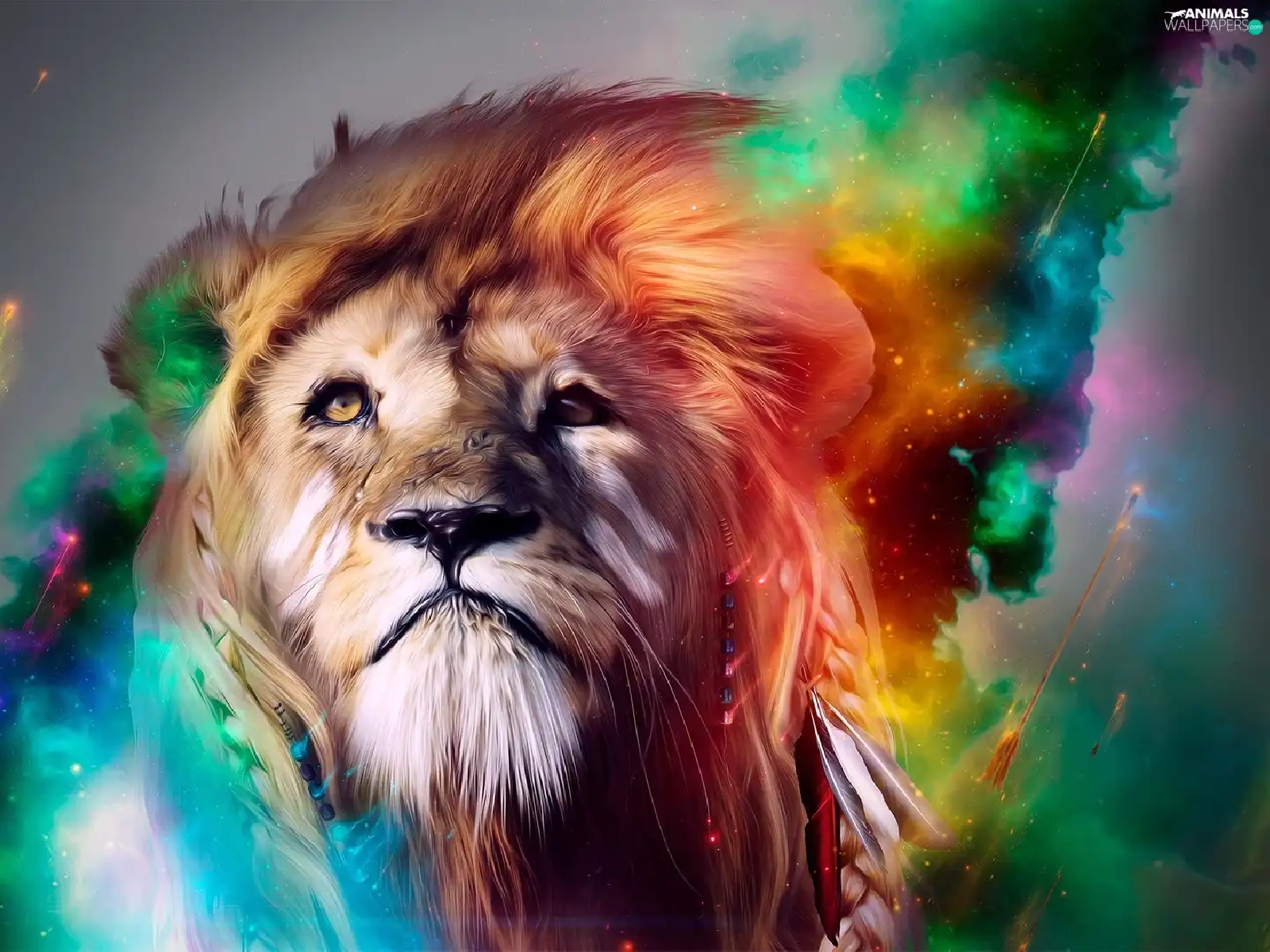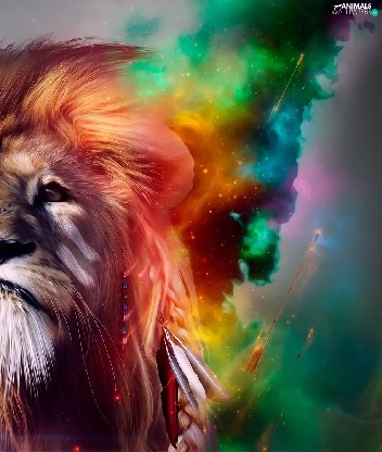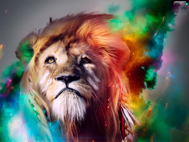 Lion, mane, colors, dispelled