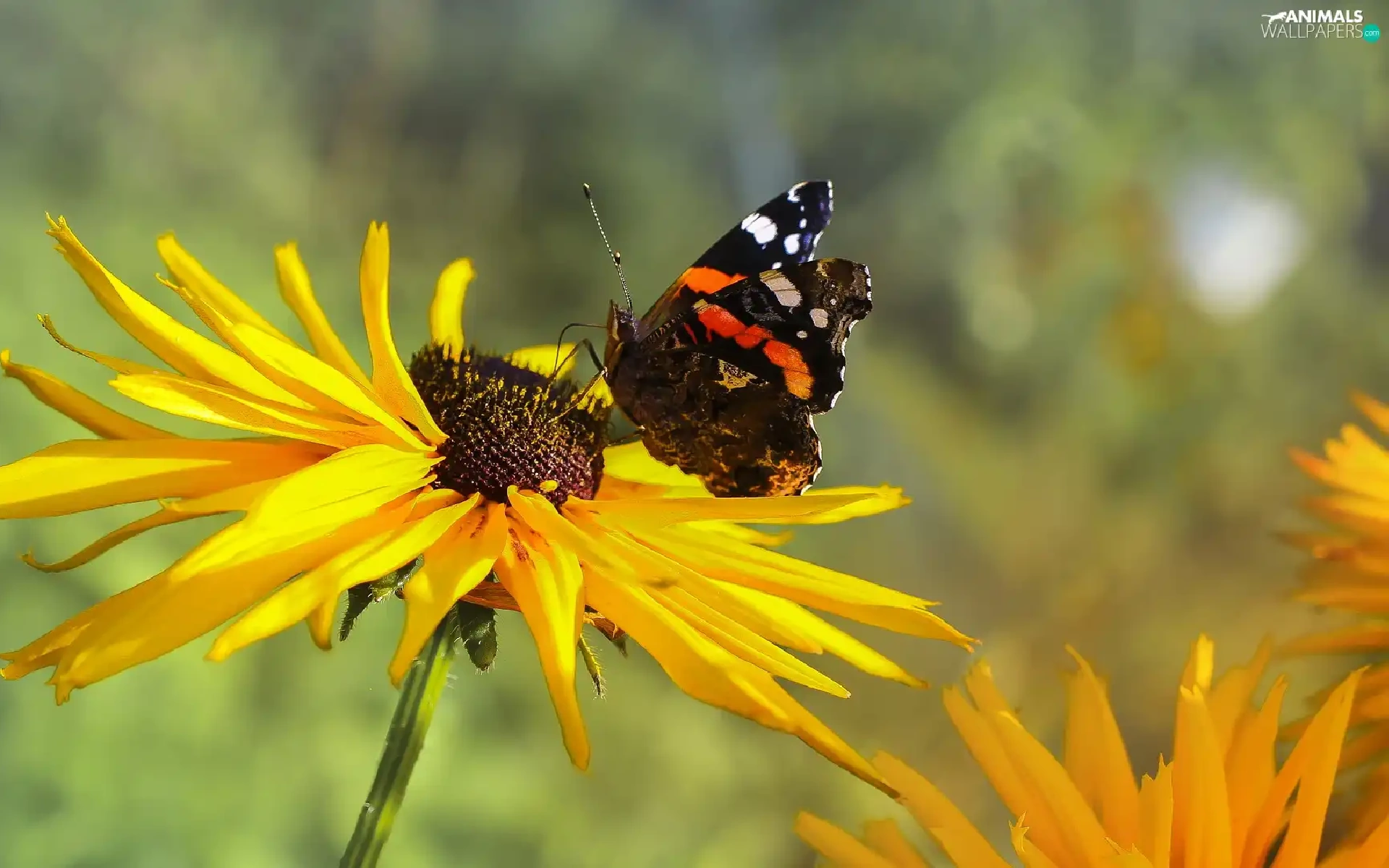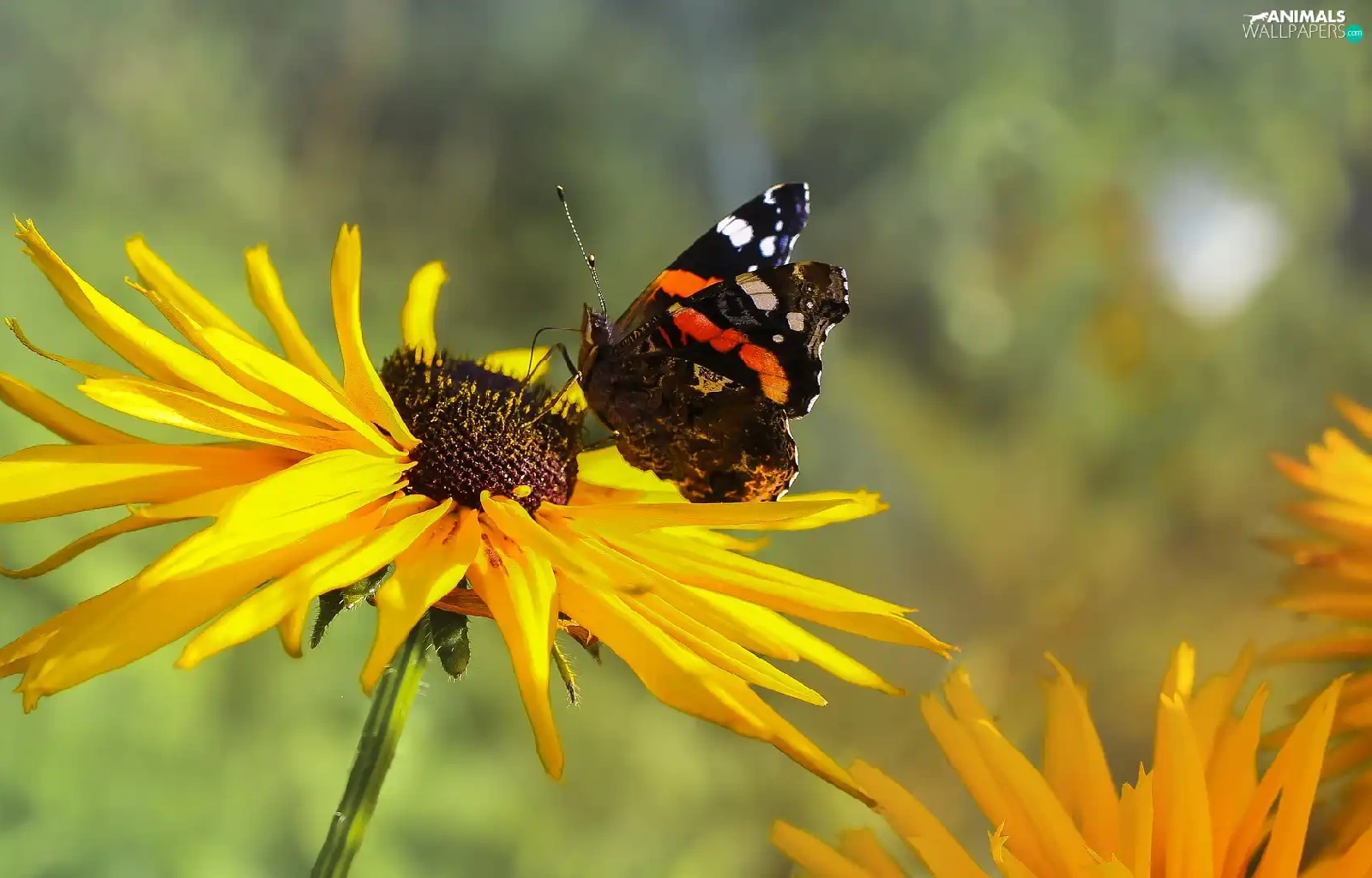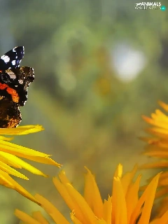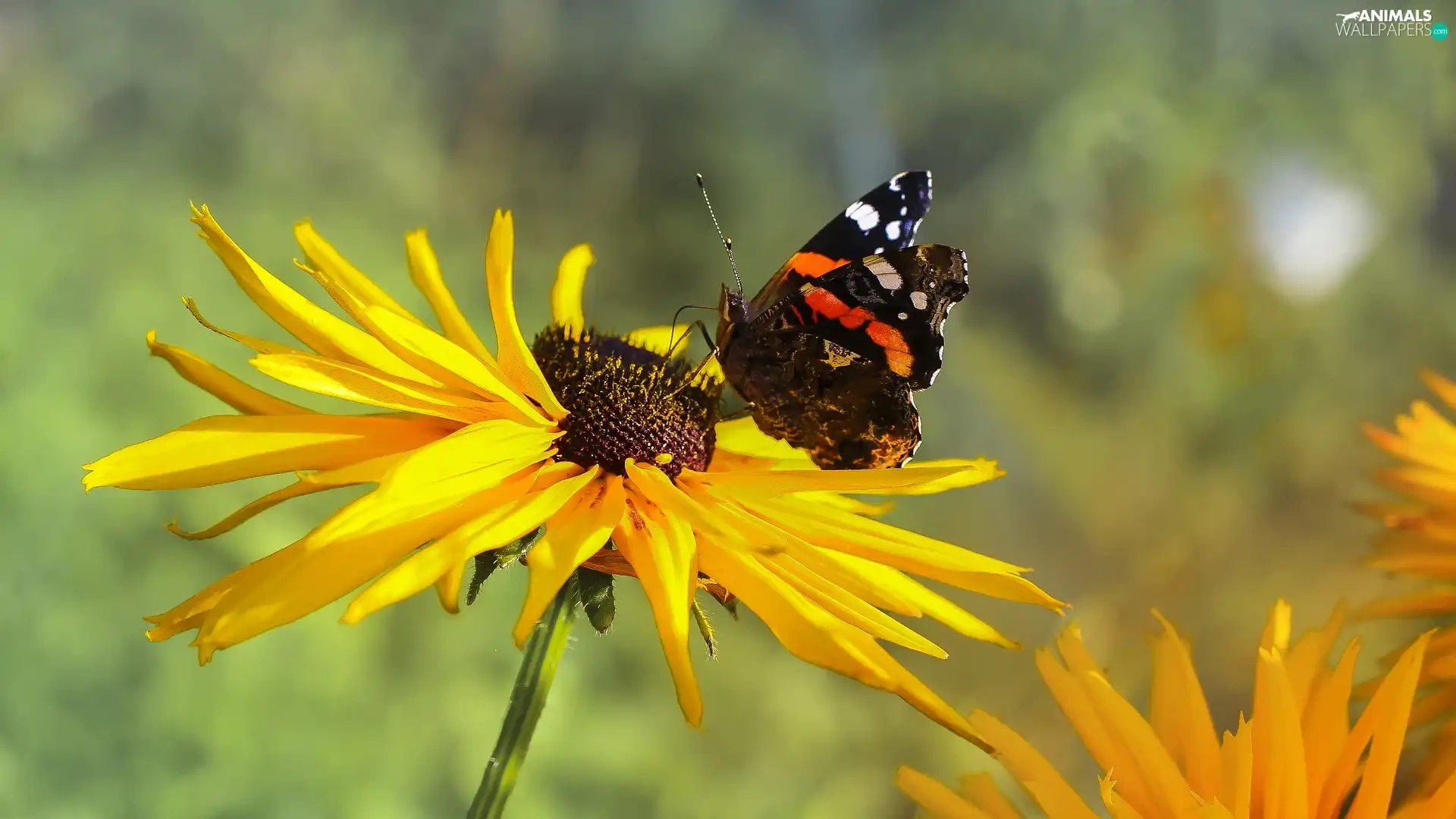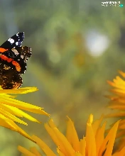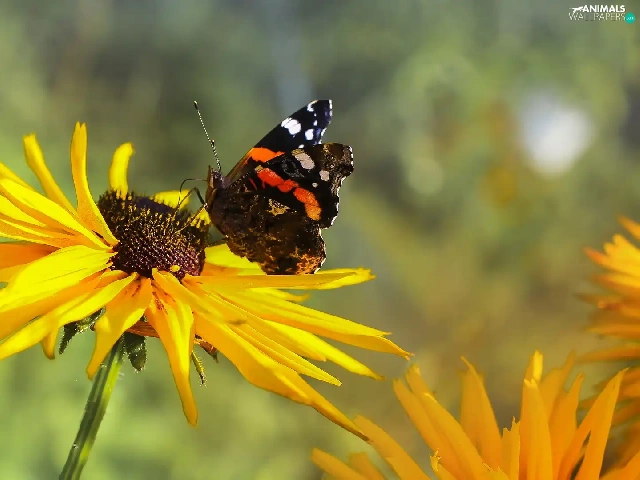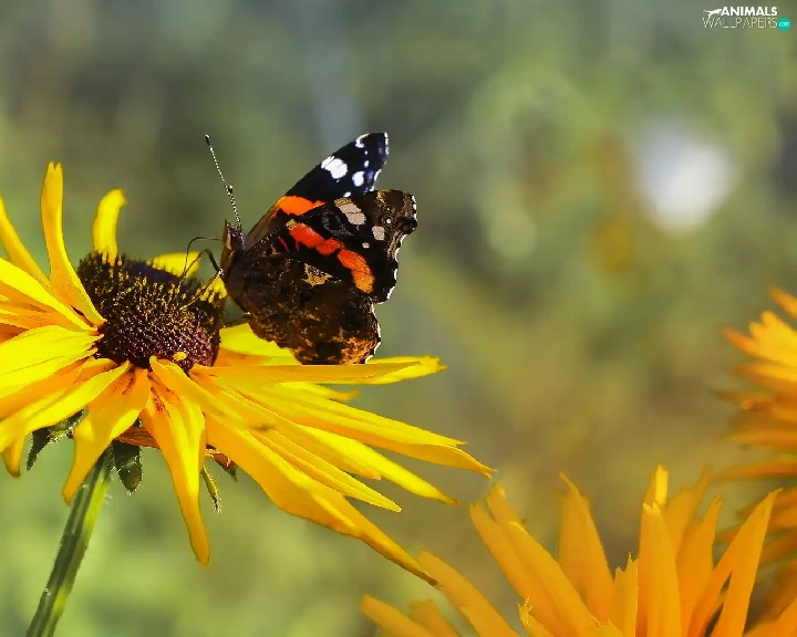 butterfly, Mermaid Admiral, Colourfull Flowers, Rudbeckia, Yellow