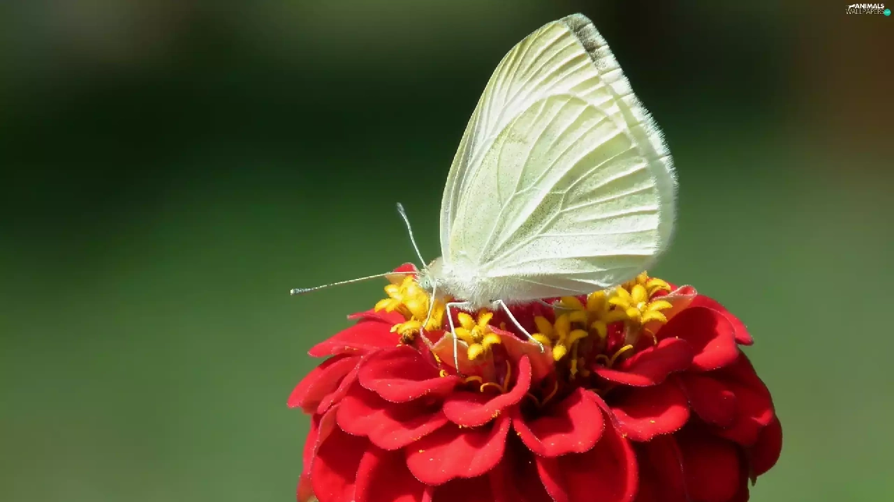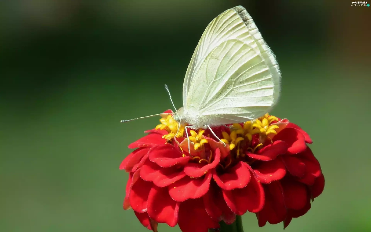 zinnia, Red, Cabbage, Colourfull Flowers, butterfly