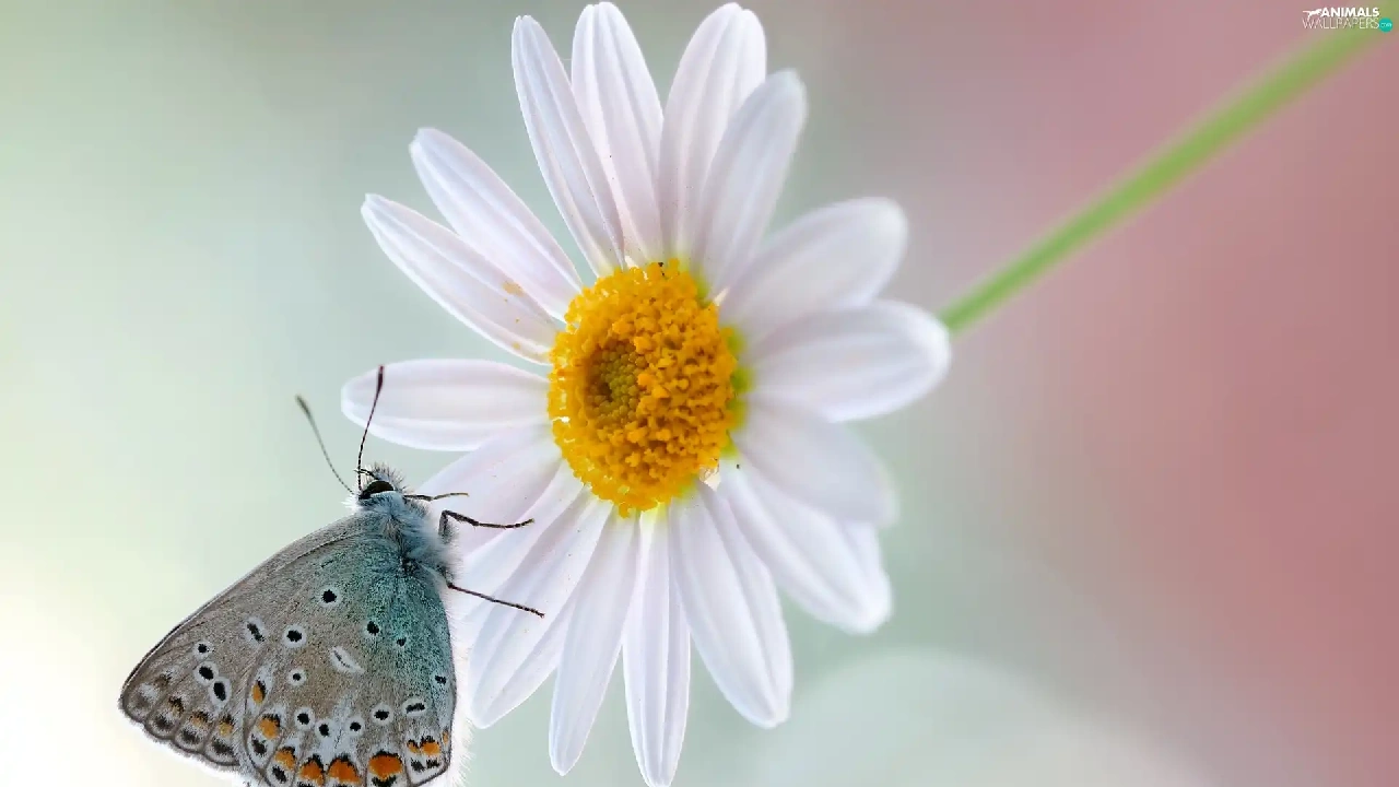 Daisy, Close, Dusky, Colourfull Flowers, butterfly