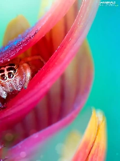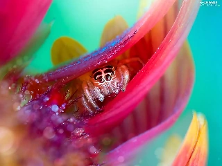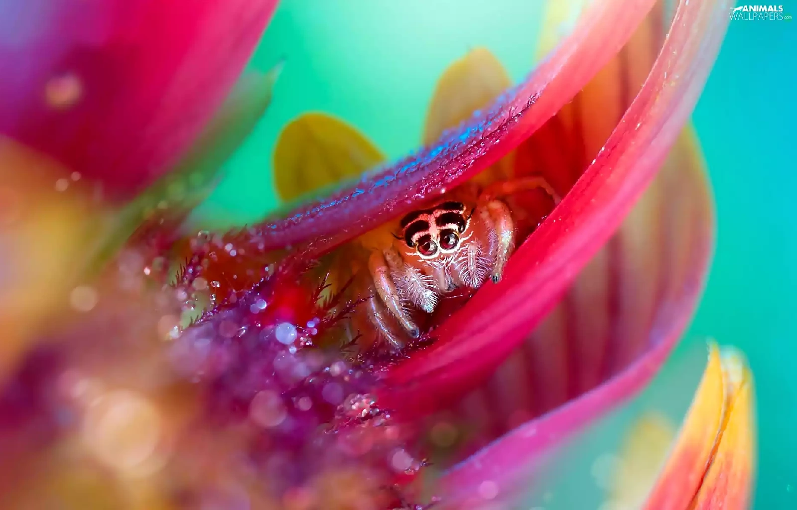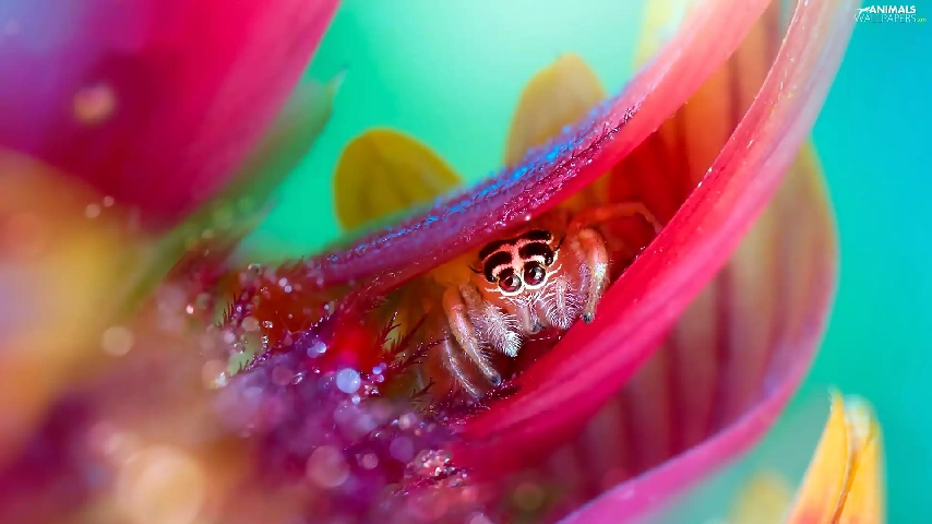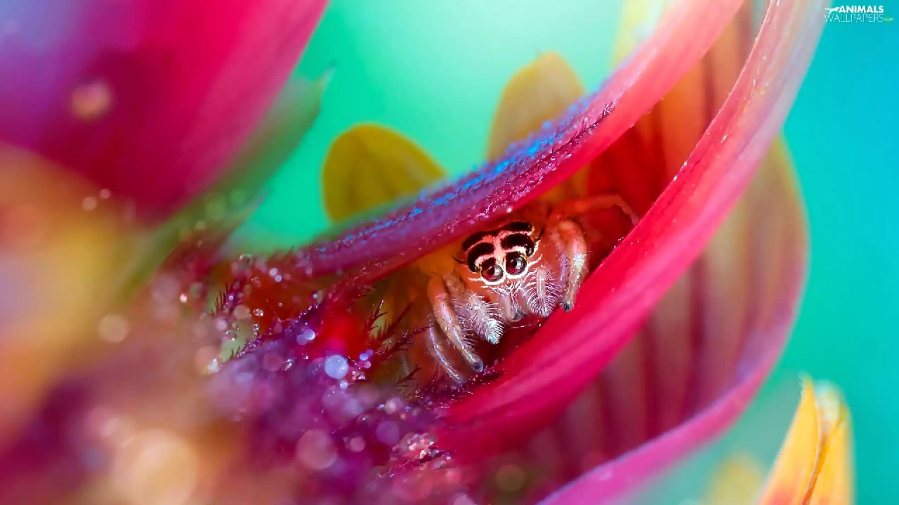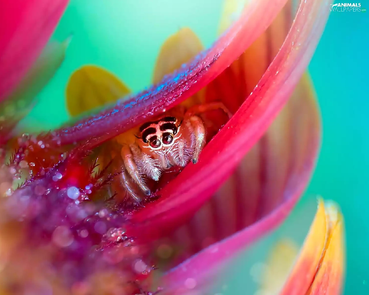 Zebra Jumper, Close, Colourfull Flowers, Spider, Pink