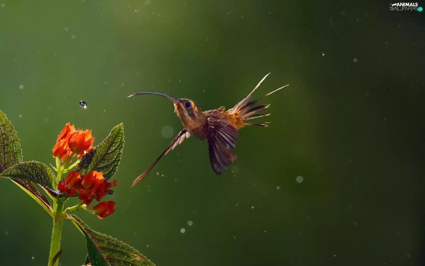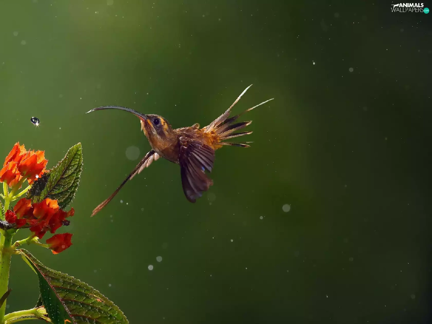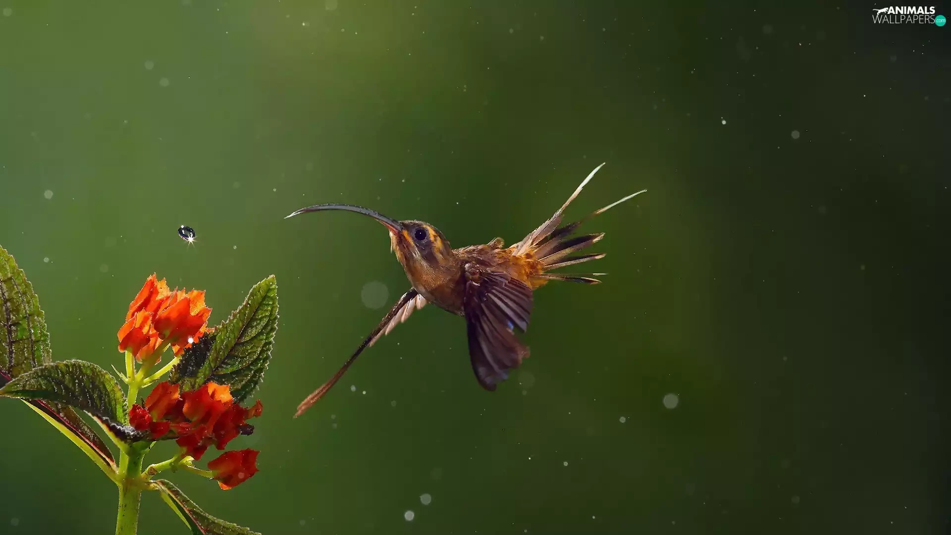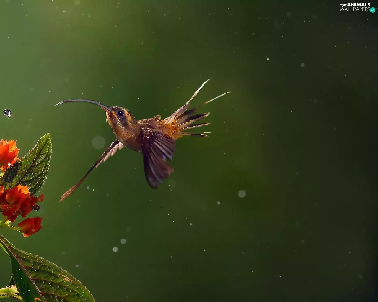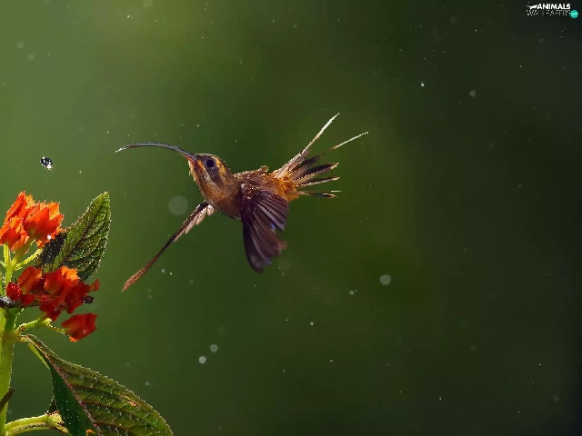 humming-bird, water, Colourfull Flowers, drop