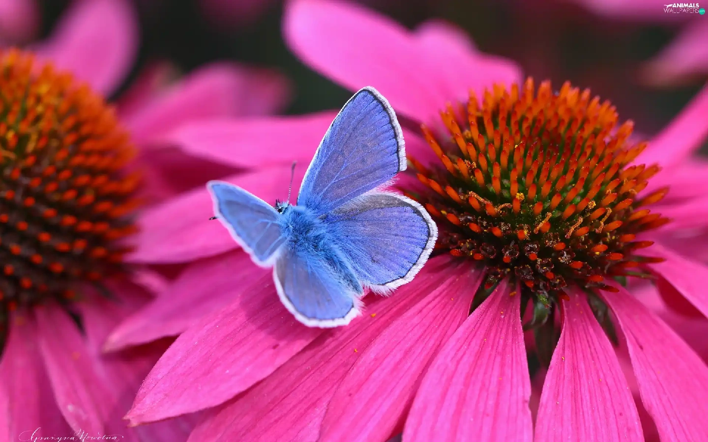 Dusky, echinacea, Colourfull Flowers, butterfly