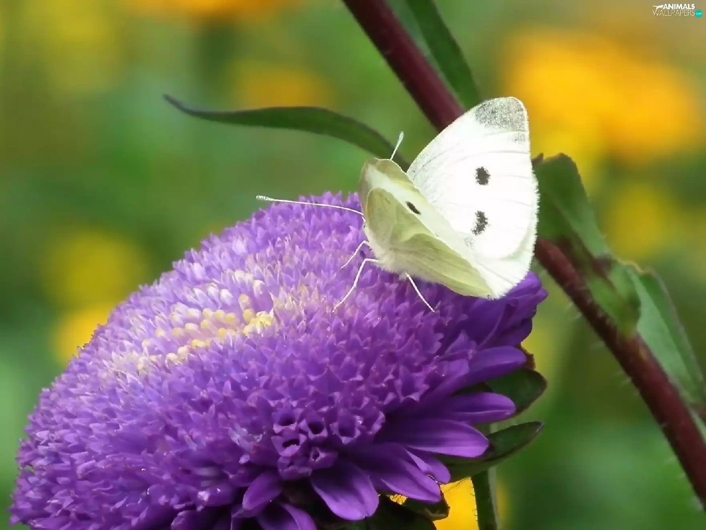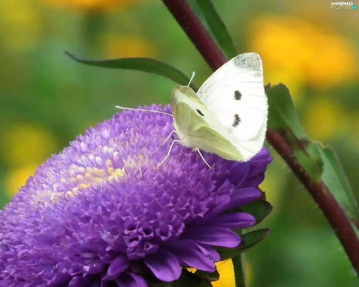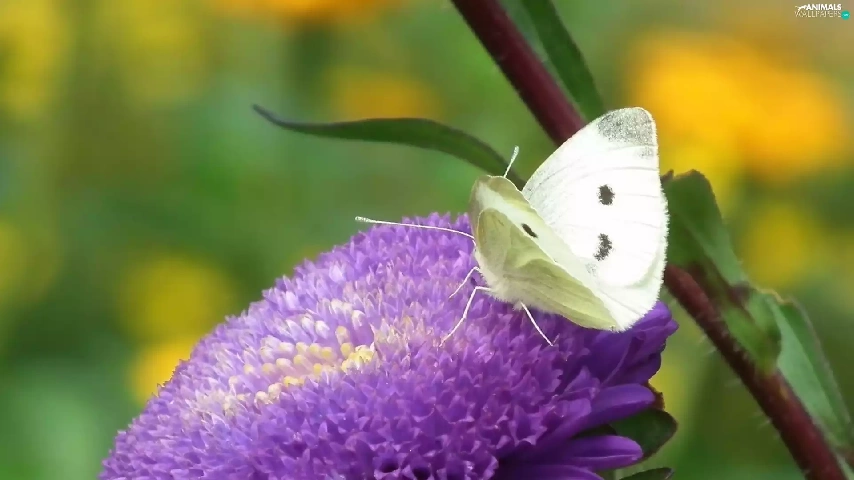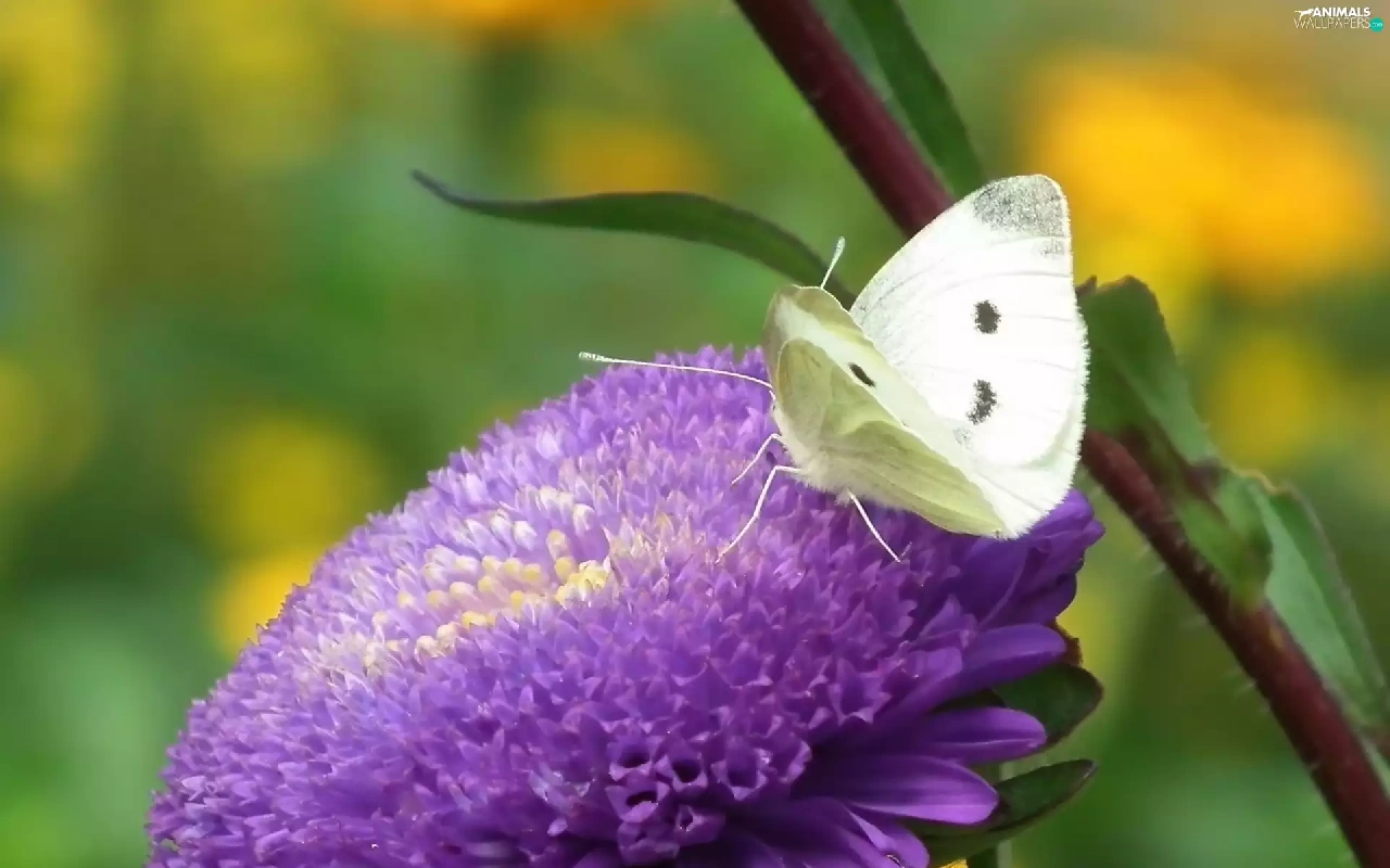 butterfly, Colourfull Flowers, Aster, Cabbage