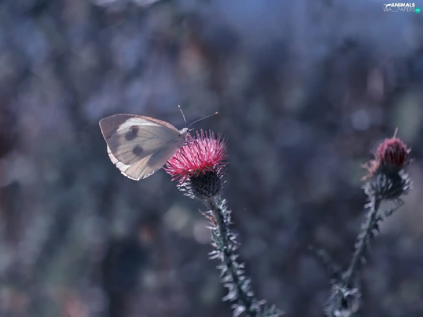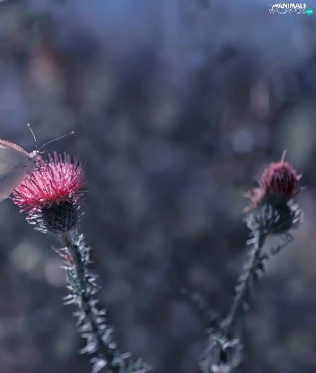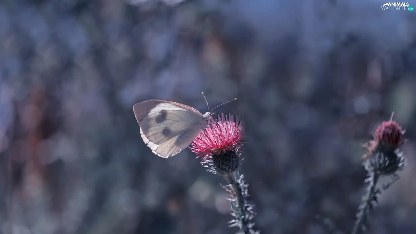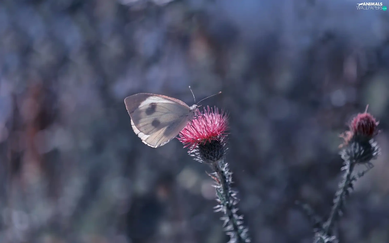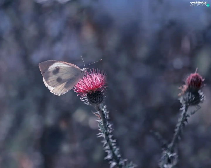 butterfly, Colourfull Flowers, teasel, Cabbage
