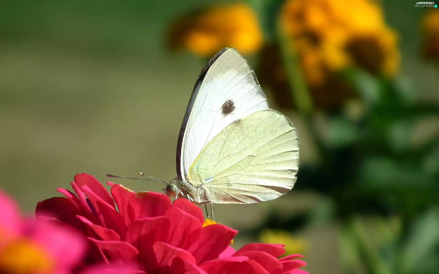 butterfly, Colourfull Flowers, zinnia, Cabbage