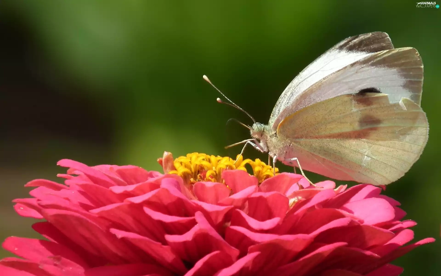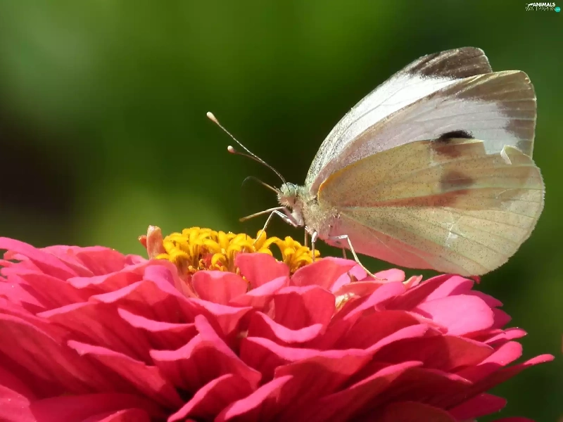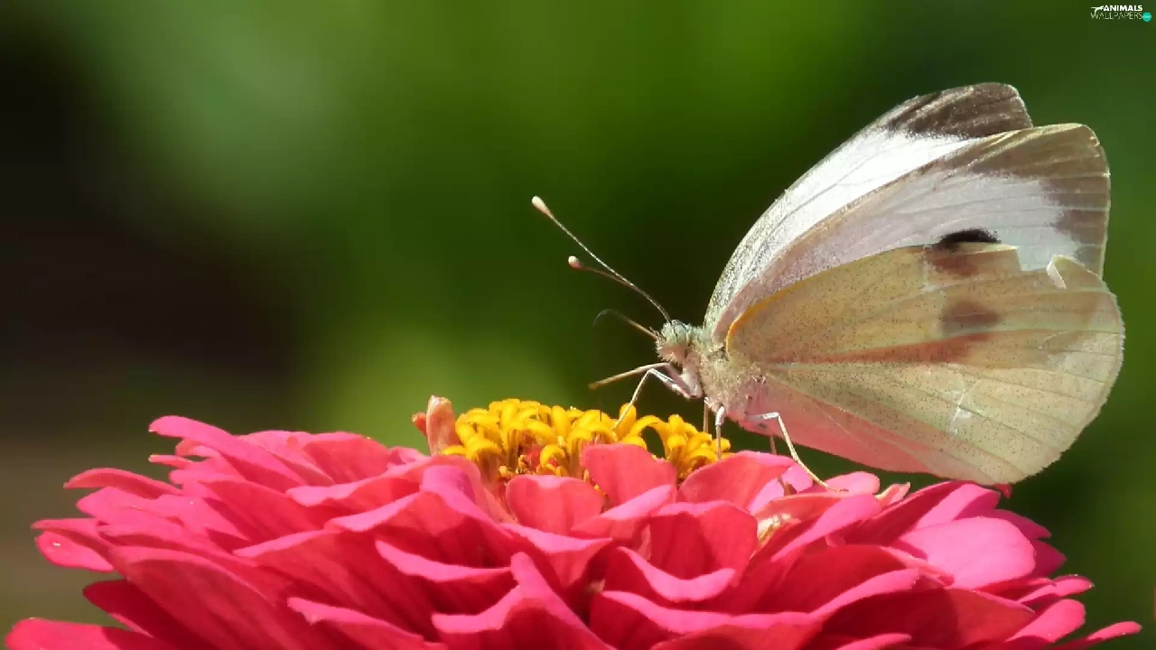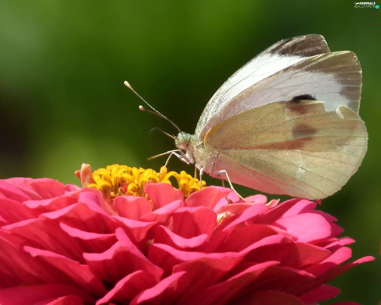 butterfly, Colourfull Flowers, zinnia, Cabbage