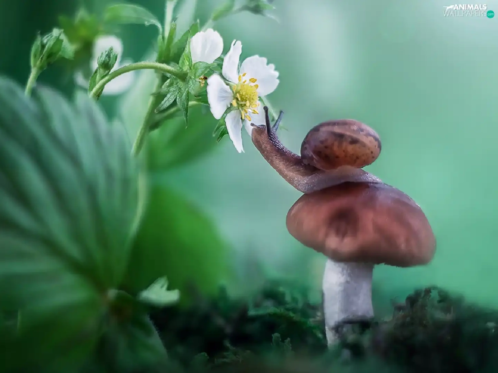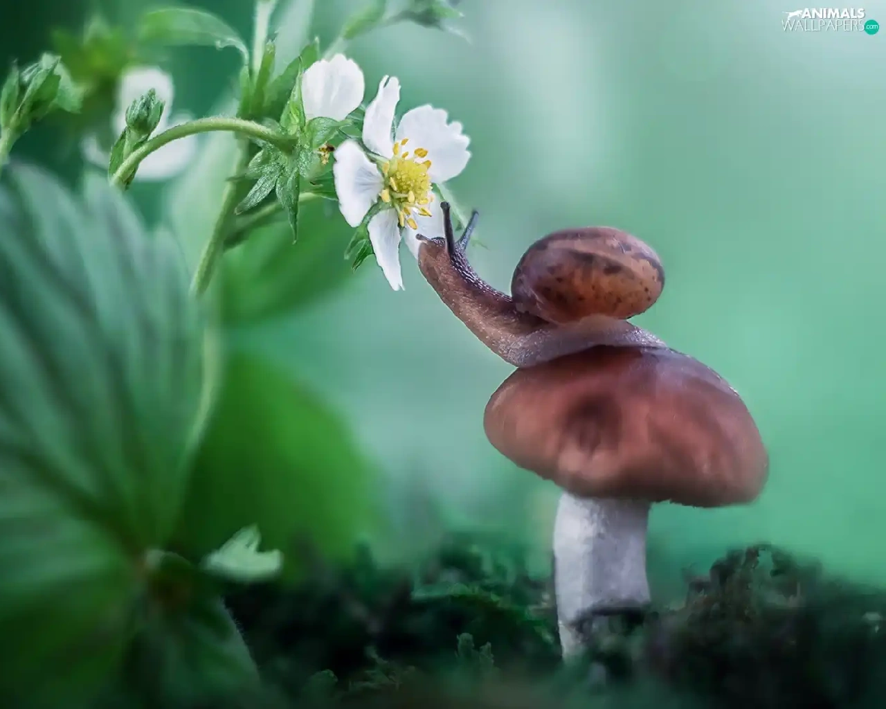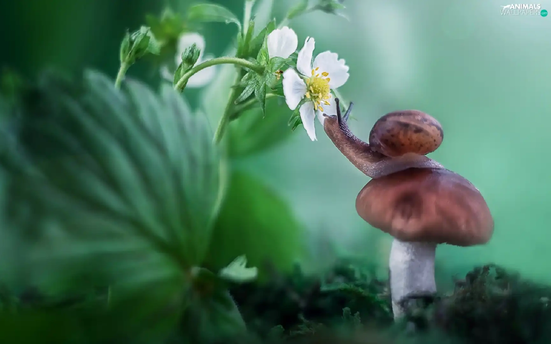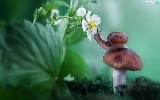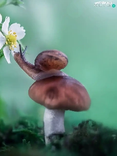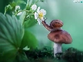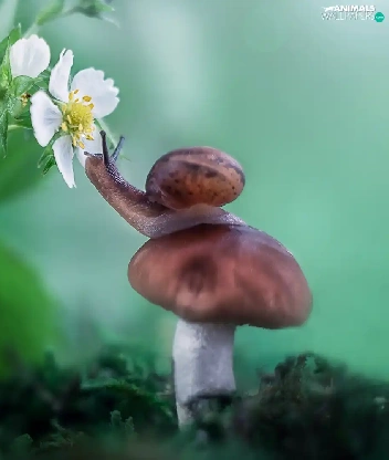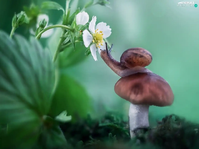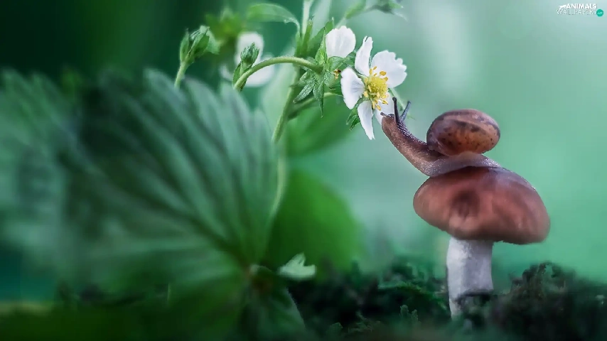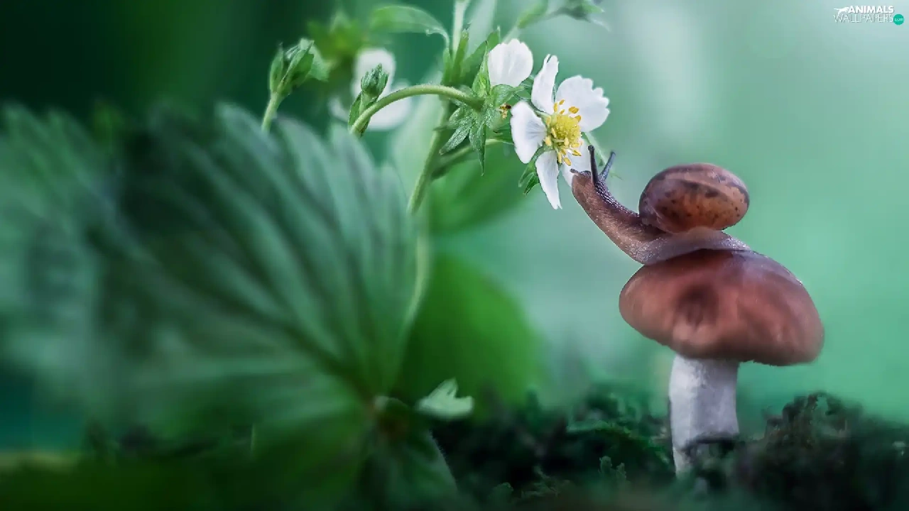 Mushrooms, Colourfull Flowers, strawberries, snail