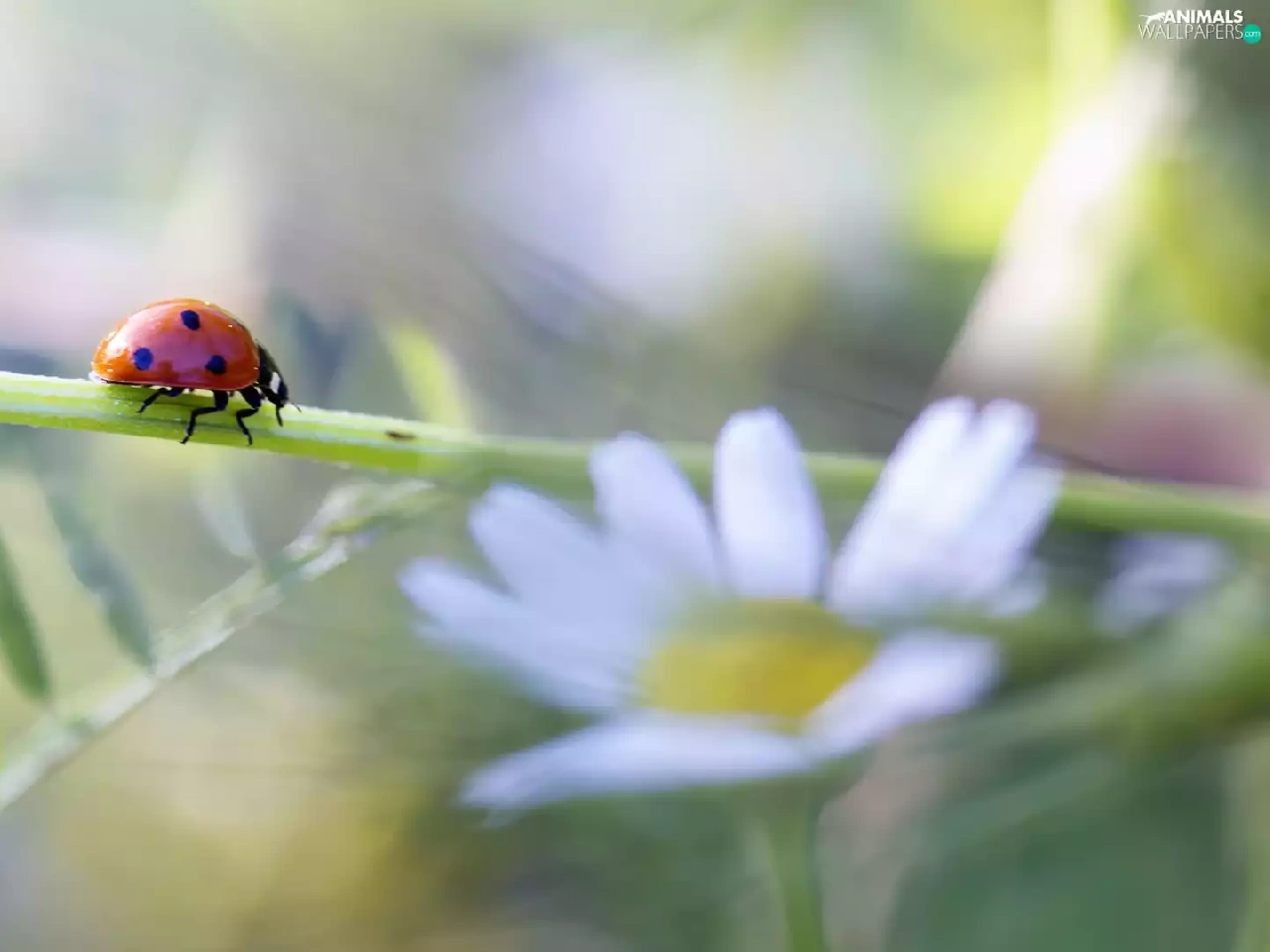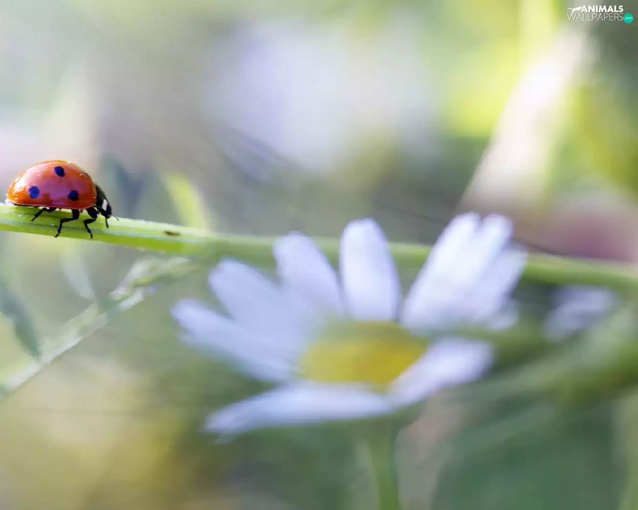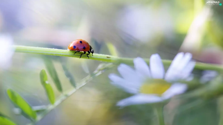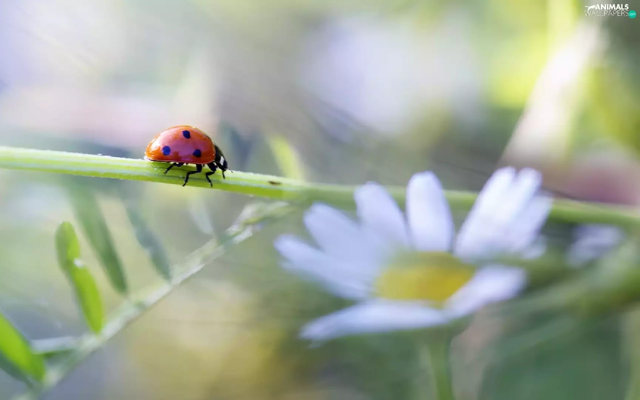 ladybird, Colourfull Flowers, Close, stalk