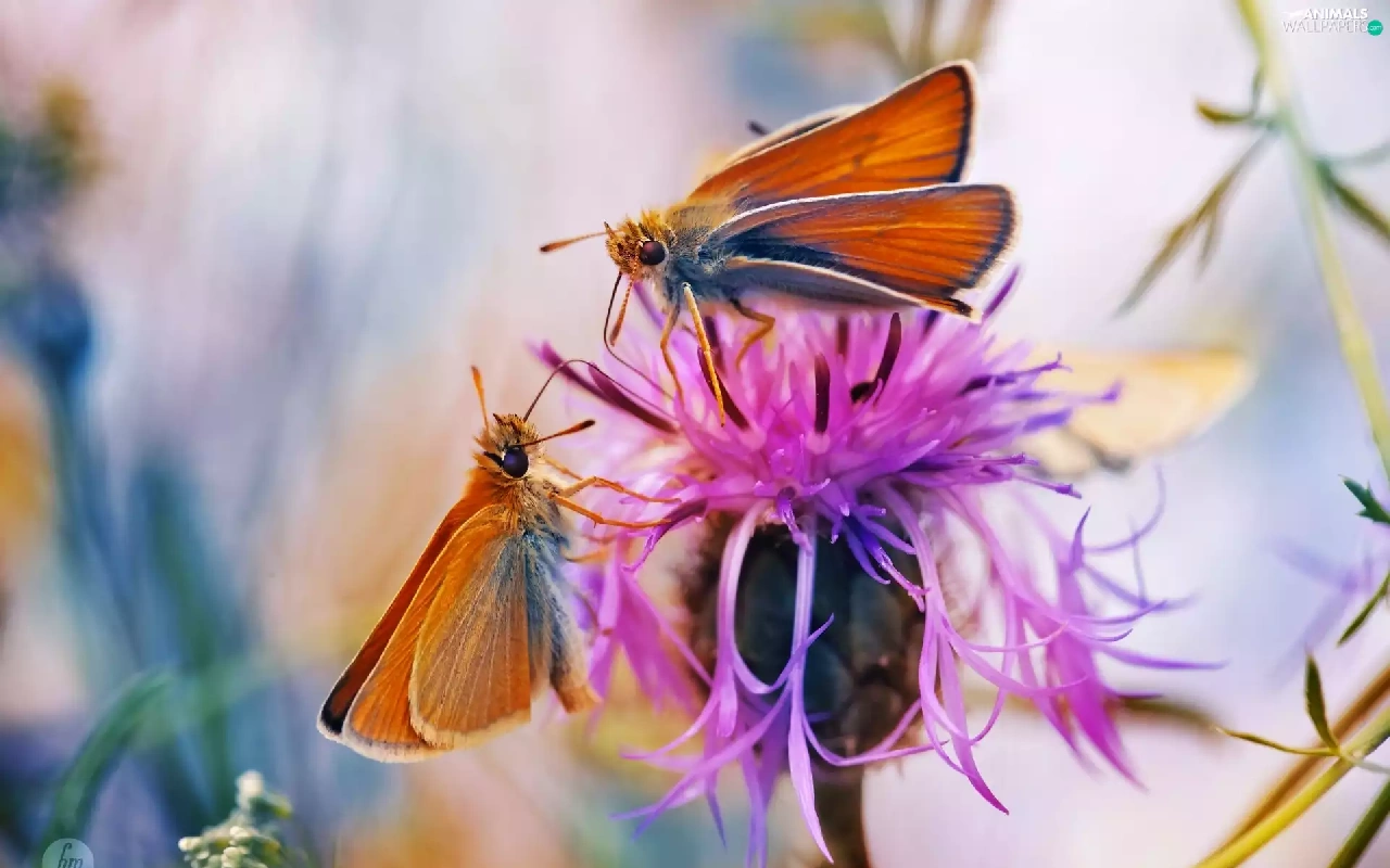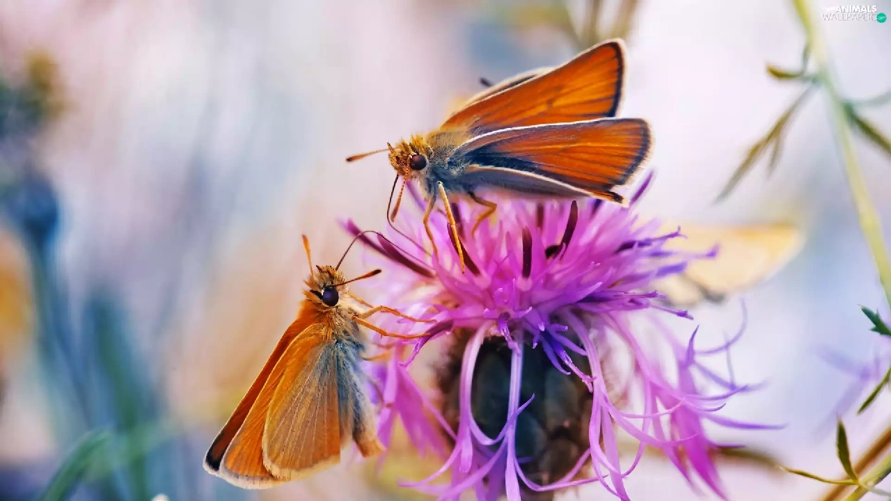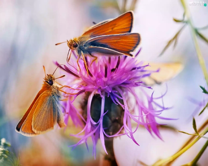 butterflies, Colourfull Flowers, Close, teasel