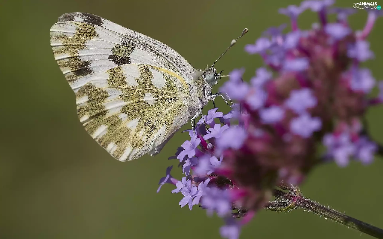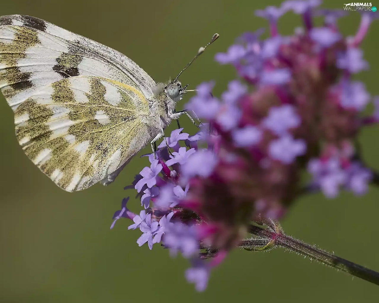 butterfly, Colourfull Flowers, Close, Violet