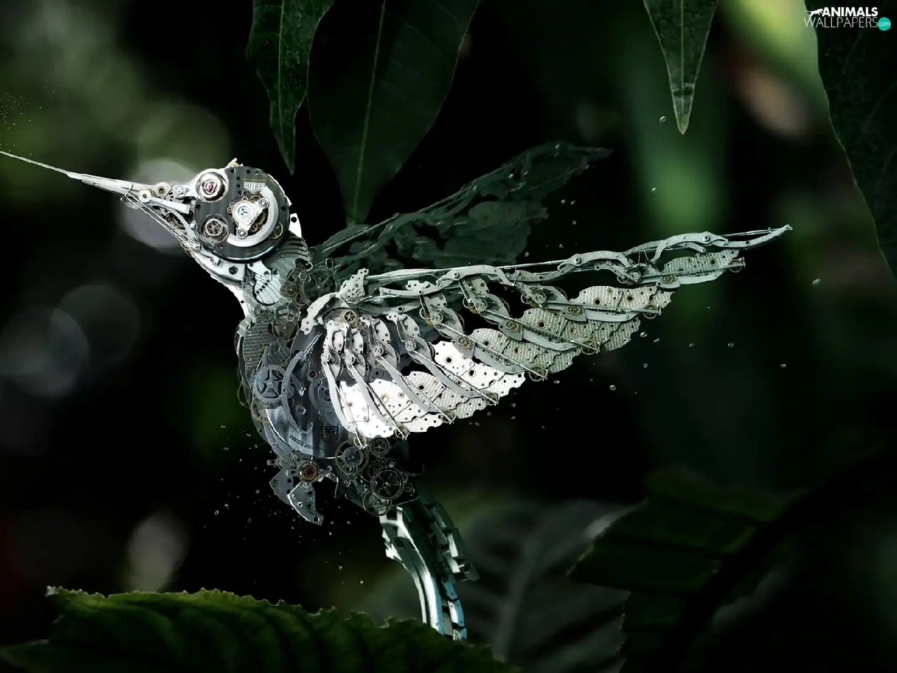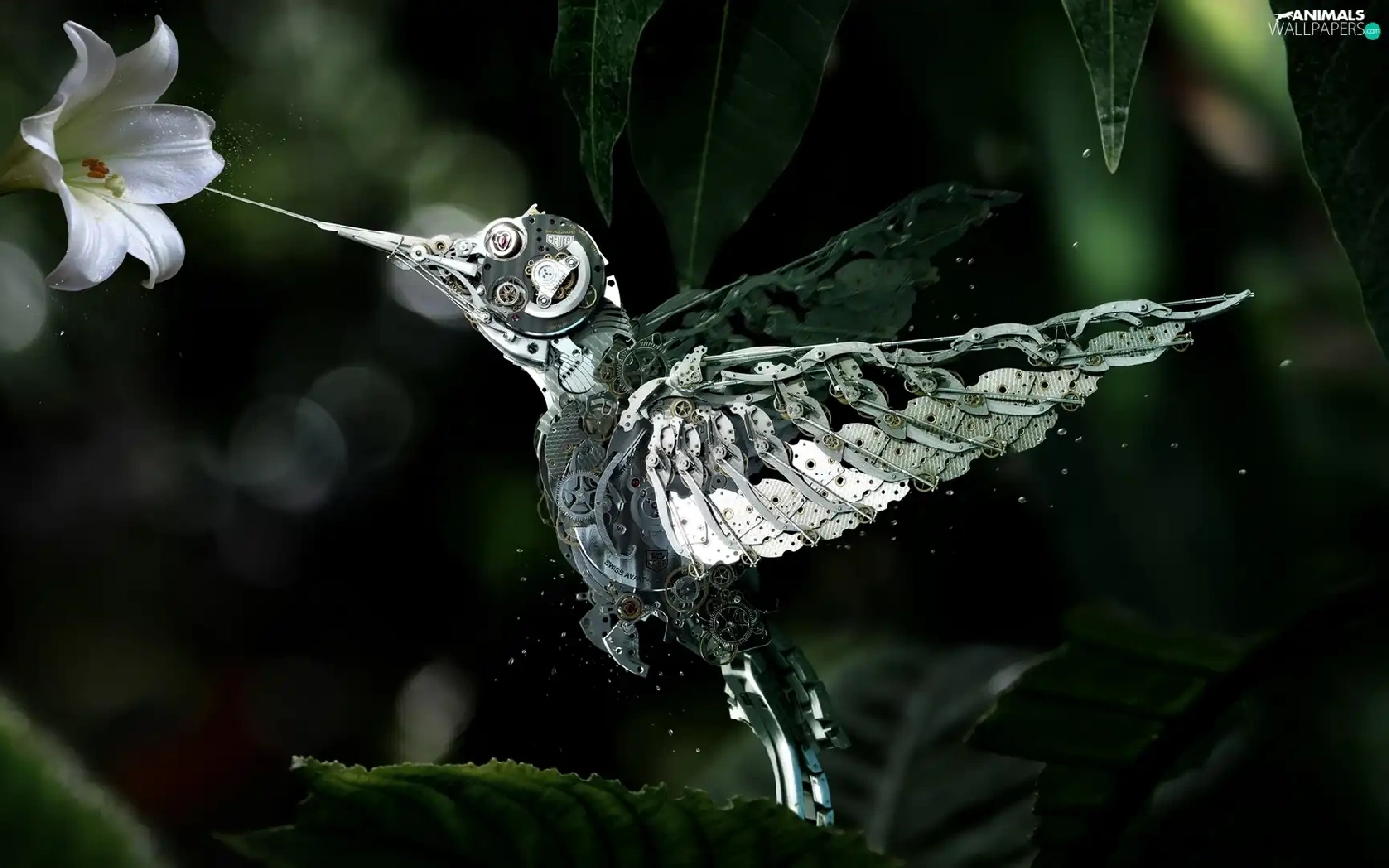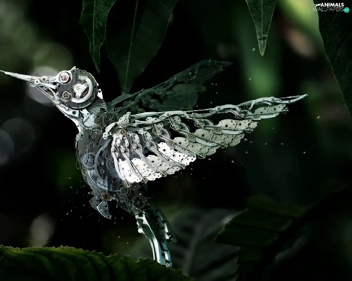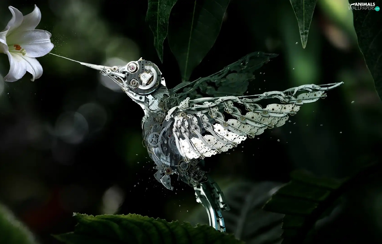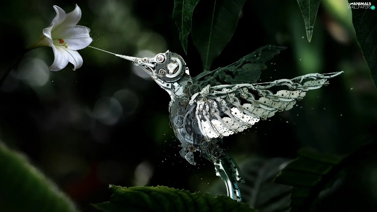 Lily, Steampunk, humming-bird, Colourfull Flowers, fantasy