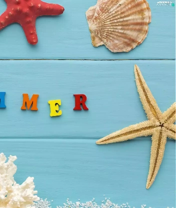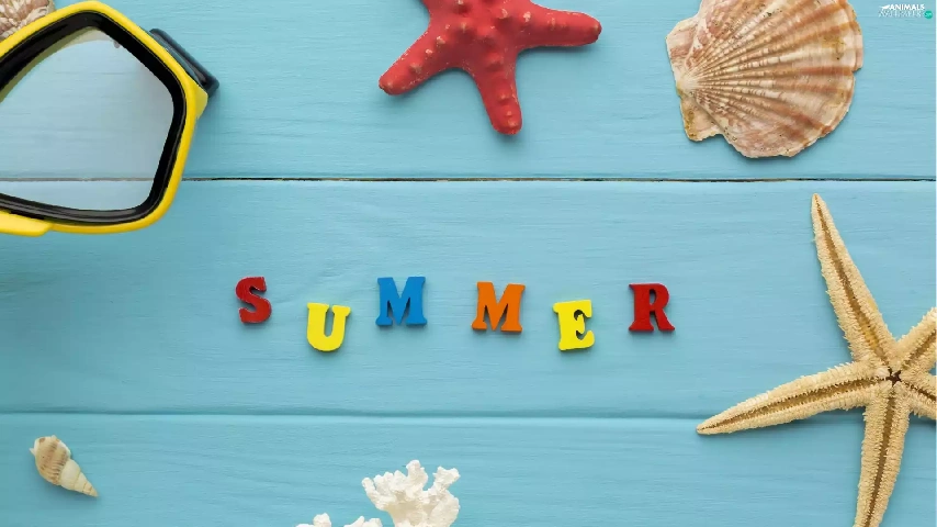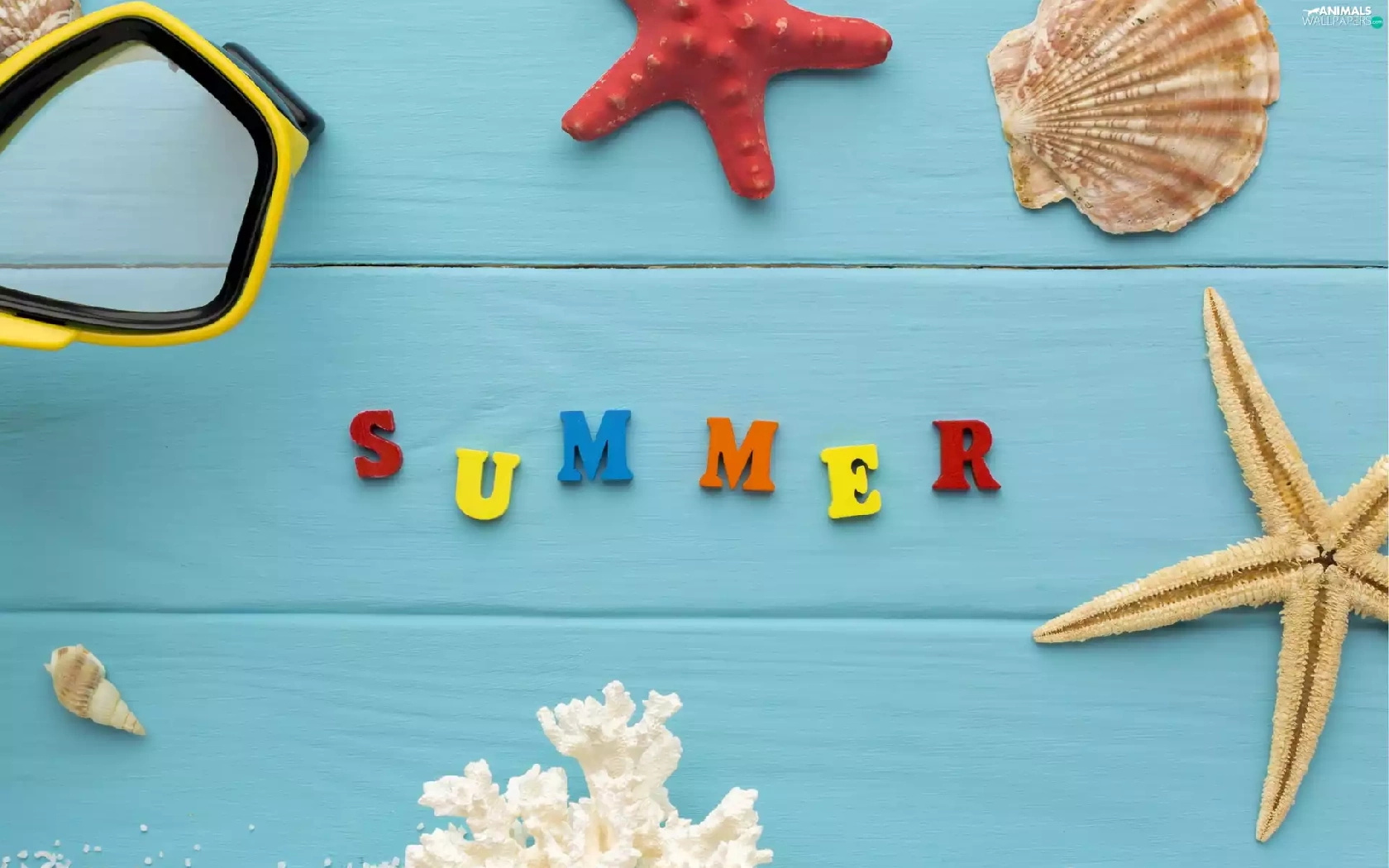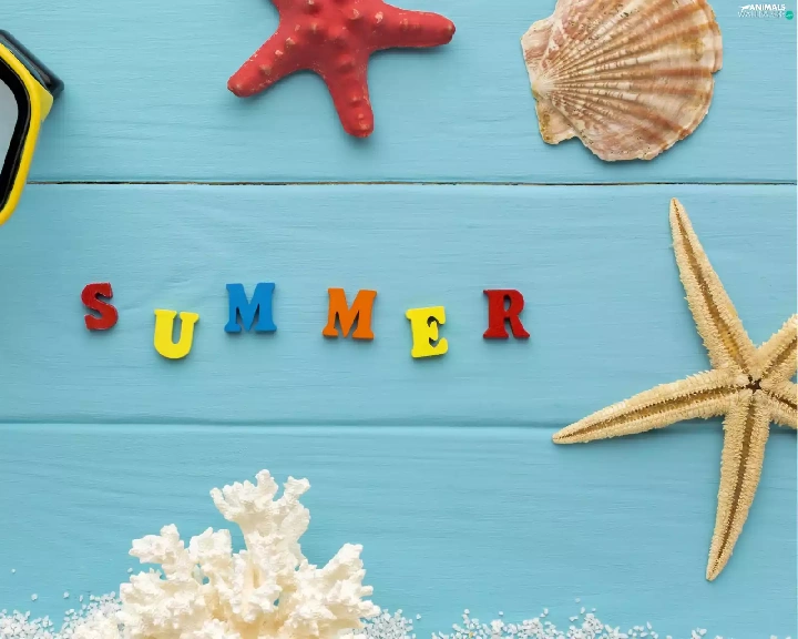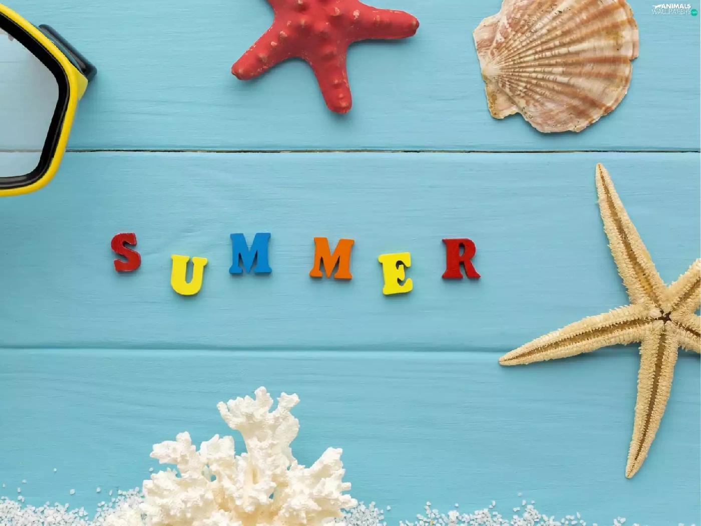 text, starfish, coral, composition, summer, Shells