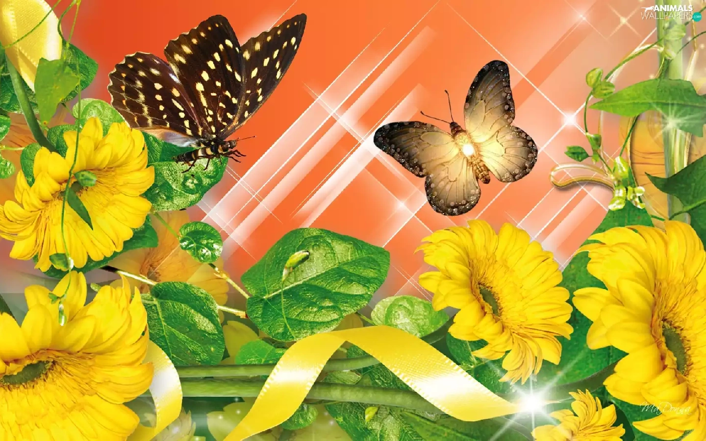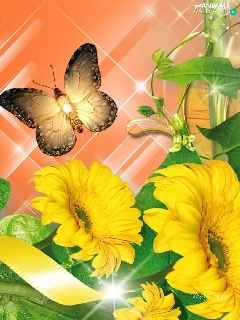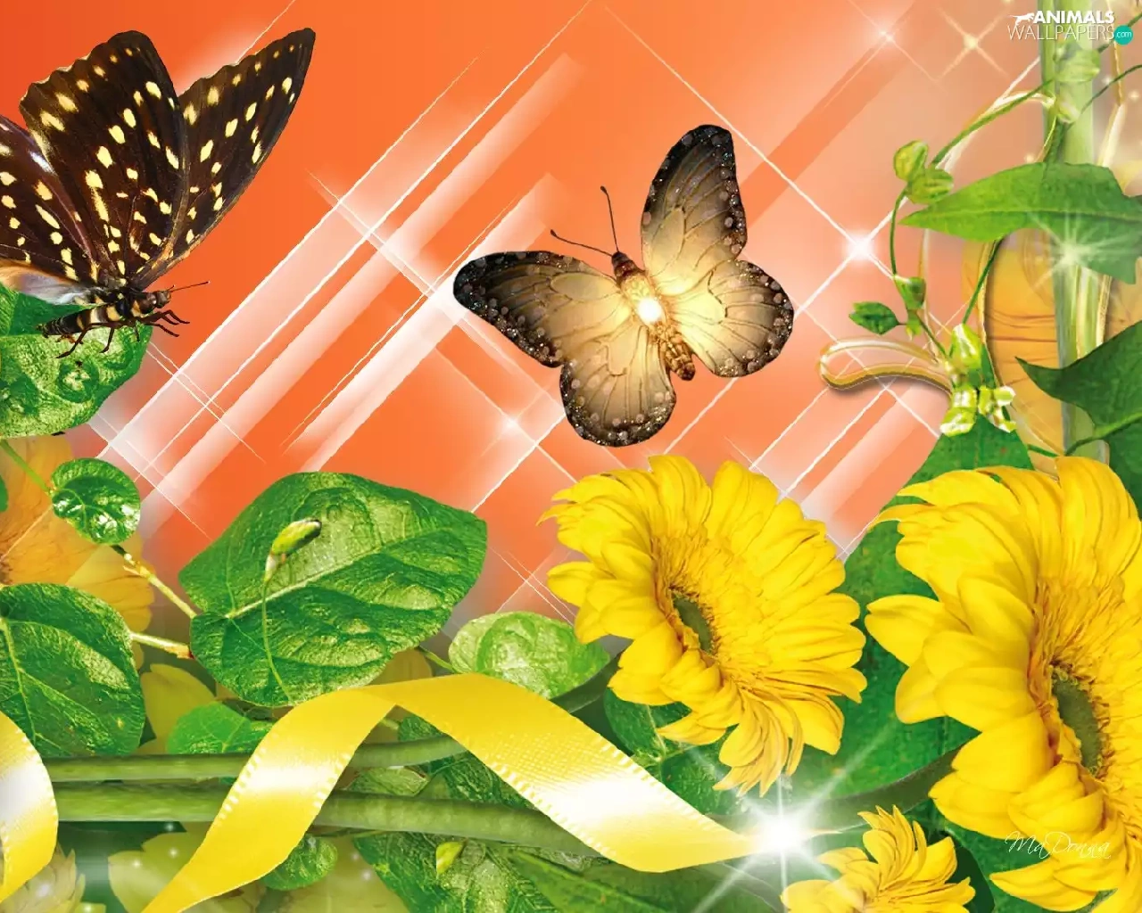 graphics, Computer, Flowers, butterflies, Yellow