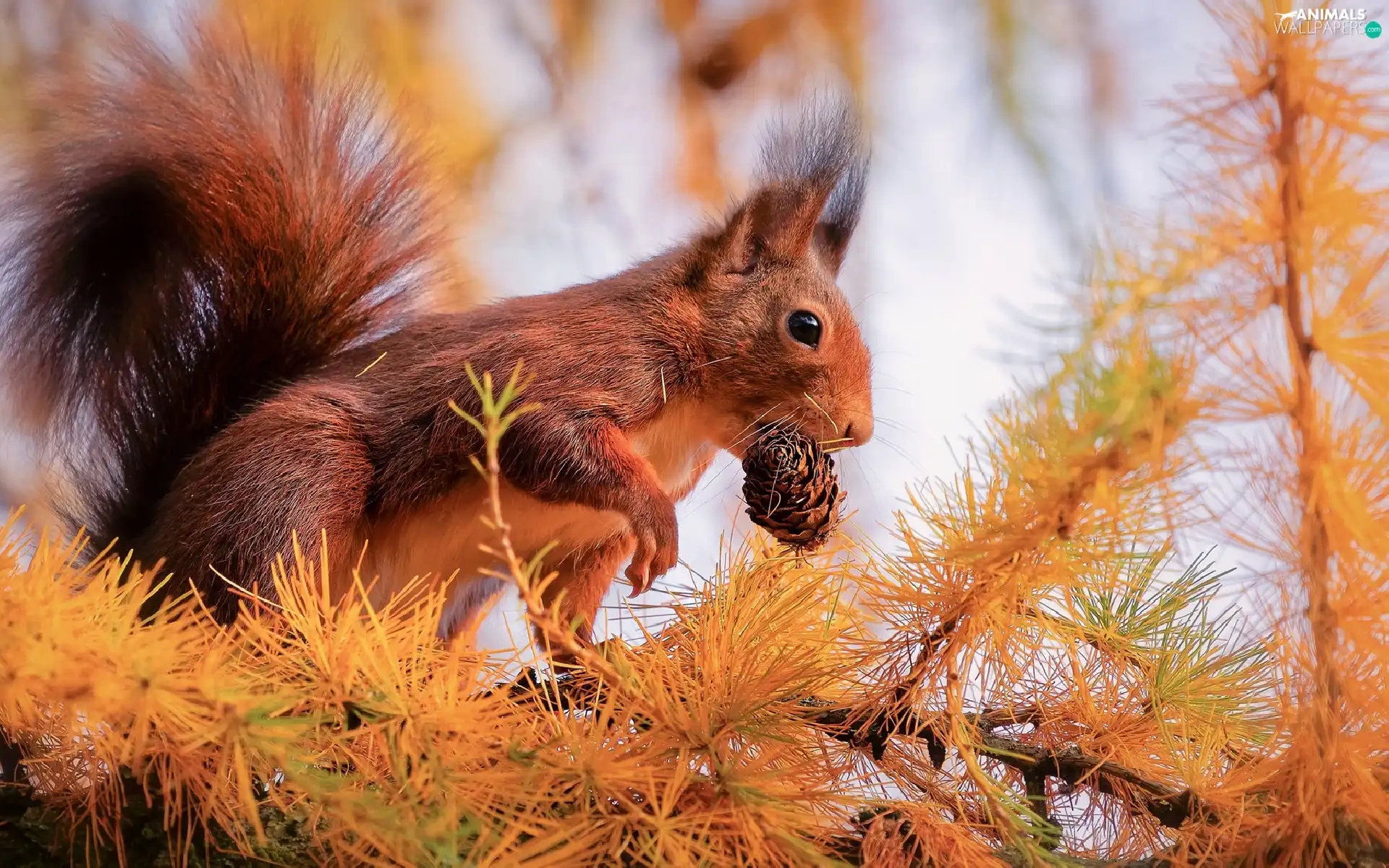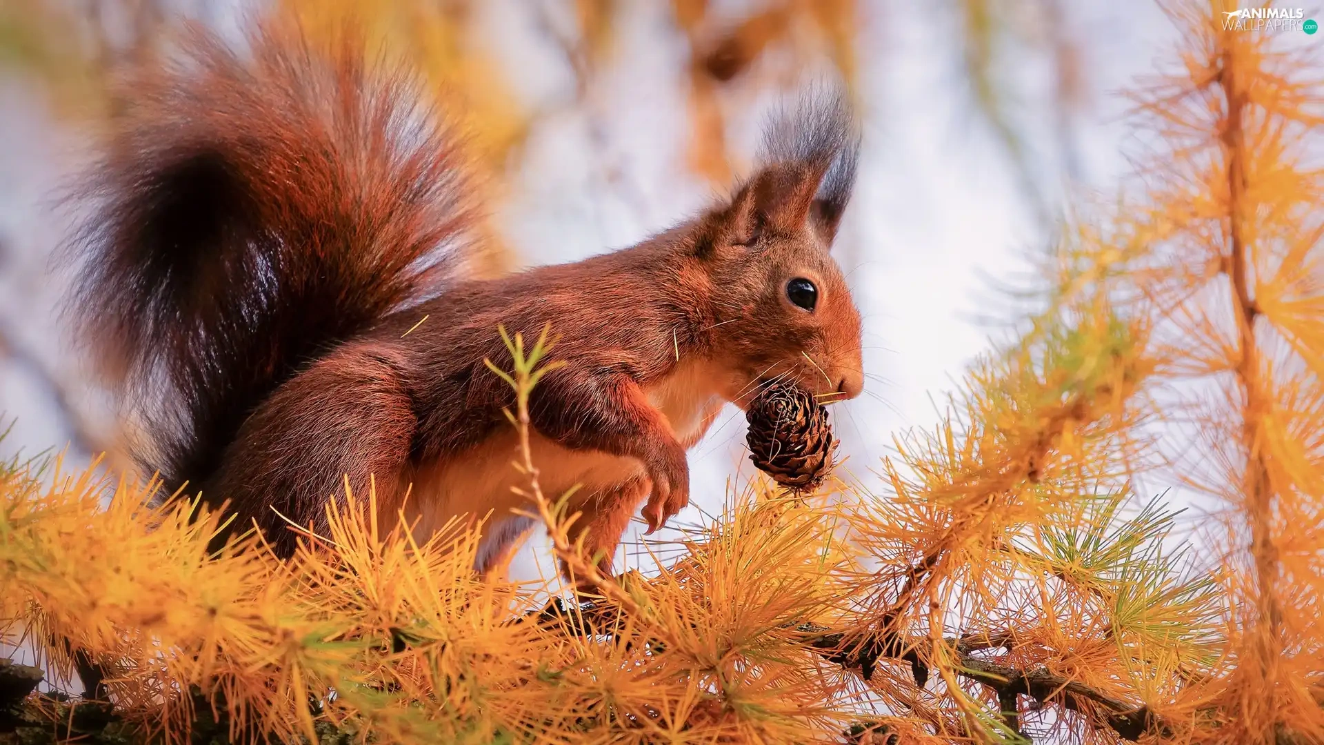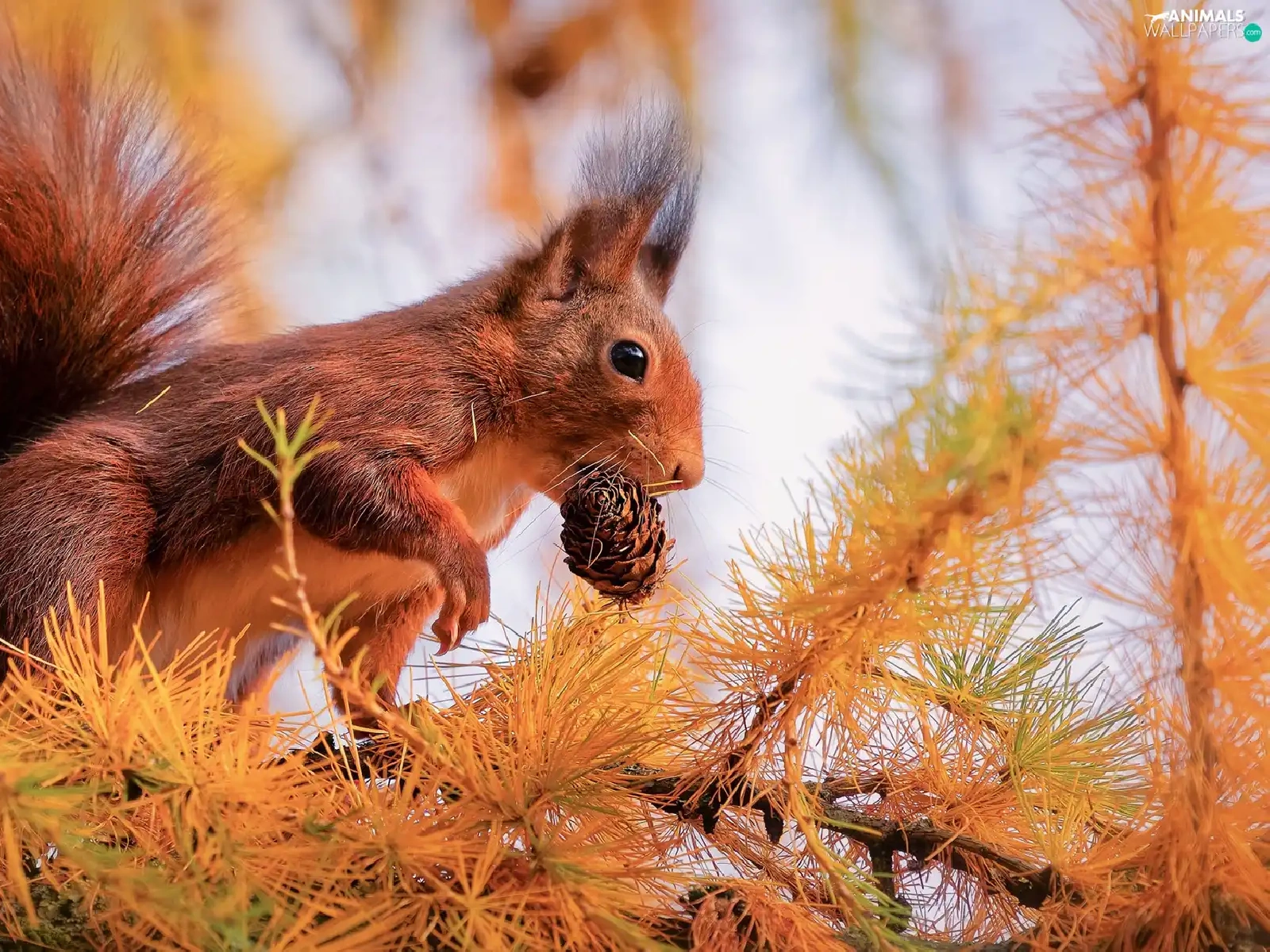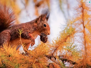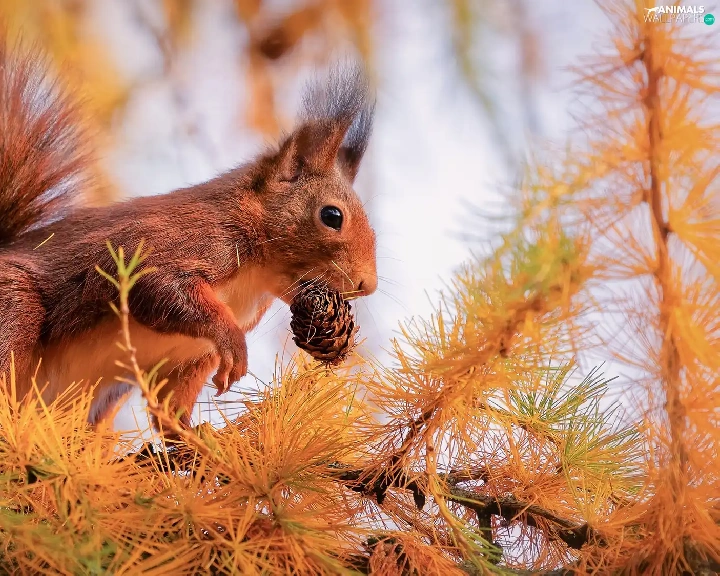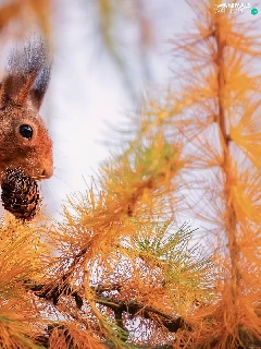 larch, branch pics, cone, trees, squirrel