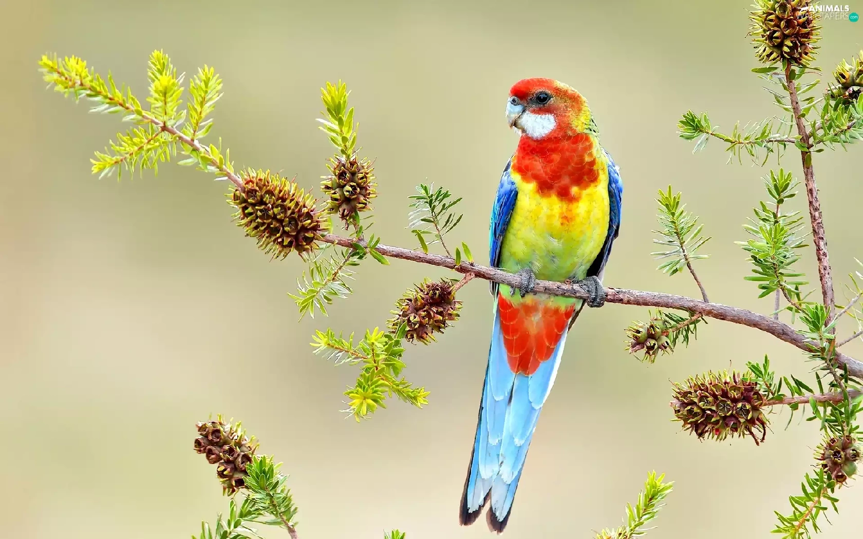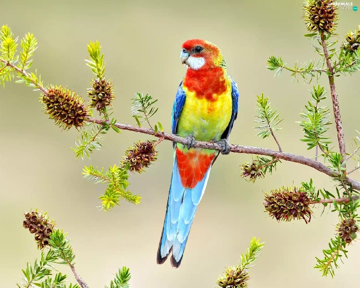 cones, parrot, twig