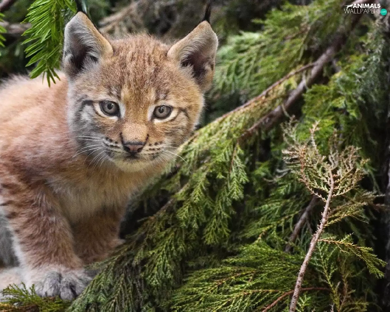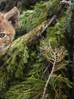 viewes, Conifers, Lynx, trees, young
