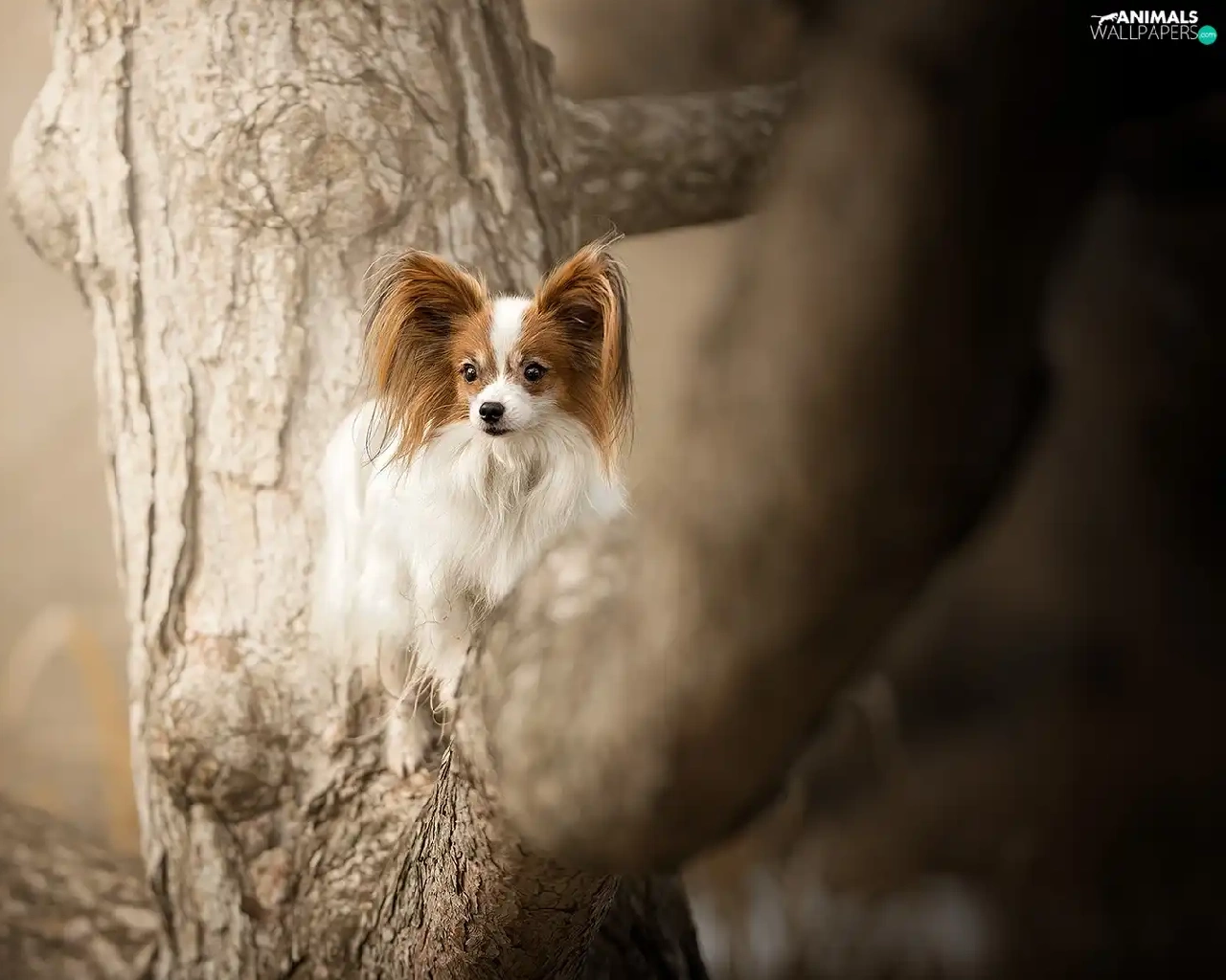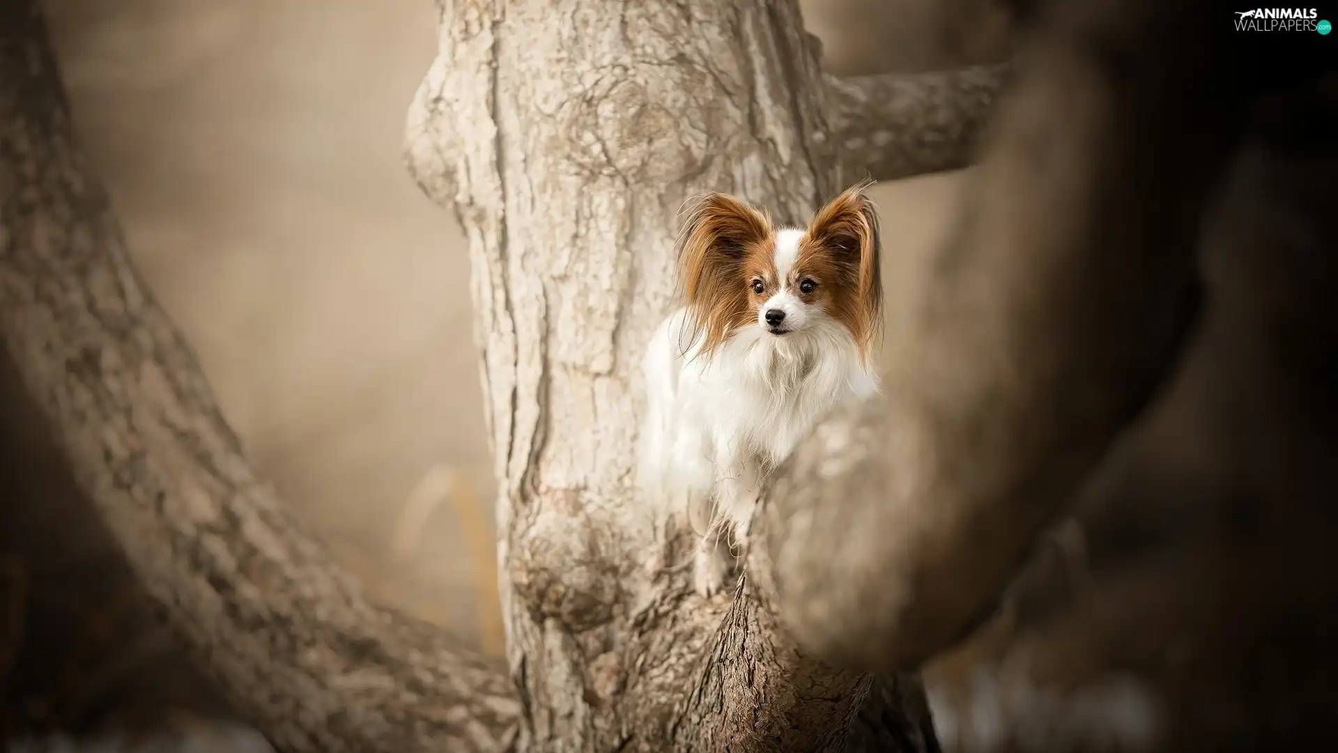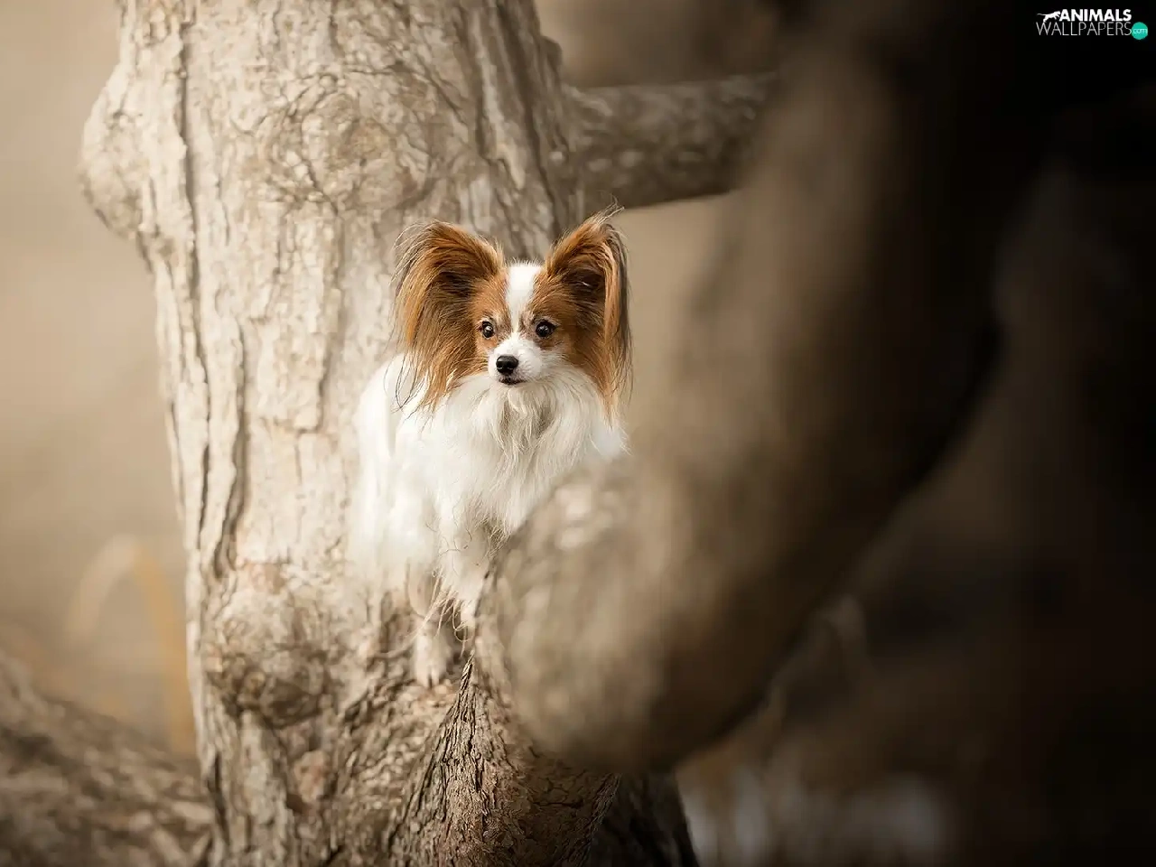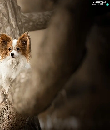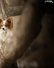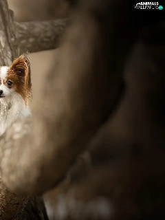 trees, dog, Miniature Continental Toy Spaniel Papillon
