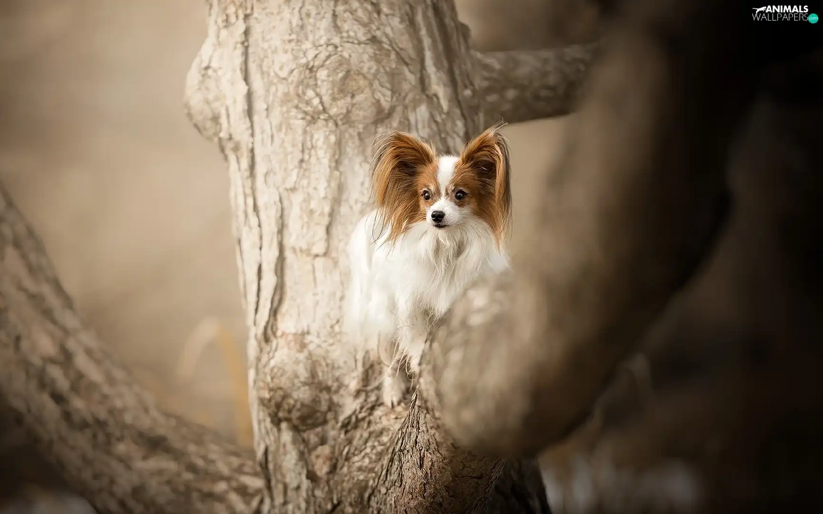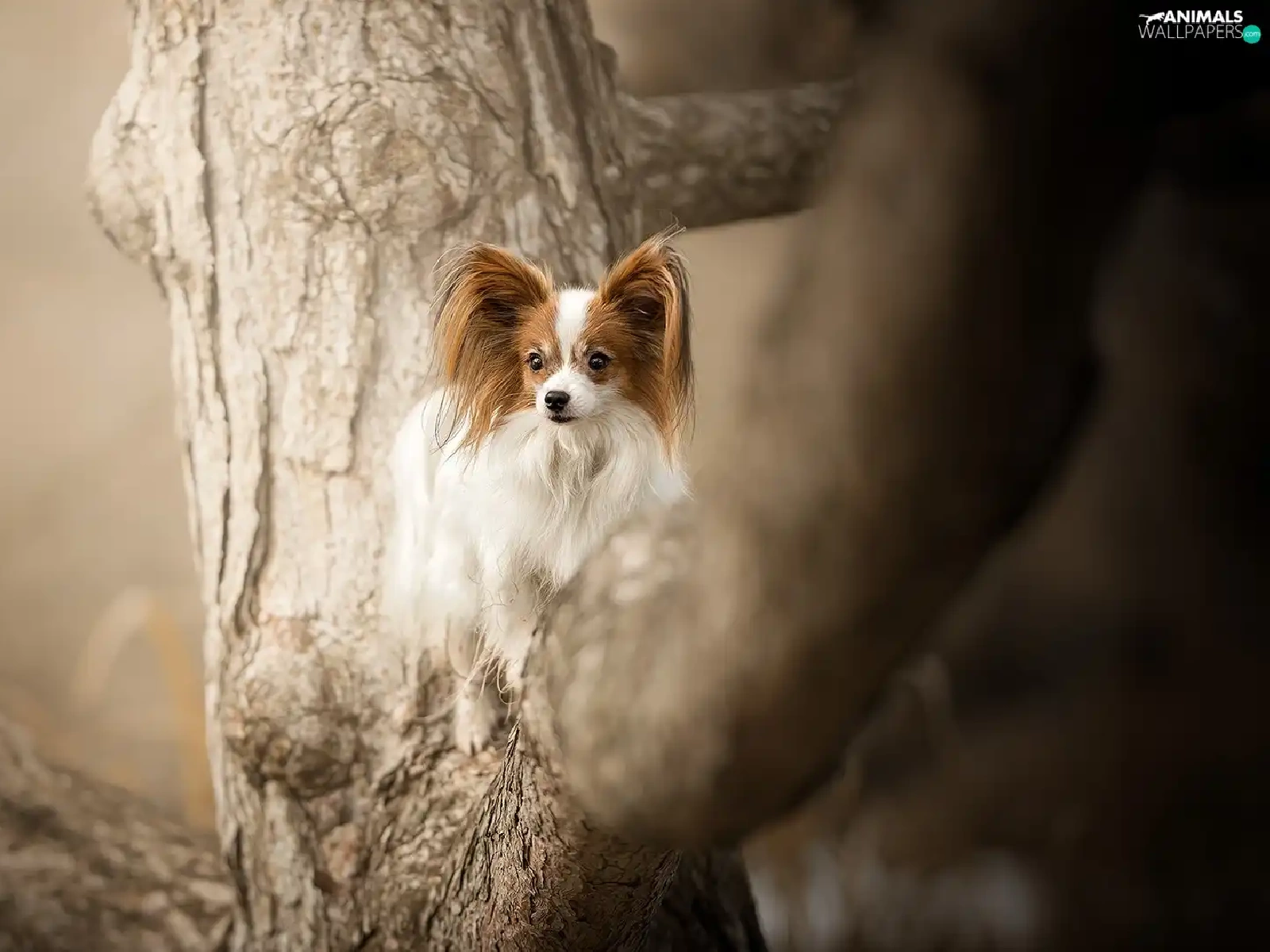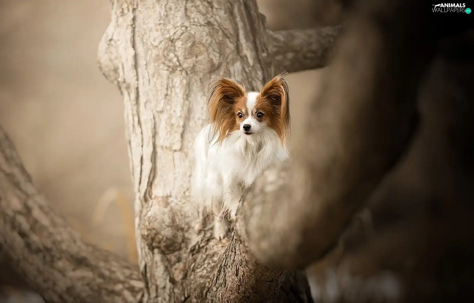 trees, dog, Miniature Continental Toy Spaniel Papillon