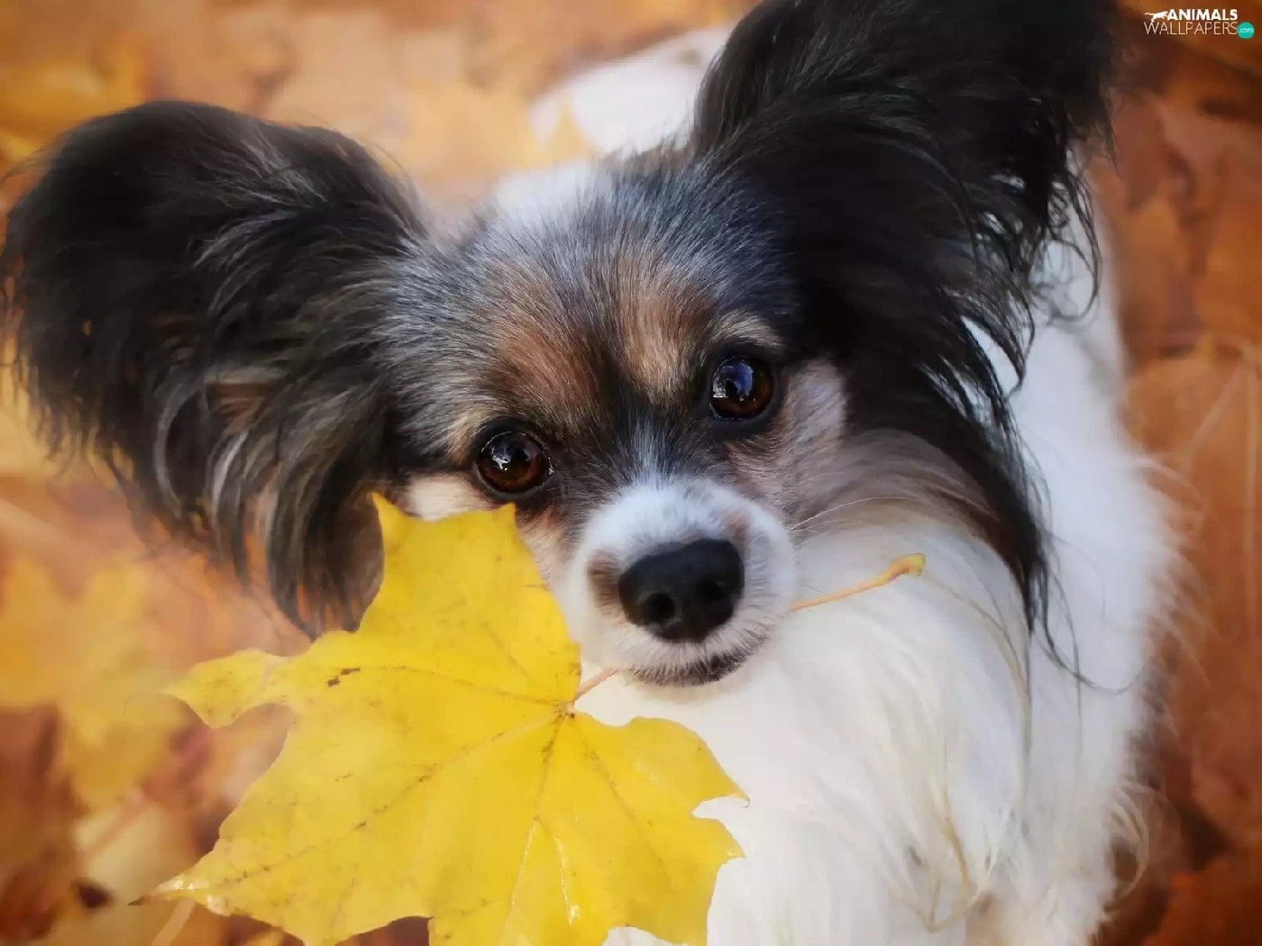 leaf, dog, Miniature Continental Toy Spaniel Papillon