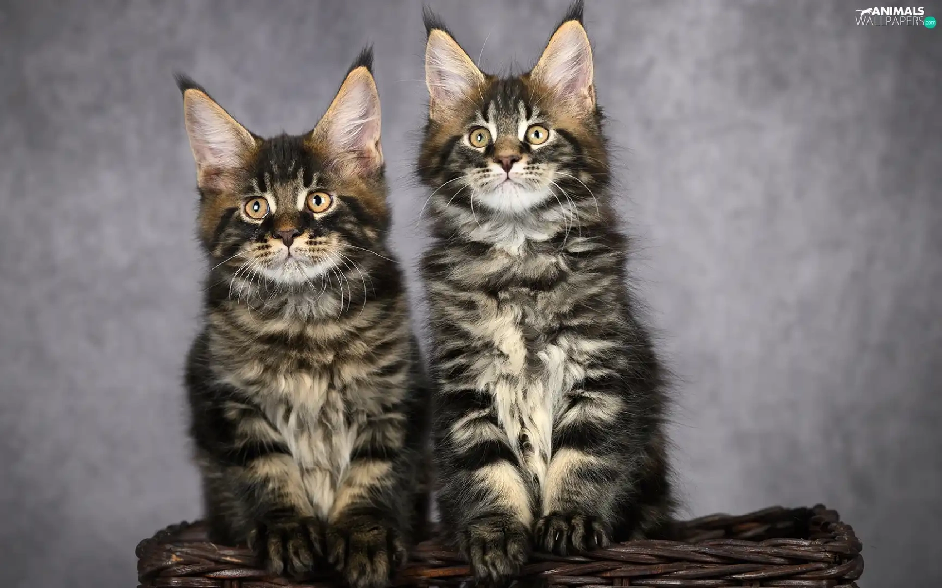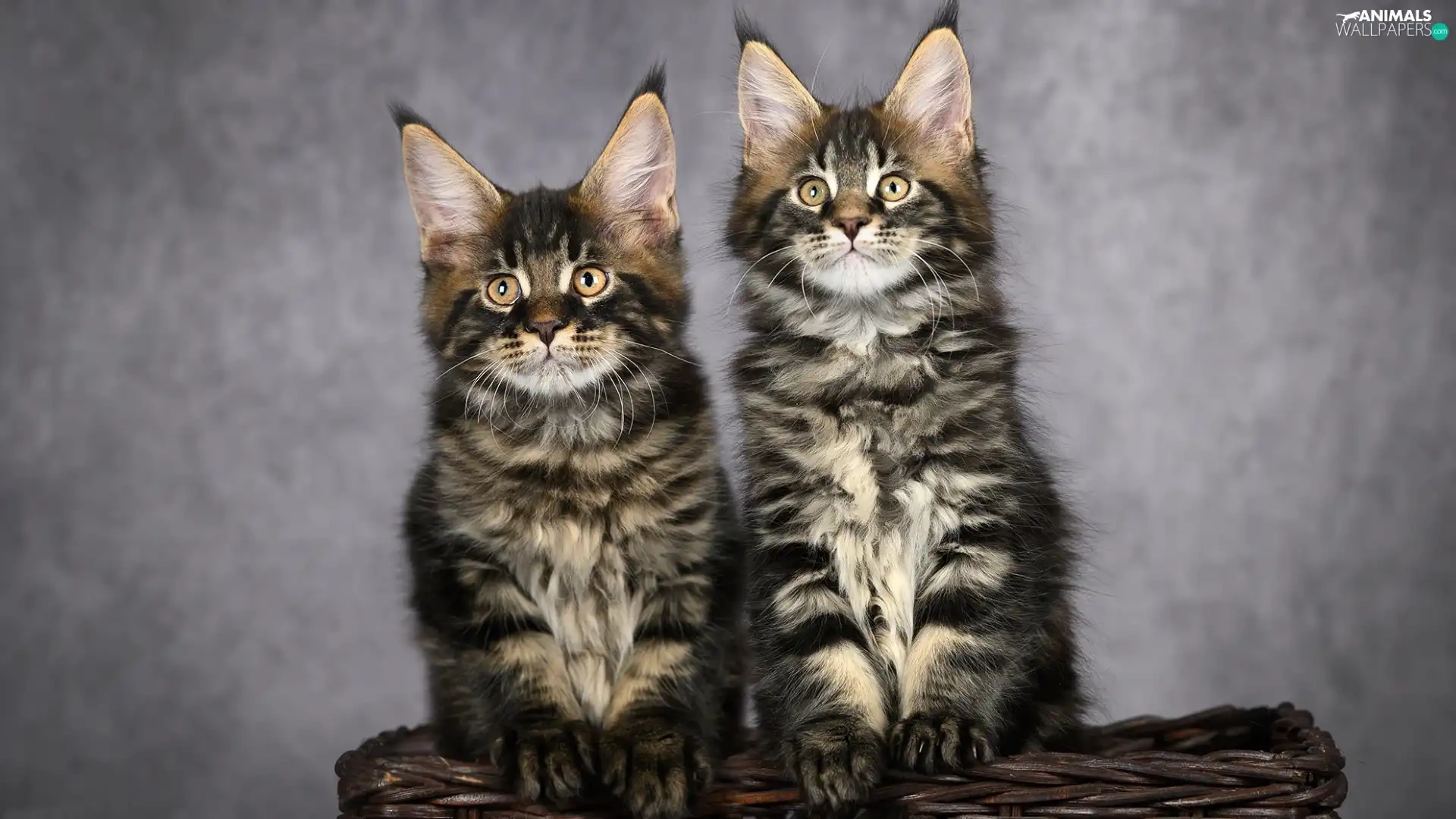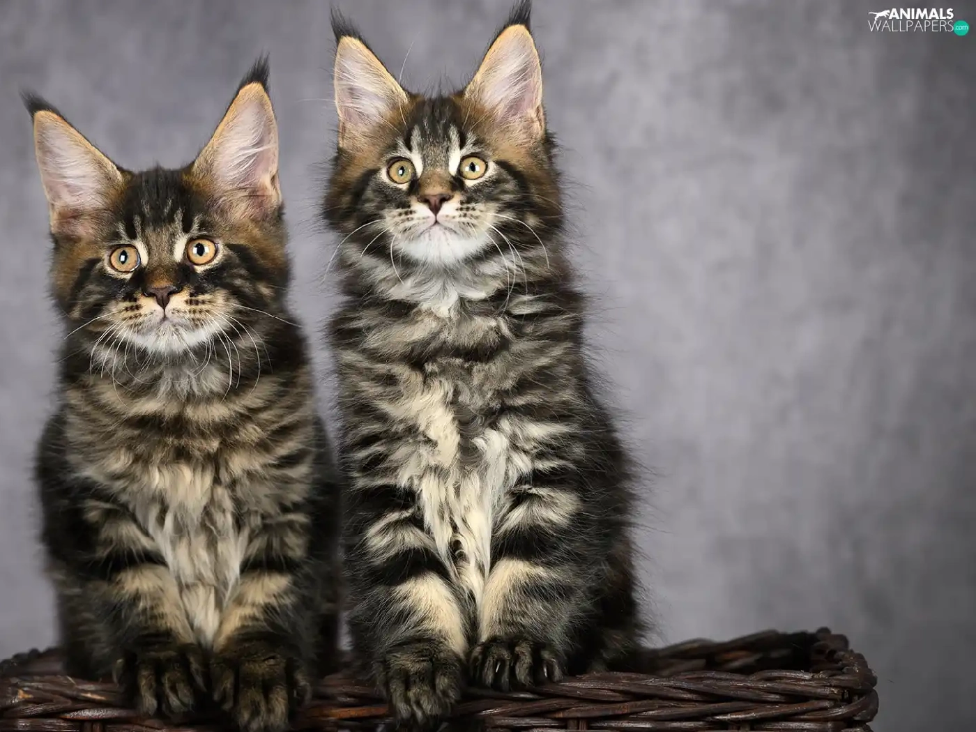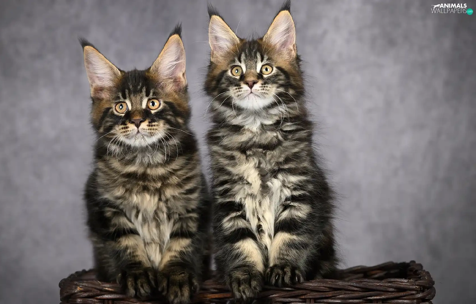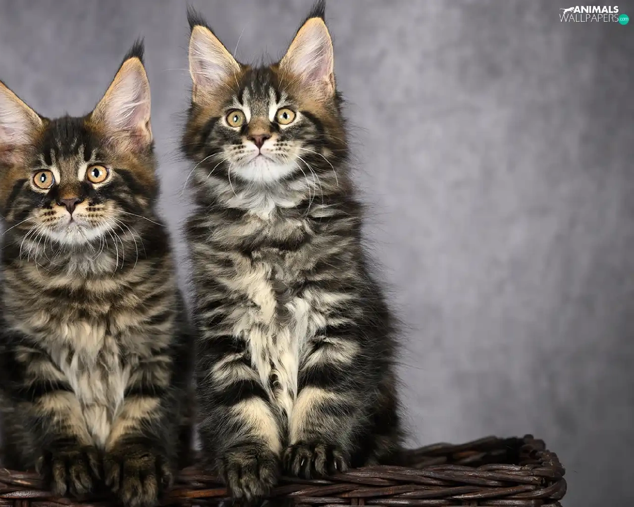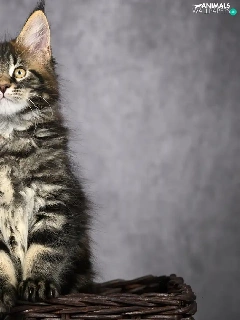 Two cars, Maine Coon, basket, cats