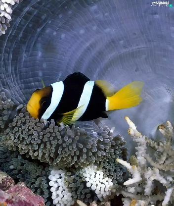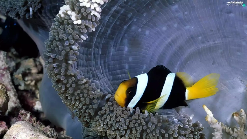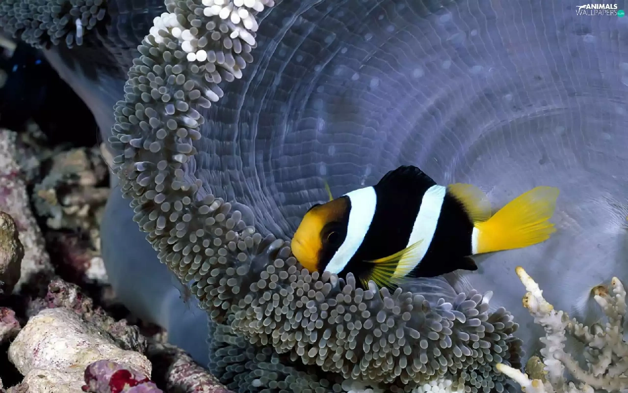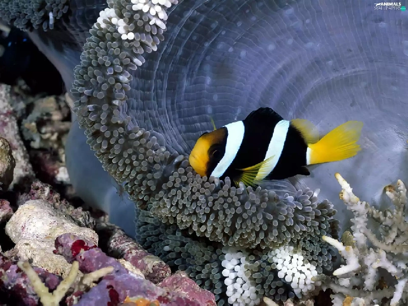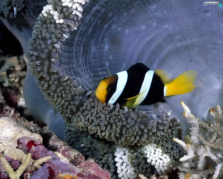 black, white, reef, coral, Fish, yellow