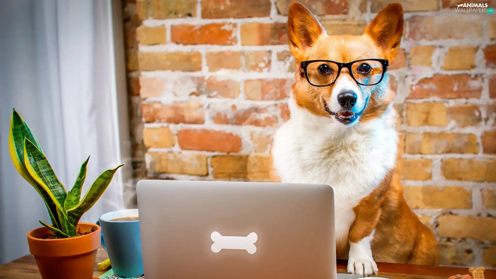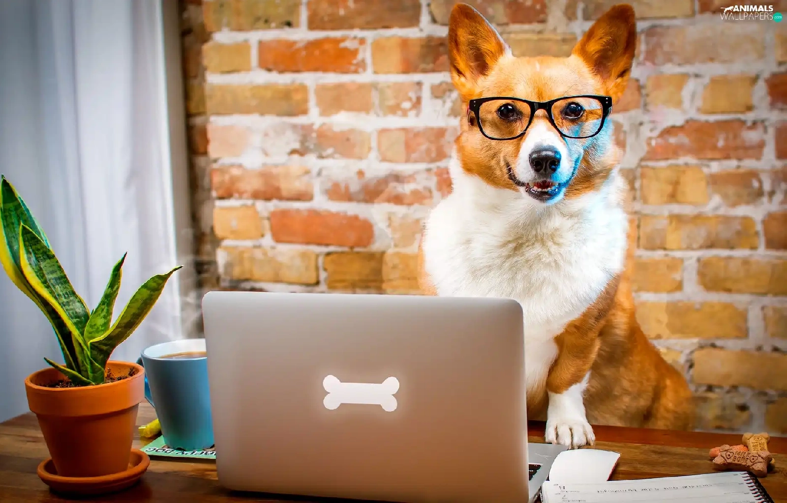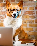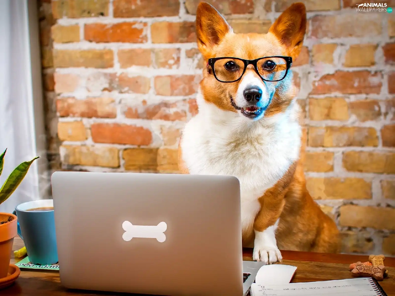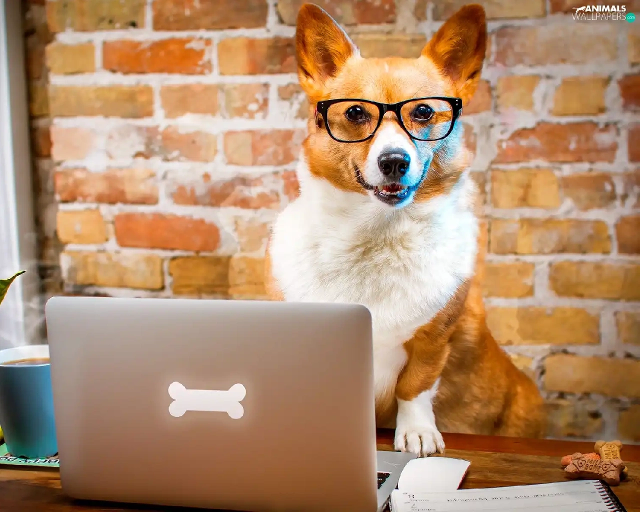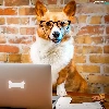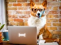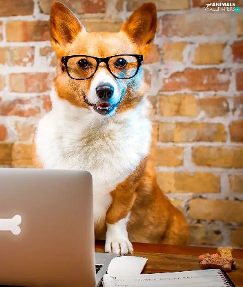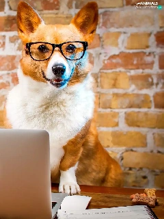 laptop, Funny, Welsh corgi pembroke, Glasses, dog