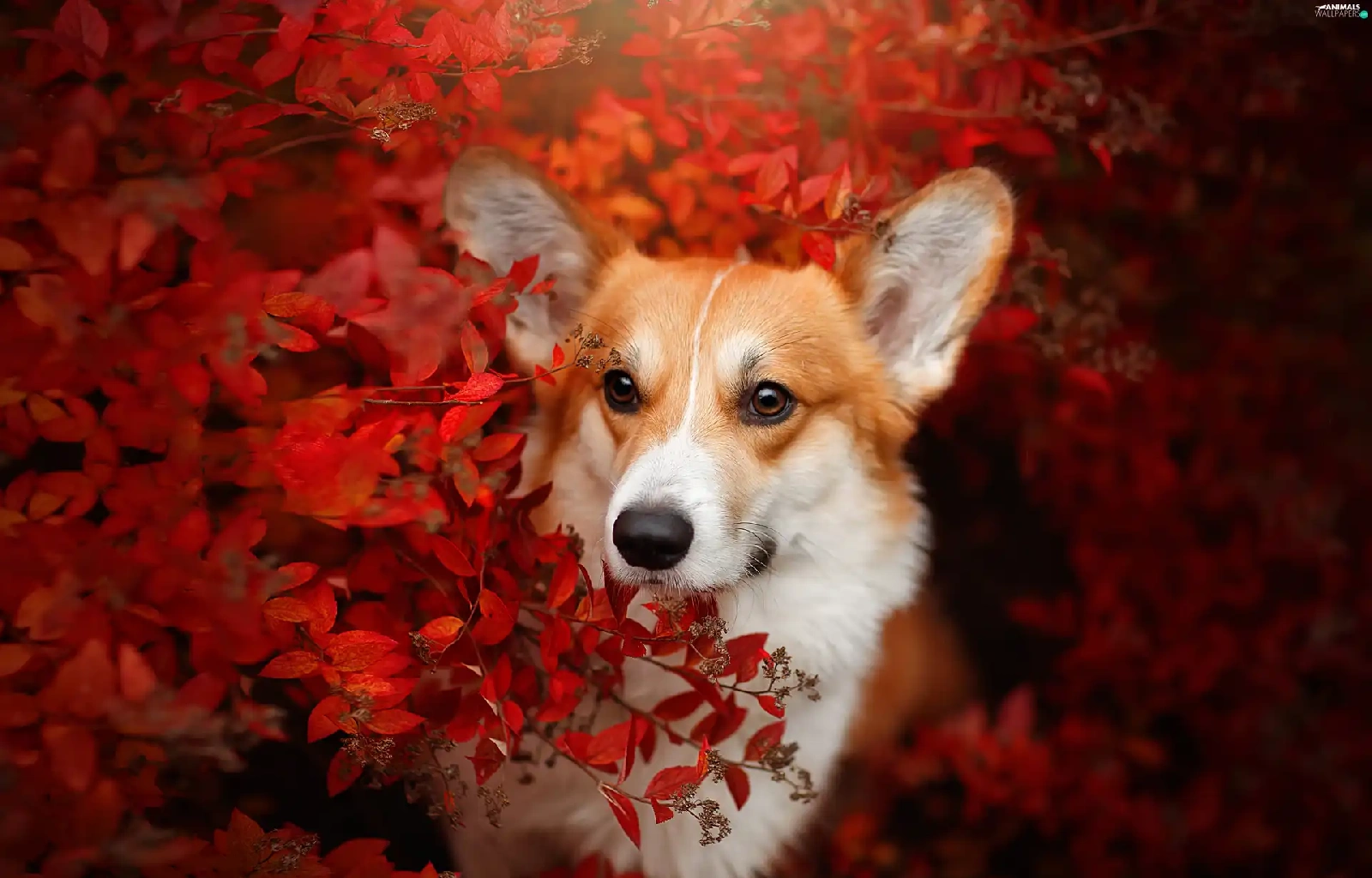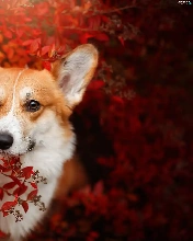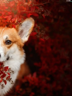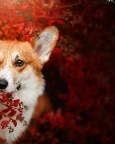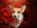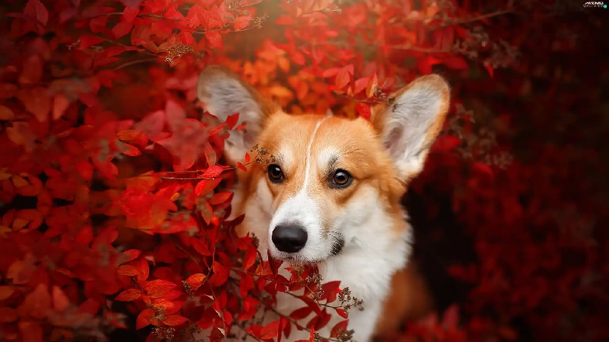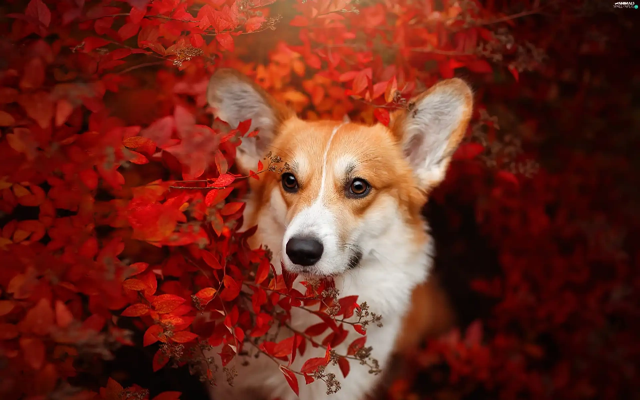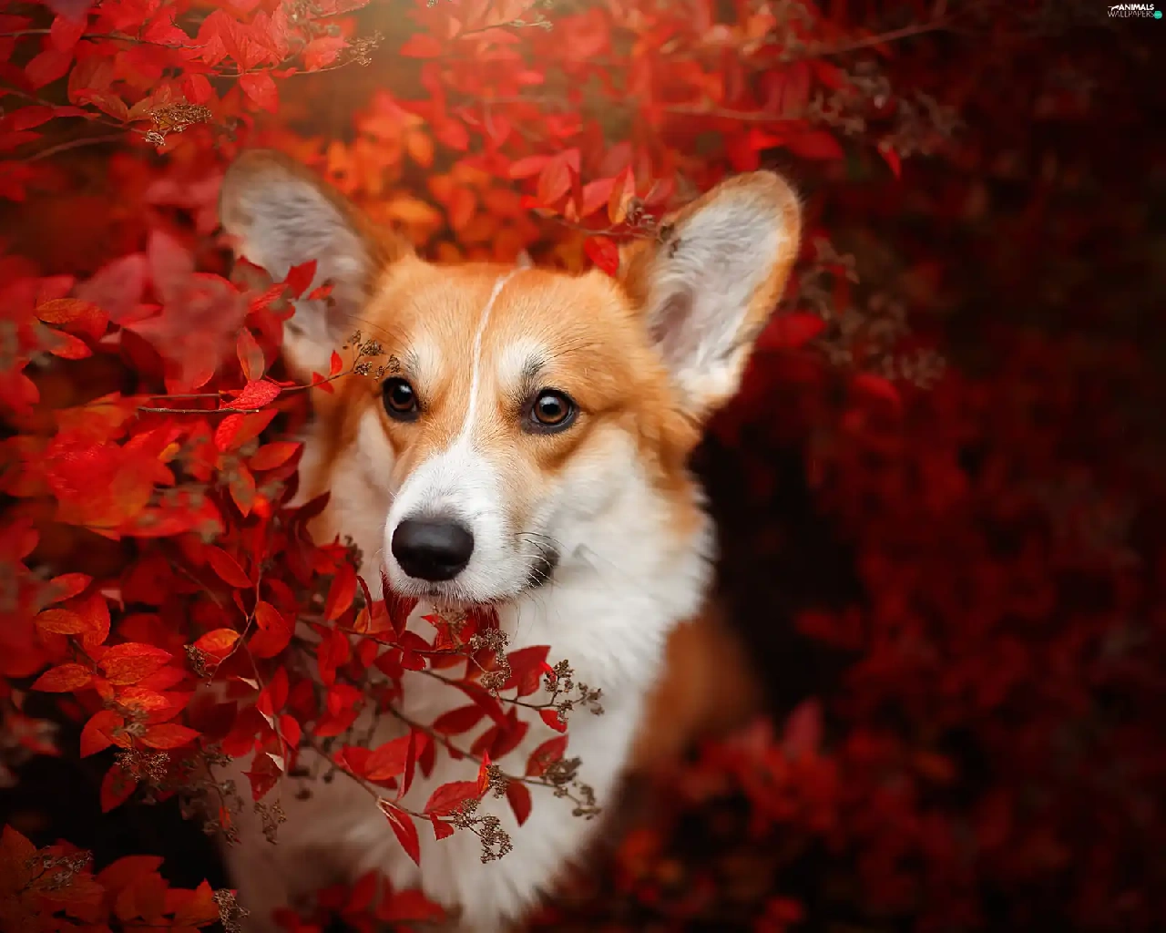 Red, Leaf, Welsh corgi pembroke, Bush, dog