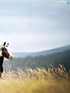 Field, Mountains, bloodstock, corn, Two cars