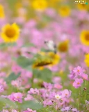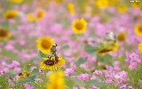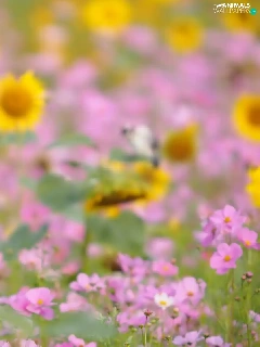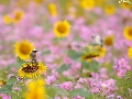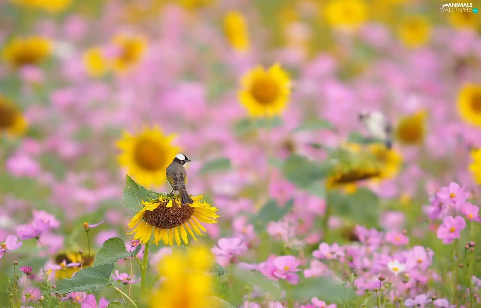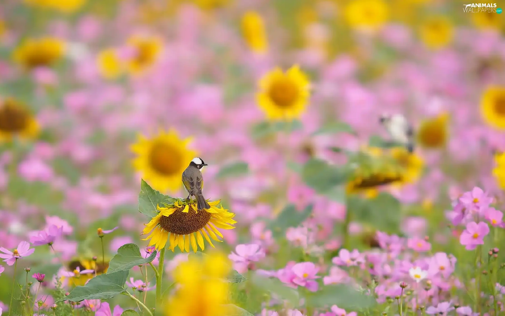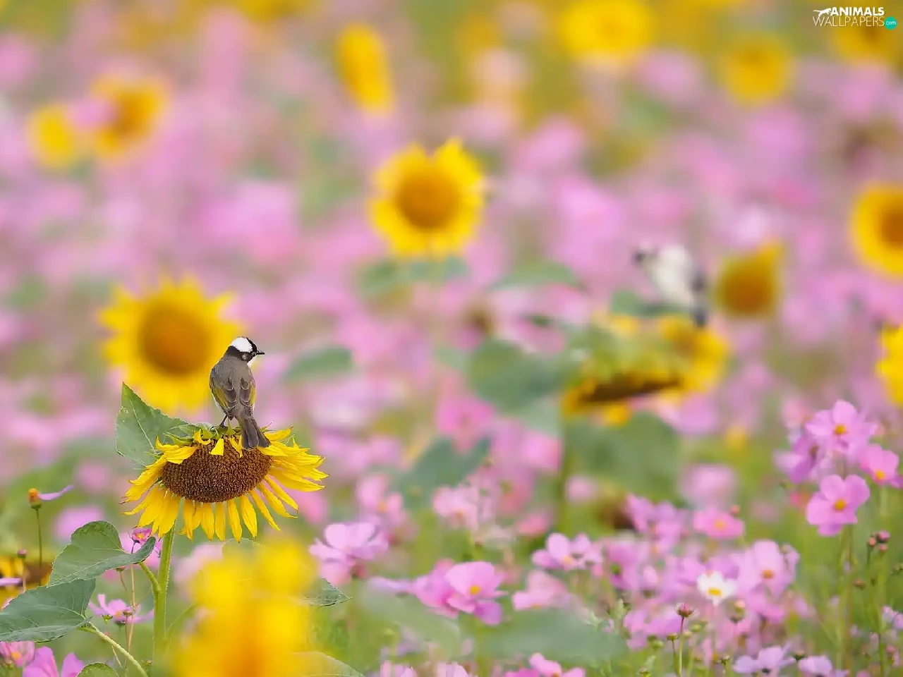 Flowers, Cosmos, Bird, Nice sunflowers