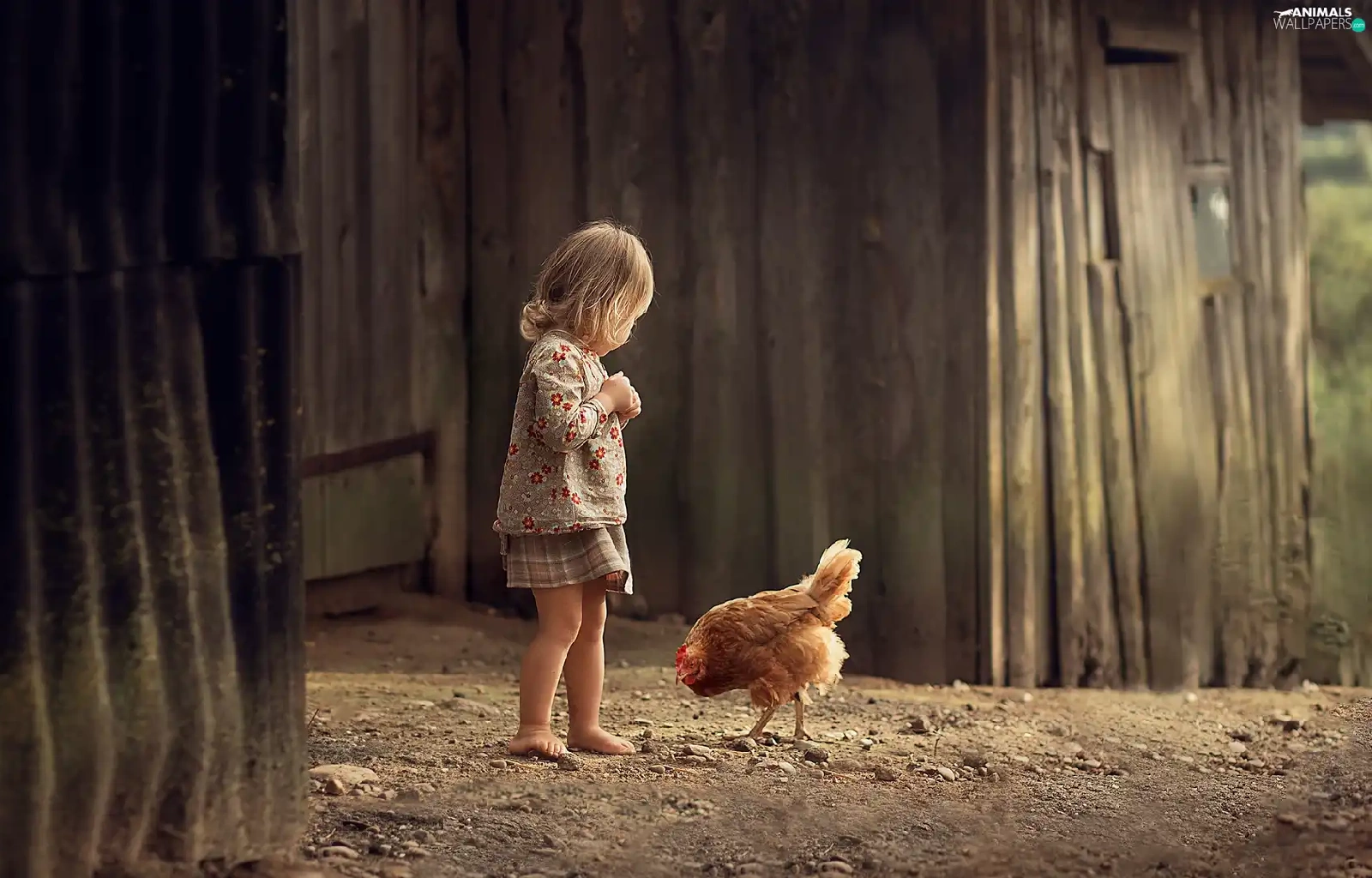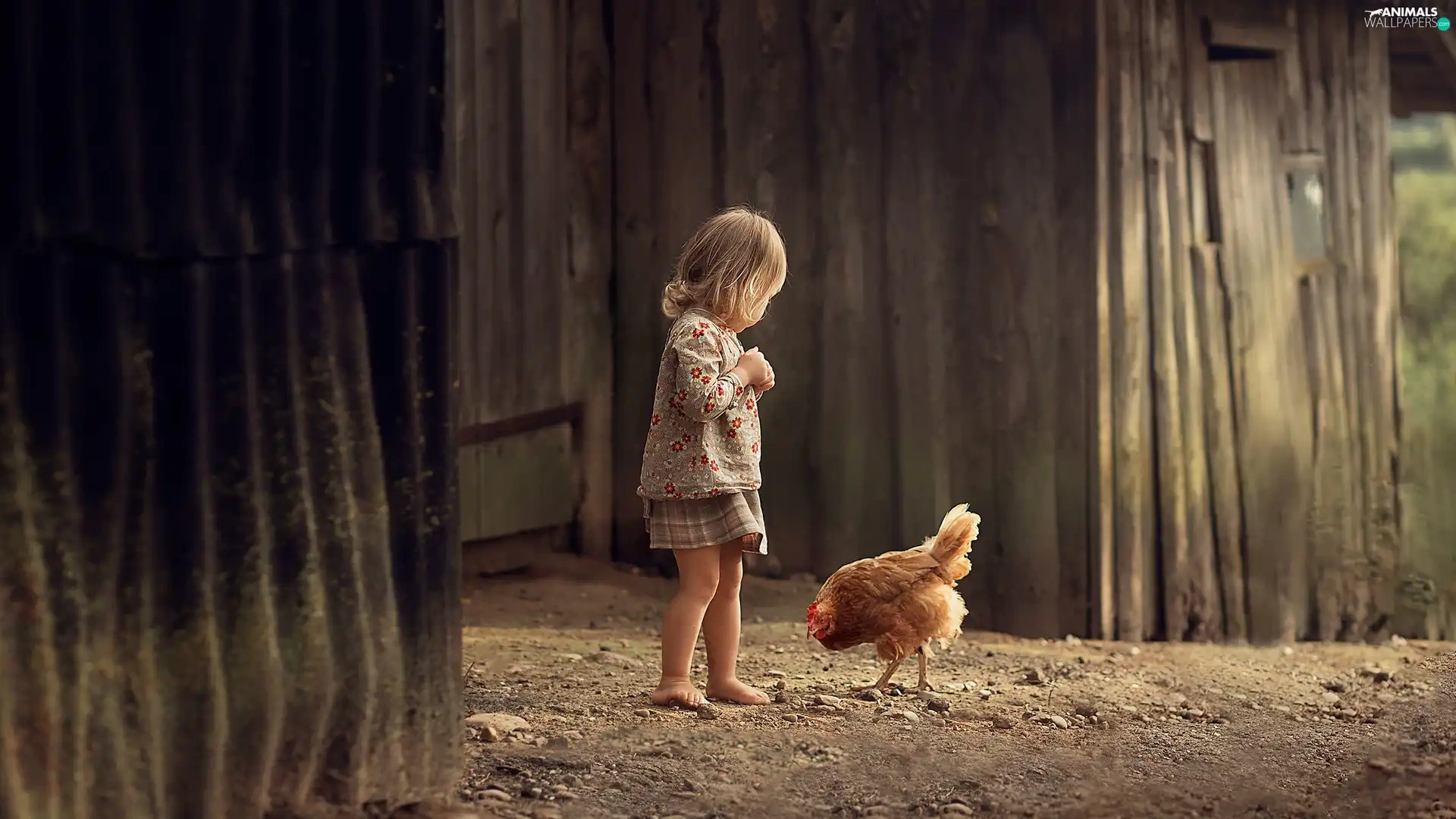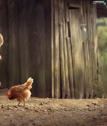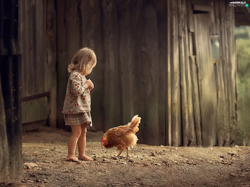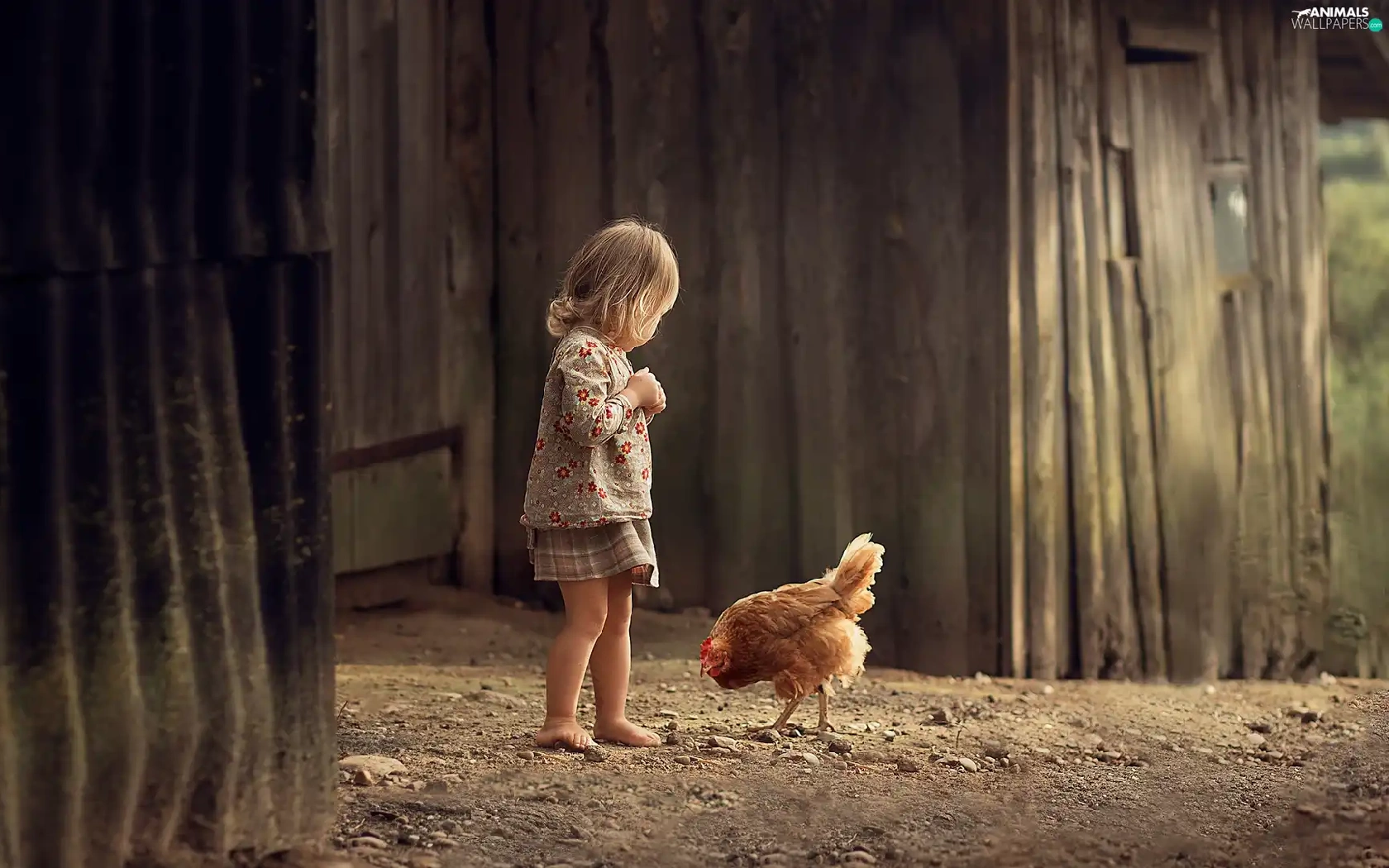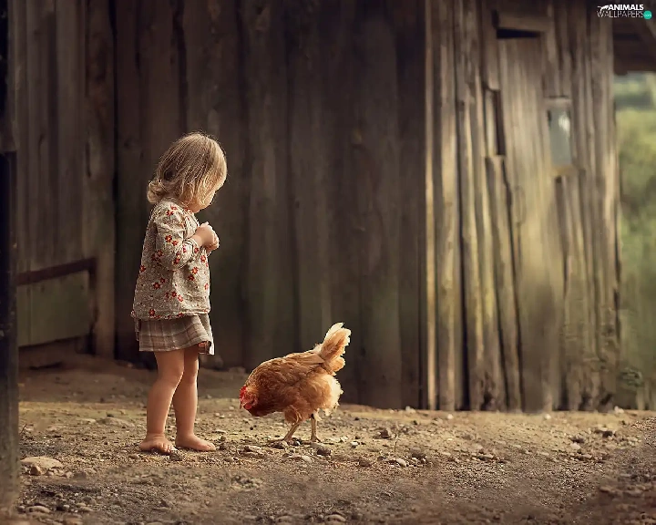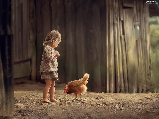 Kid, chicken, cote, girl