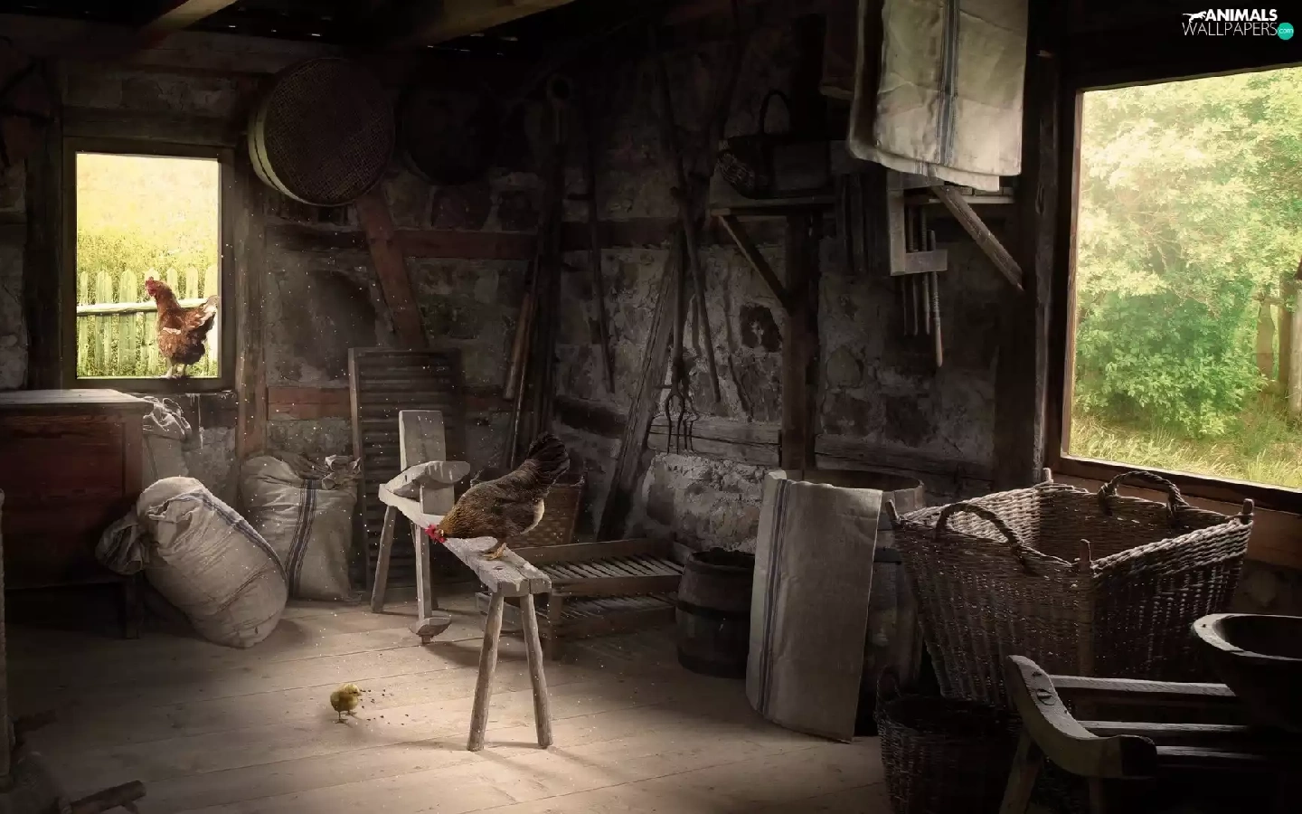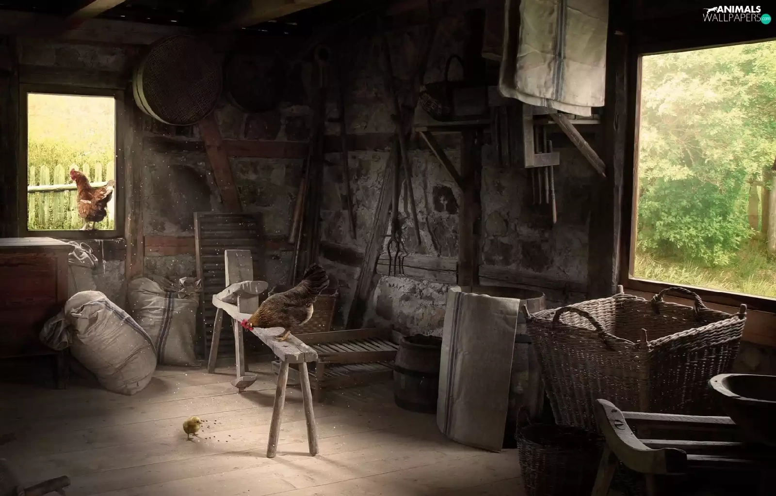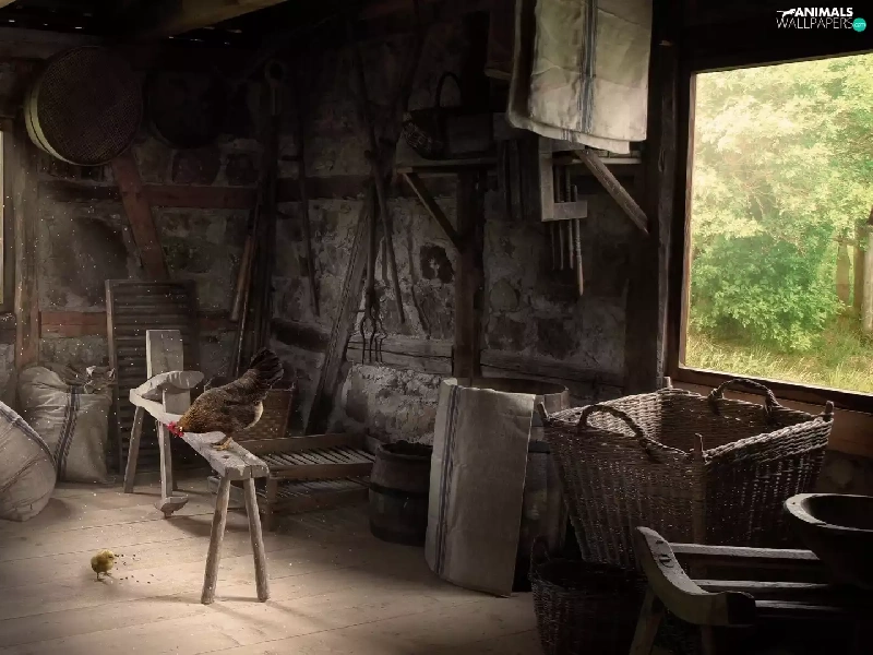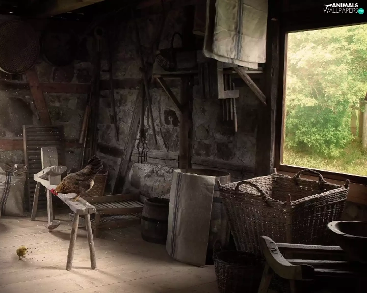 Old, hens, interior, cote
