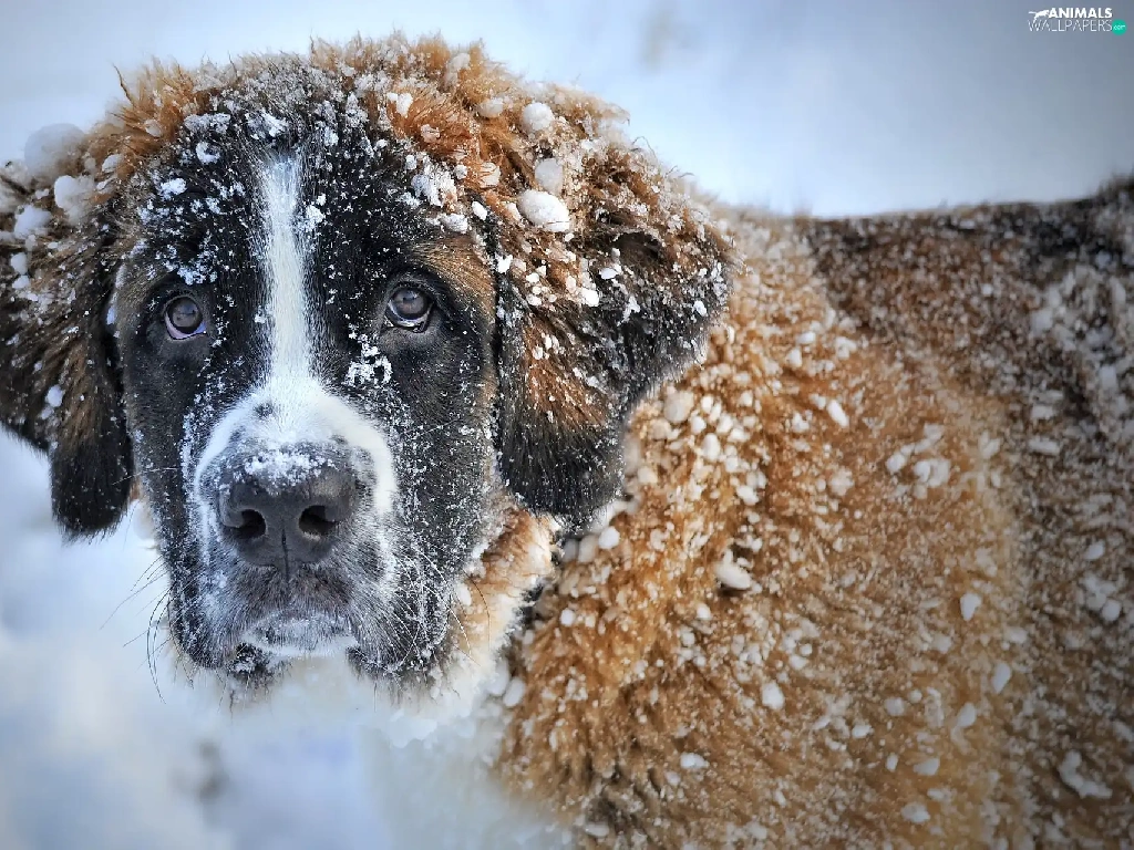 dog, A snow-covered, hair, Bernard