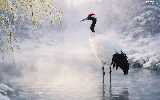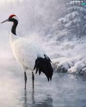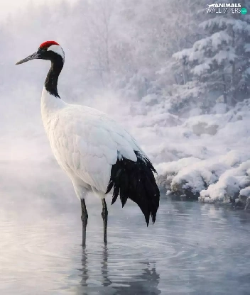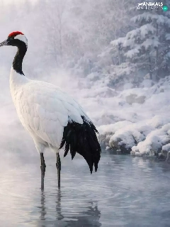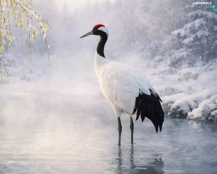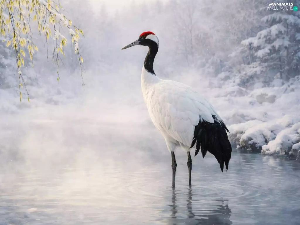 winter, VEGETATION, water, branch pics, Red-crowned Crane