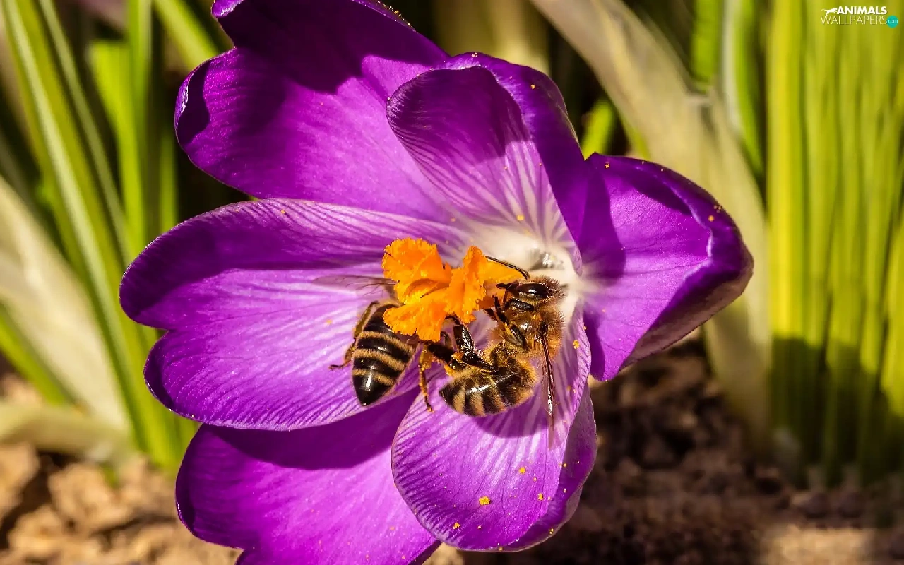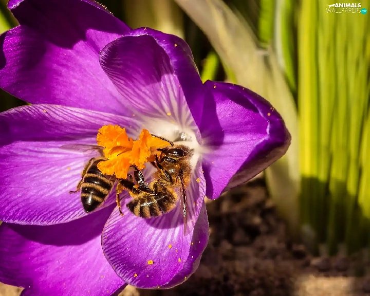 Bees, Colourfull Flowers, crocus