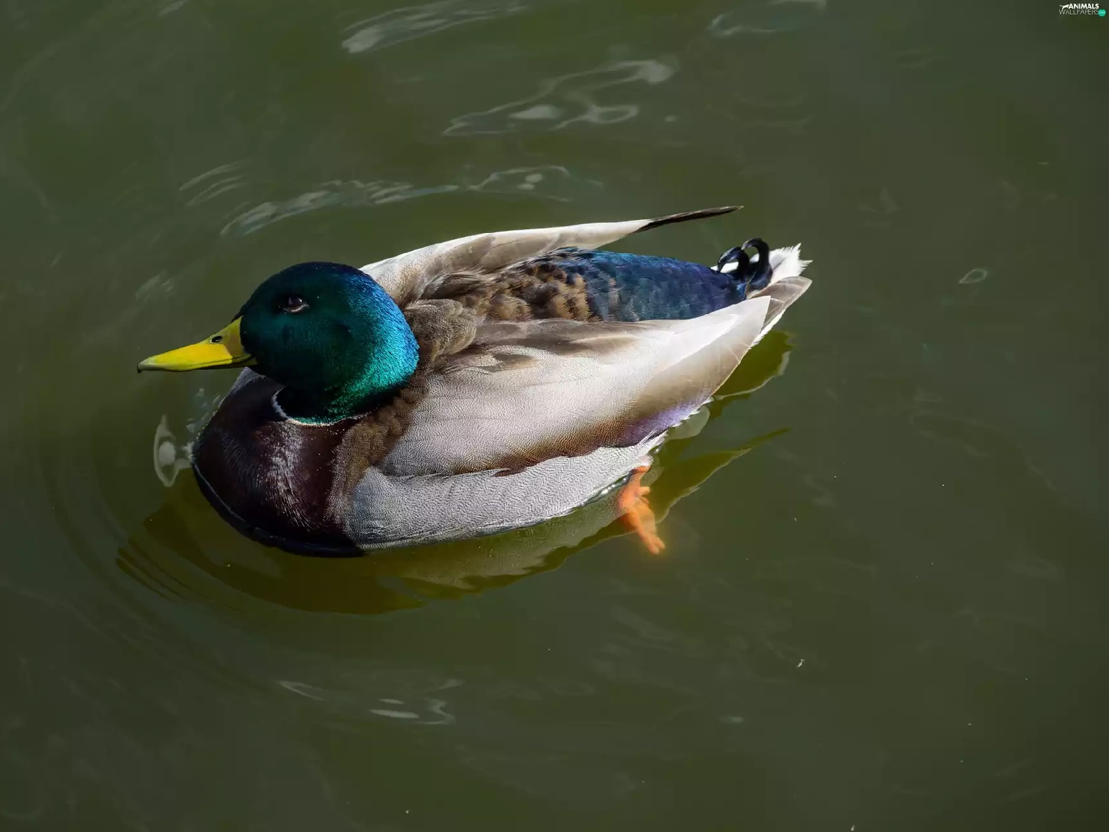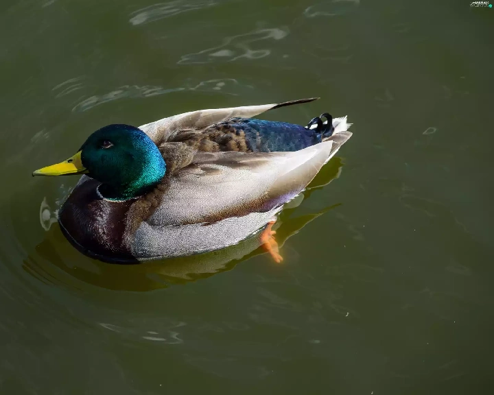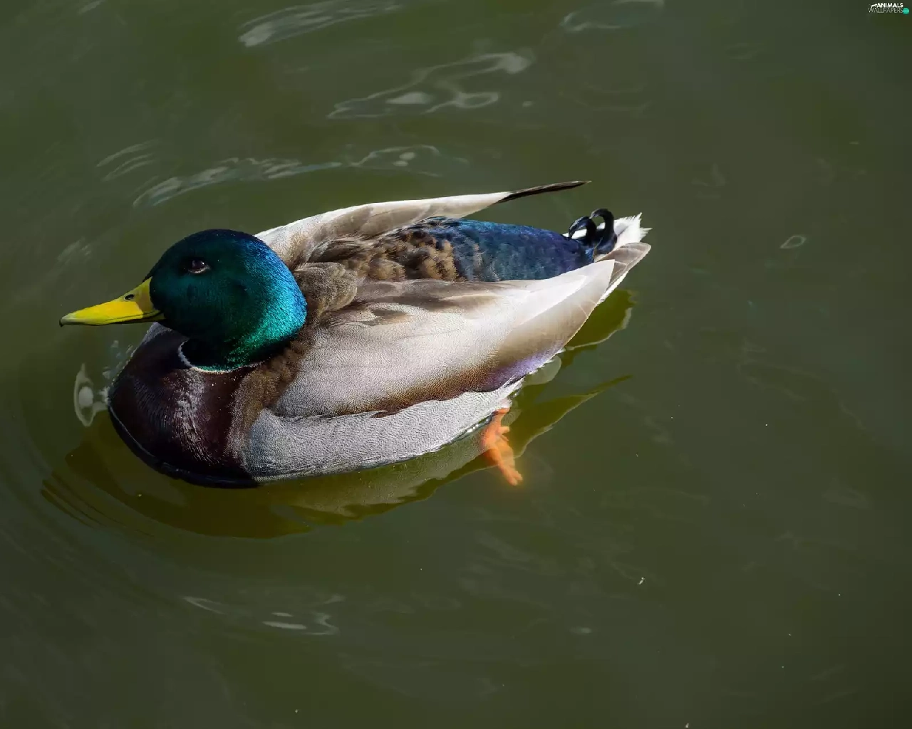 duck, drake, water, crossing